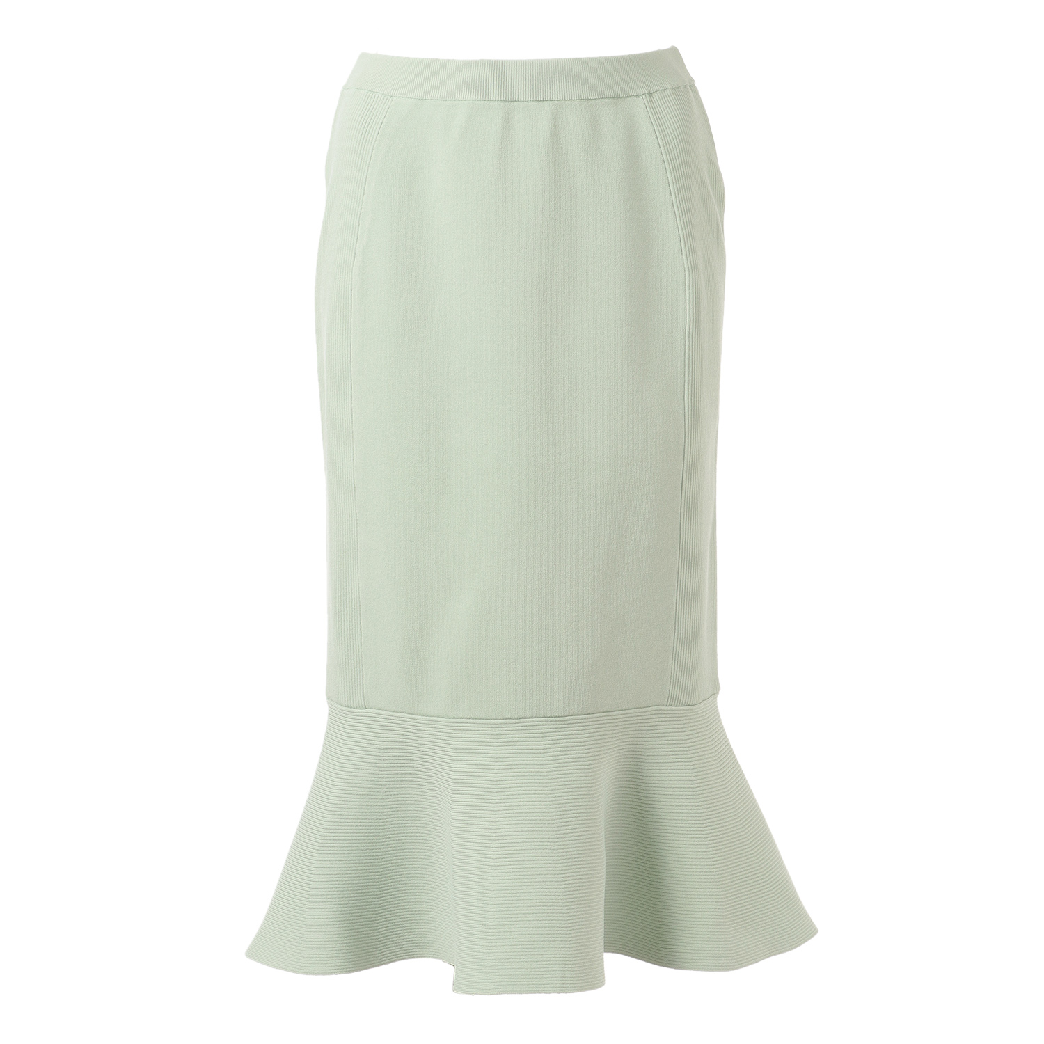 タイトシルエットのフェミニンなスカートです。 装いに華やぎをプラスする裾のフレアラインが存在感を引き立てています。 ウエストがゴム仕様になっているのではき心地も快適。 同素材のトップスやジャケットを合わせることで、セットアップのスタイリングも楽しめます。
