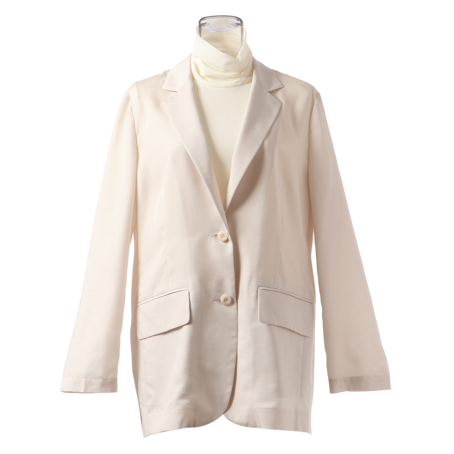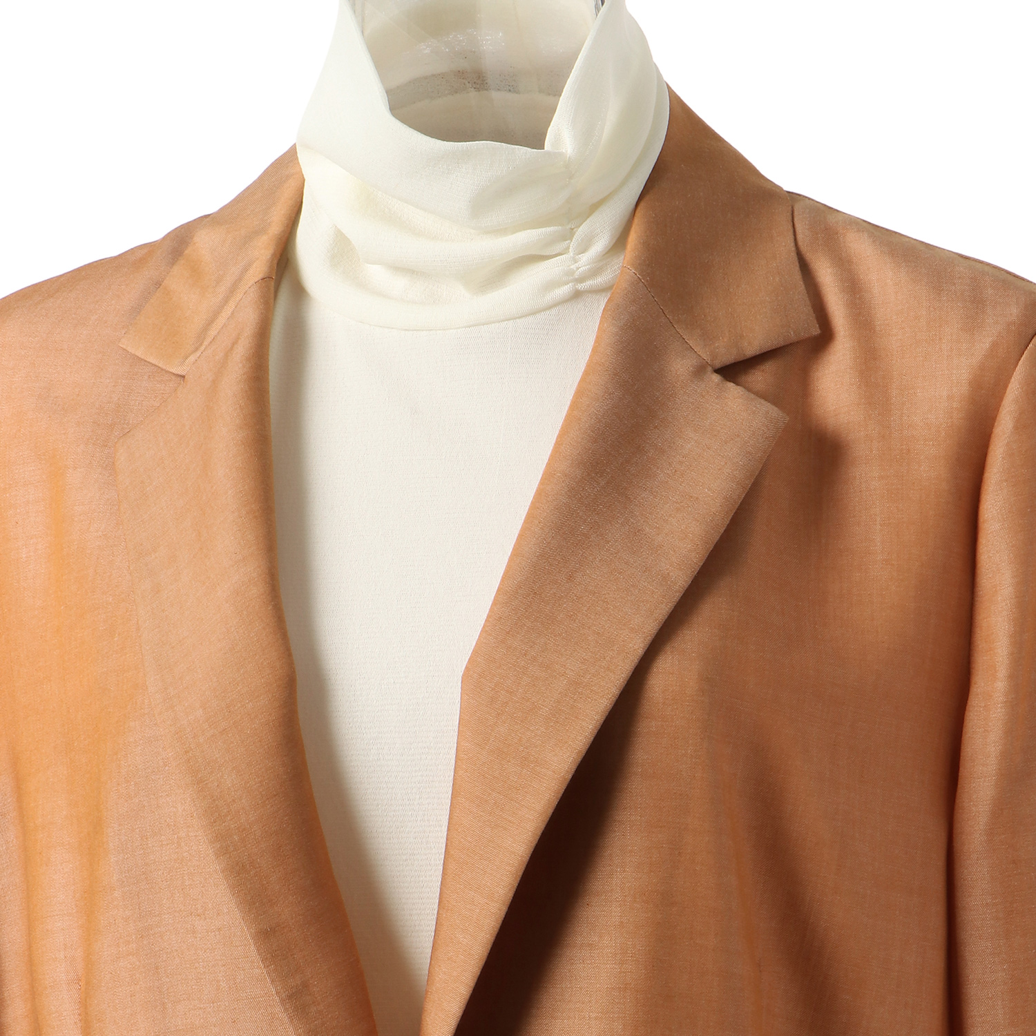 無駄を削ぎ落としたクリーンな佇まいが魅力のテーラードジャケット。 大人の気品を漂わせる穏やかな光沢を放つファブリックが特徴です。 ヒップを覆うほどのロングレングスでこなれたムードを演出。 花柄のスカートやワンピースにプラスして、甘さを程よくミックスさせたスタイルがおすすめです。
