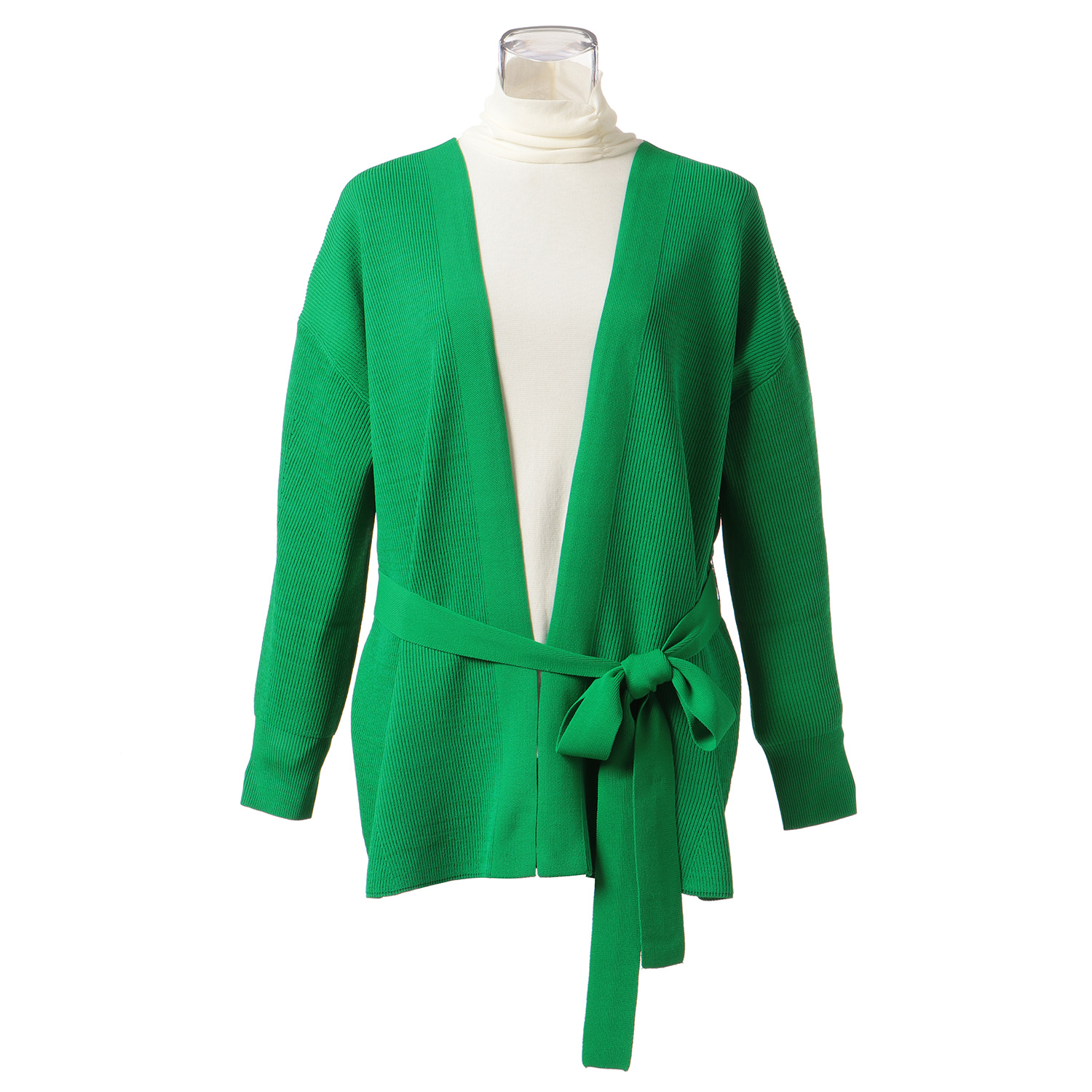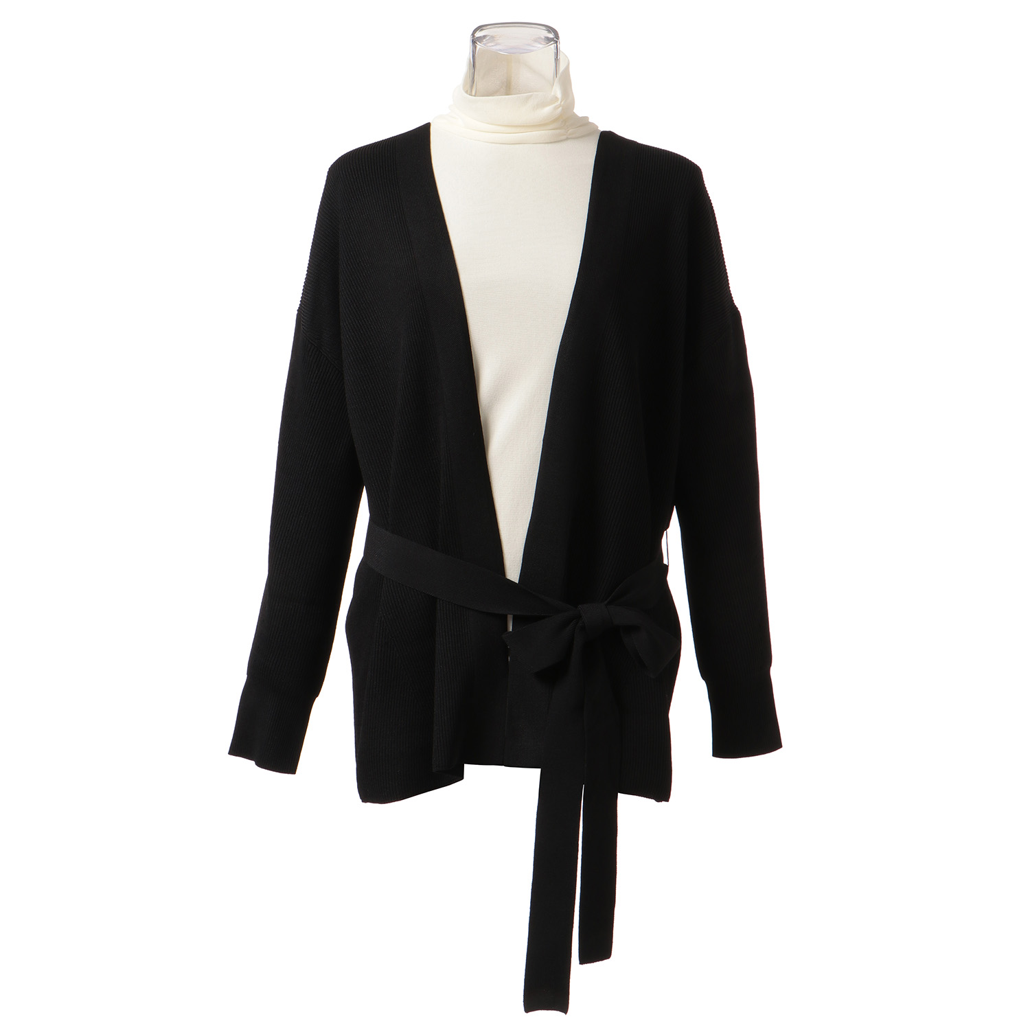 細幅のリブですっきりと仕上げた、ベルト付きのカーディガンです。シンプルながら光沢のある糸を使用することで、カジュアルにも上品な装いにもマッチする一枚に。お手持ちの洋服に合わせられるカラーバリエーションも魅力のひとつです。柄物のアイテムとも相性がよく、鮮度のあるコーディネートが楽しめます。