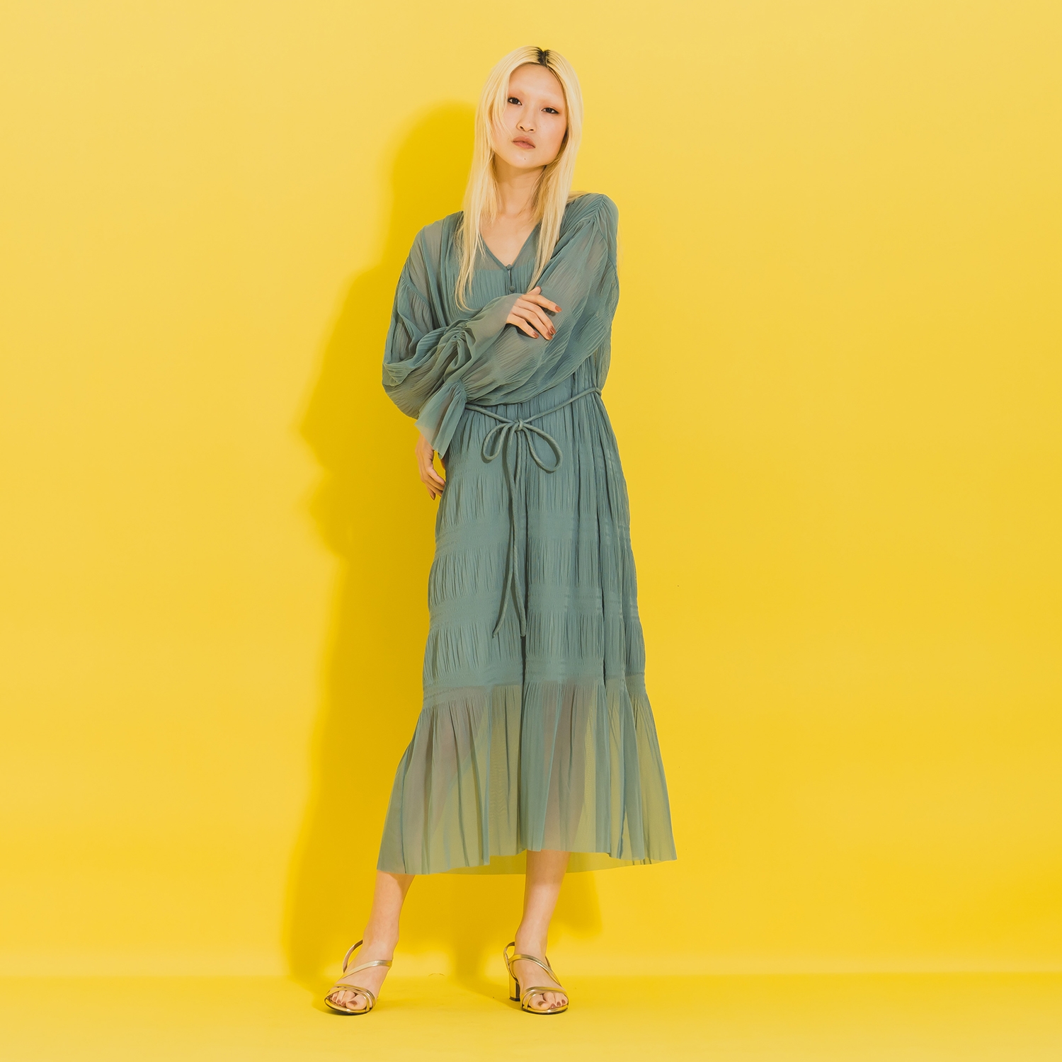 SOLID NETTING MAJOLICA PLEATS ドレス