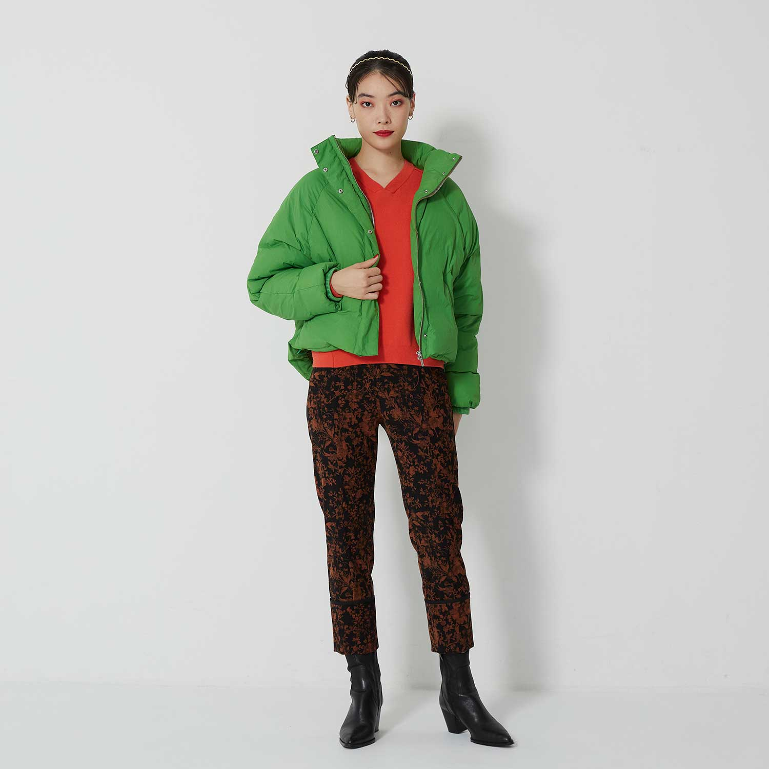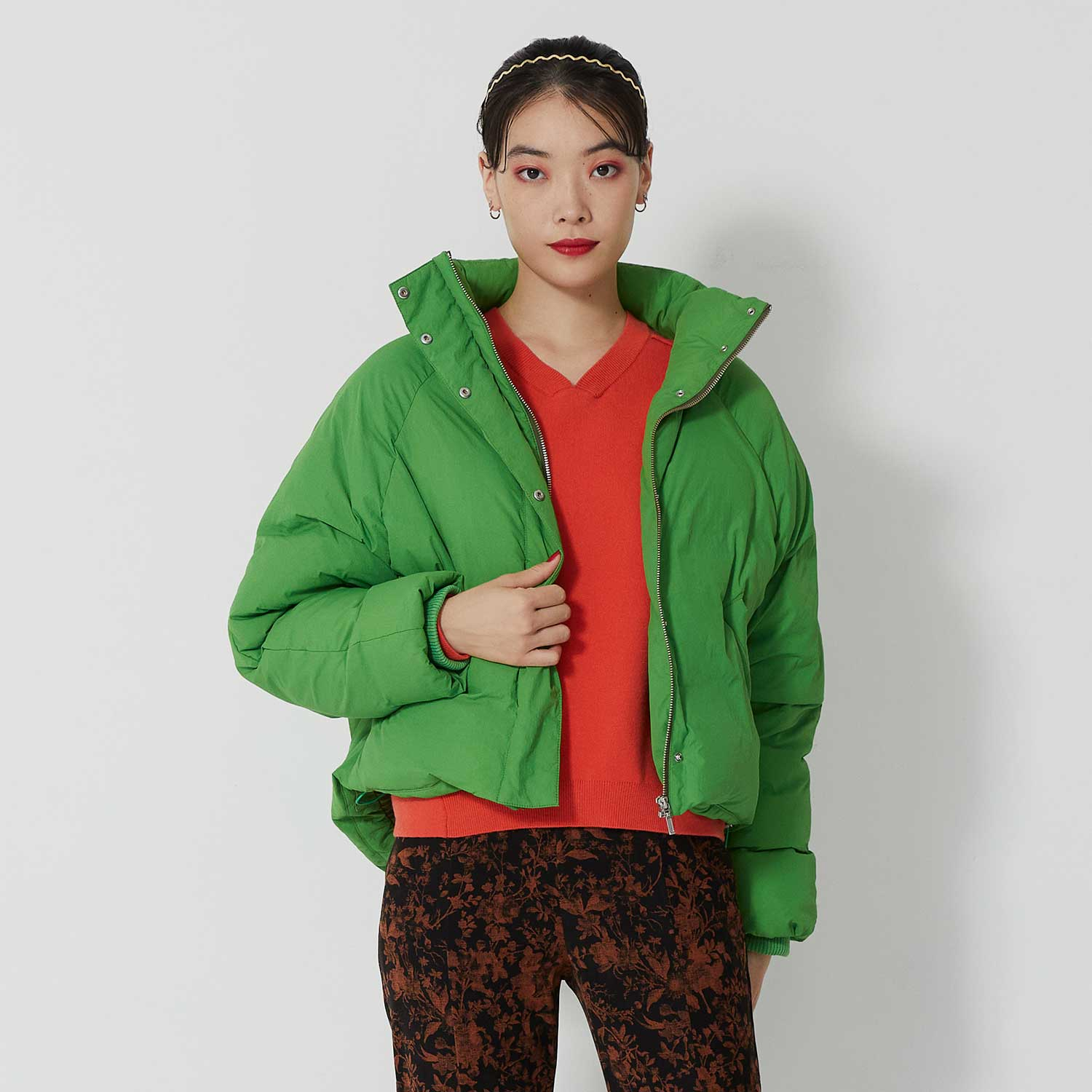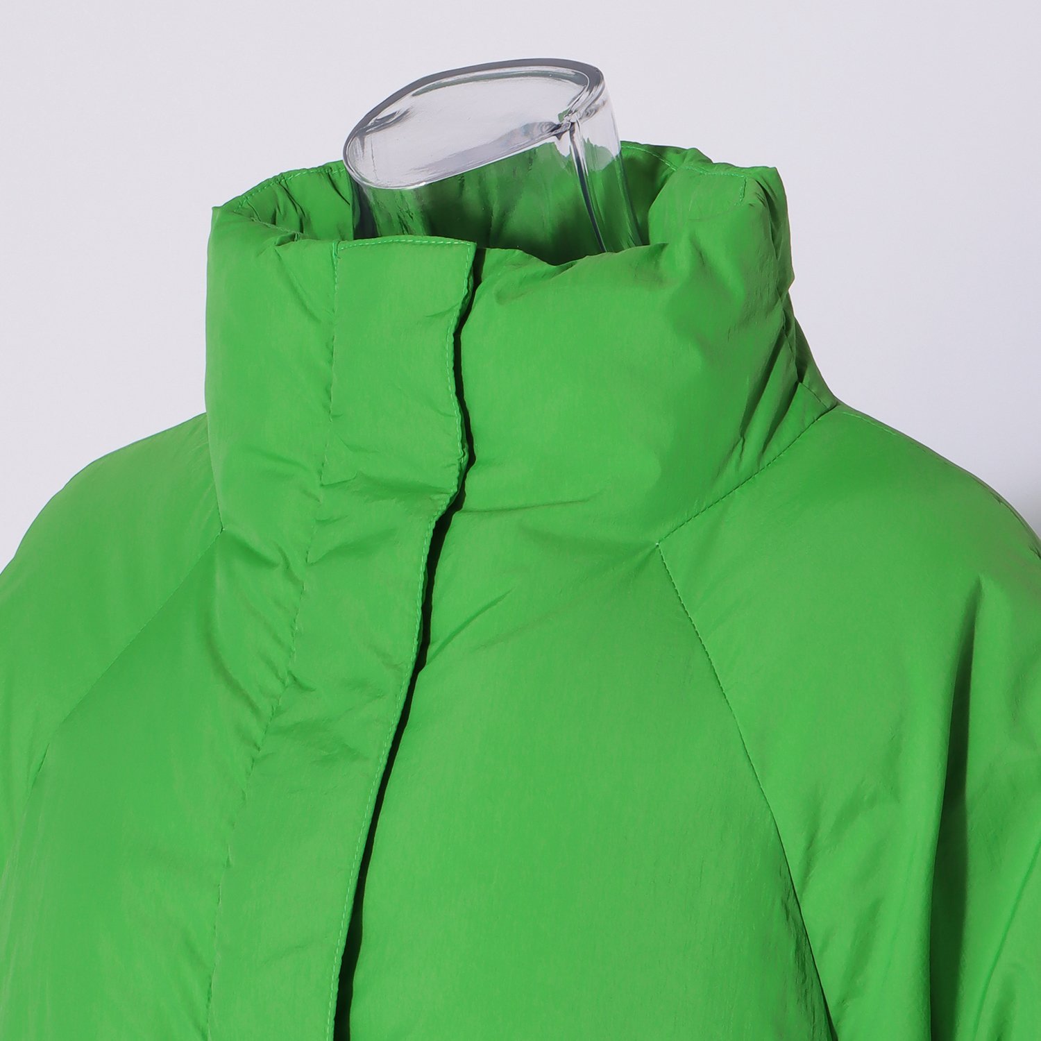 たっぷりと空気を含んだ生地で、保温性抜群のダウンコート。それぞれ雰囲気の異なる豊富なカラー展開が魅力です。ラグランスリーブ風の切り替えにより、肩周りをすっきりと仕上げたデザイン。フロントにはスナップボタンとファスナーを採用し、冷気を通しにくい仕様となっております。裾に通したドローコードを絞り好みのフィットに調節可能です。