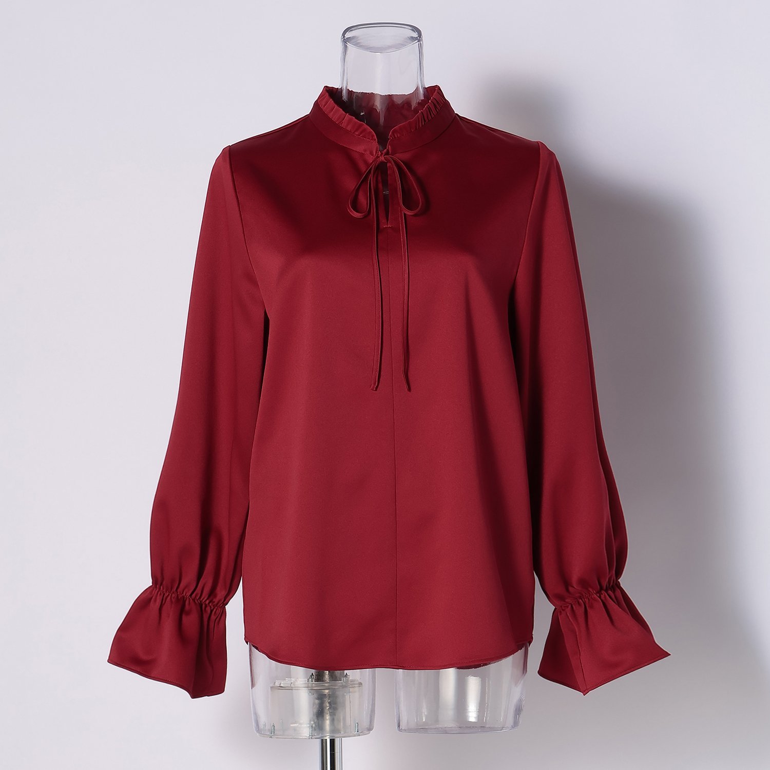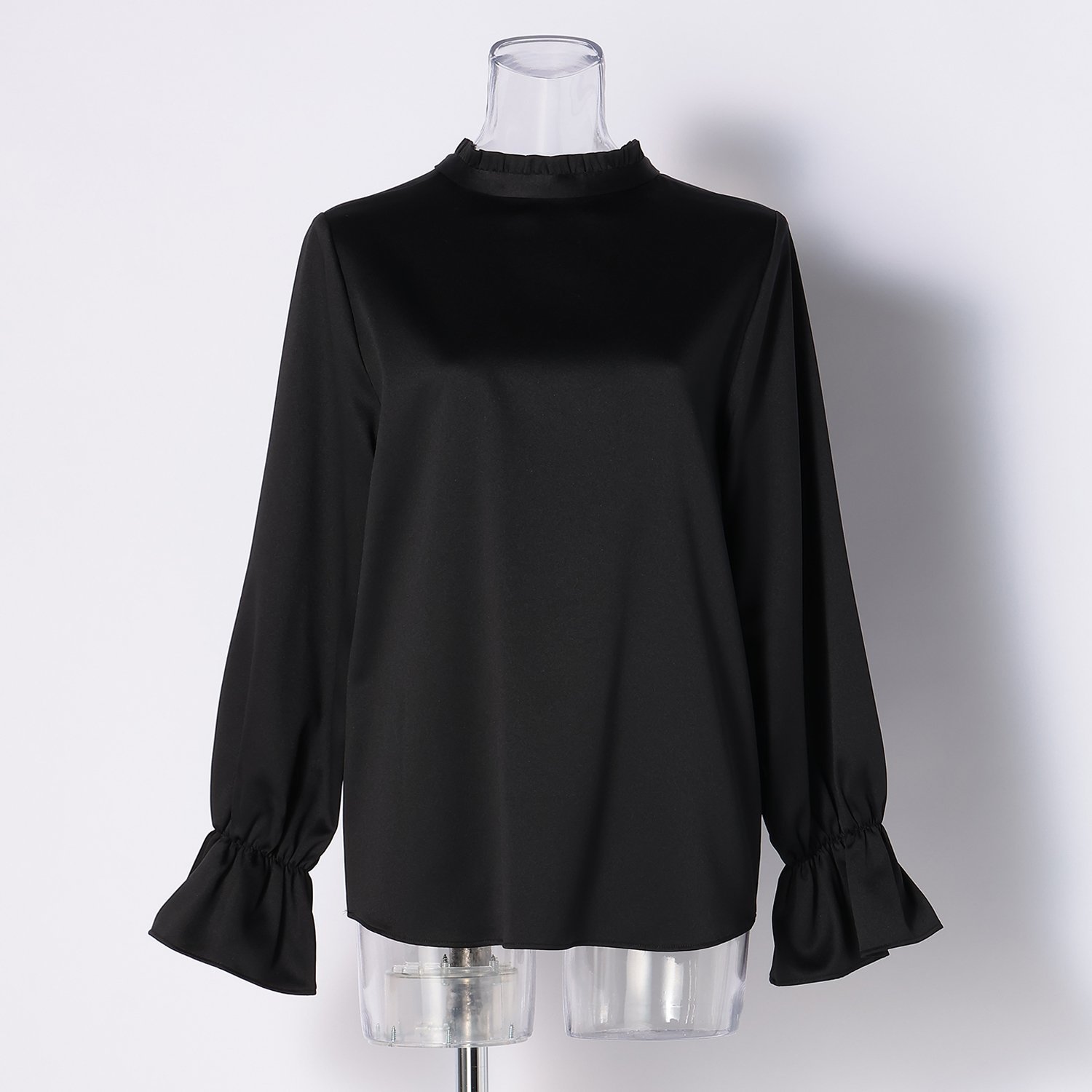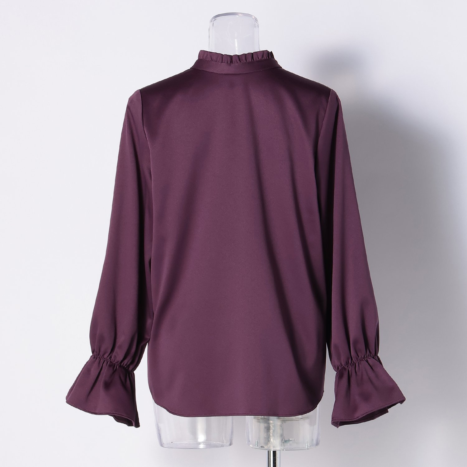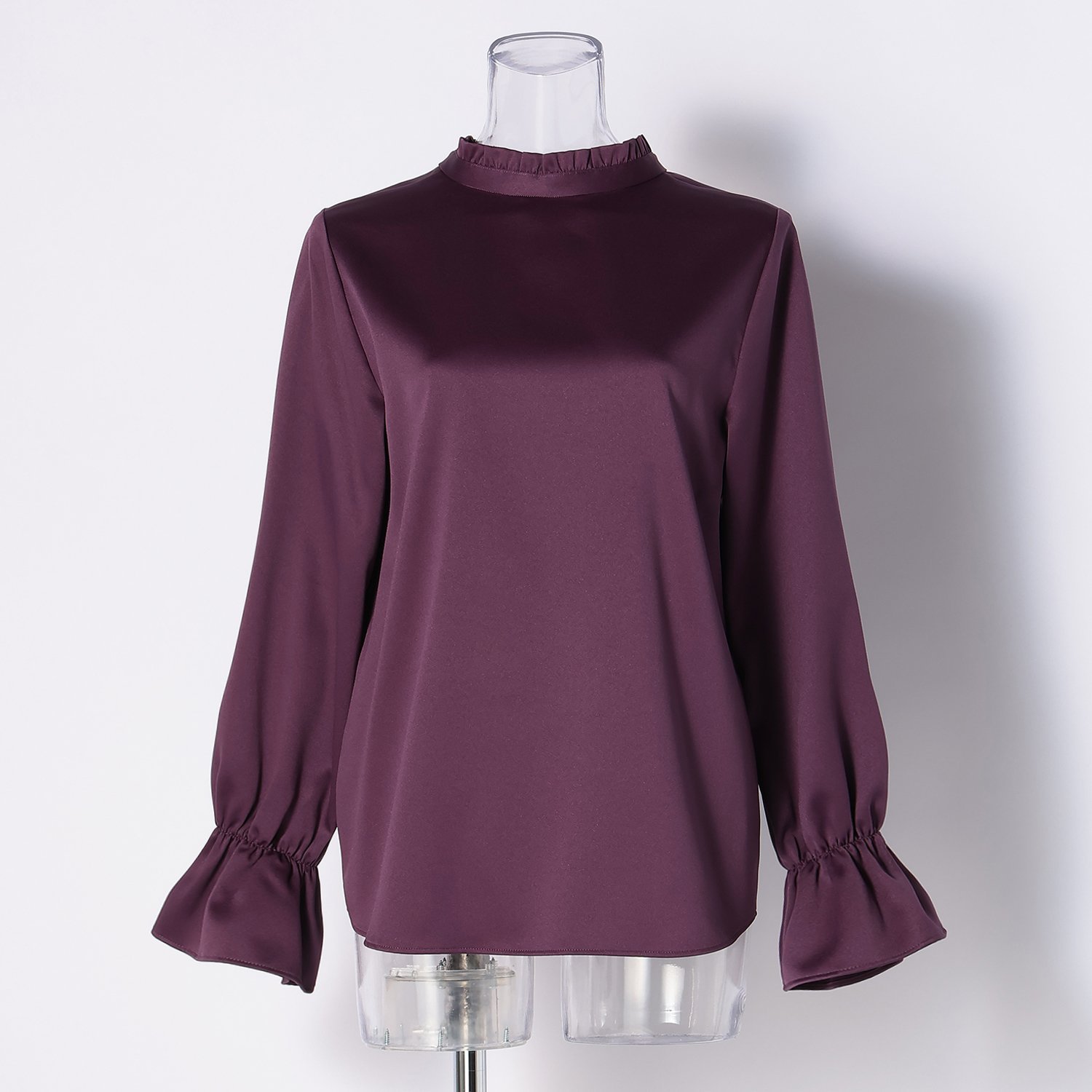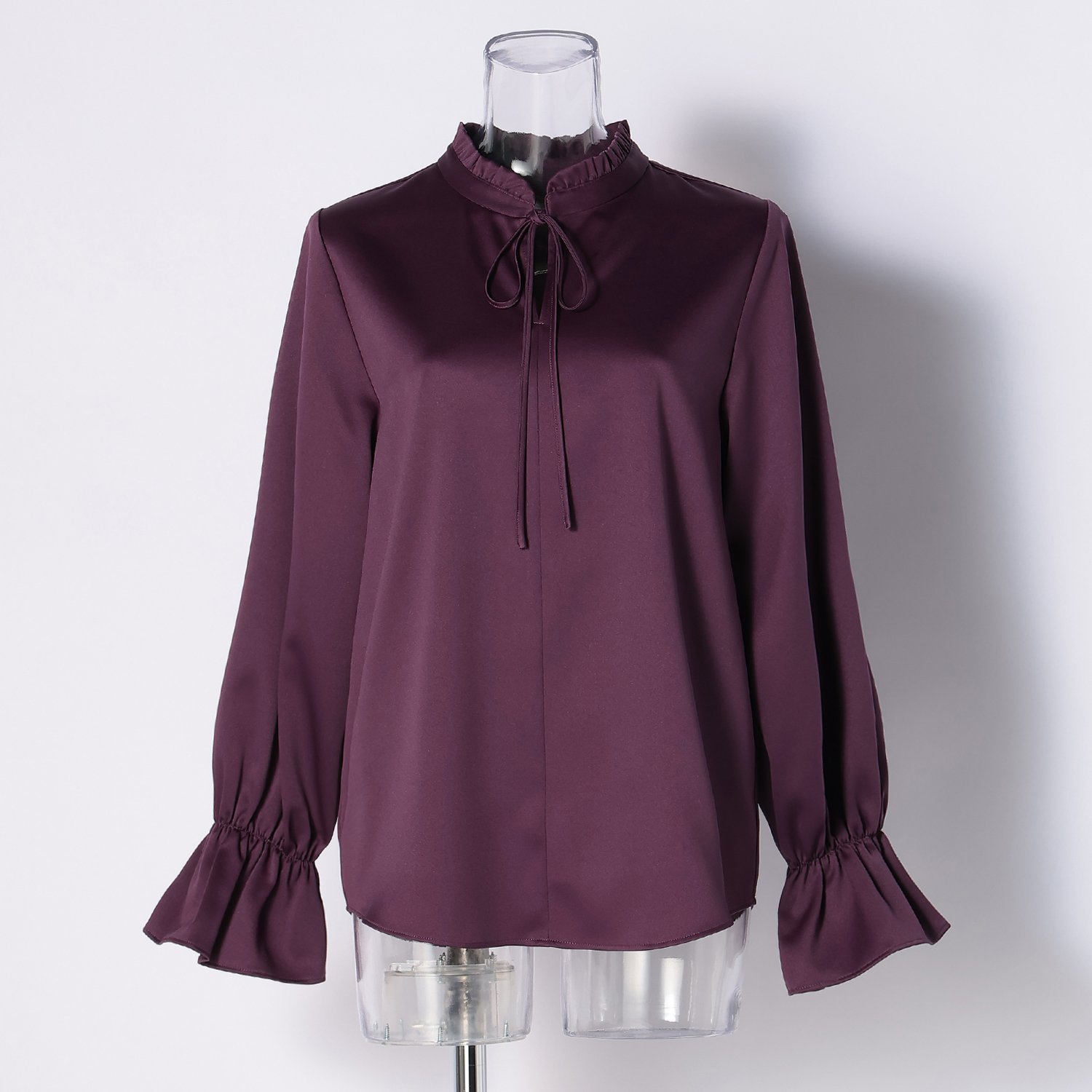 前後でスタイリングをお楽しみいただける、2WAY仕様のブラウス。さりげない襟のフリルや細めのリボン、ひらりとしたスリーブデザインなど、ディテールにもこだわりが詰まった1着です。華やかな光沢感と、ストレッチ性の快適な着心地を両立したストレッチサテン生地を使用しました。しわになりにくい特徴を持つので、お出かけからオフィスシーンまで、デイリーな活躍が期待できます。