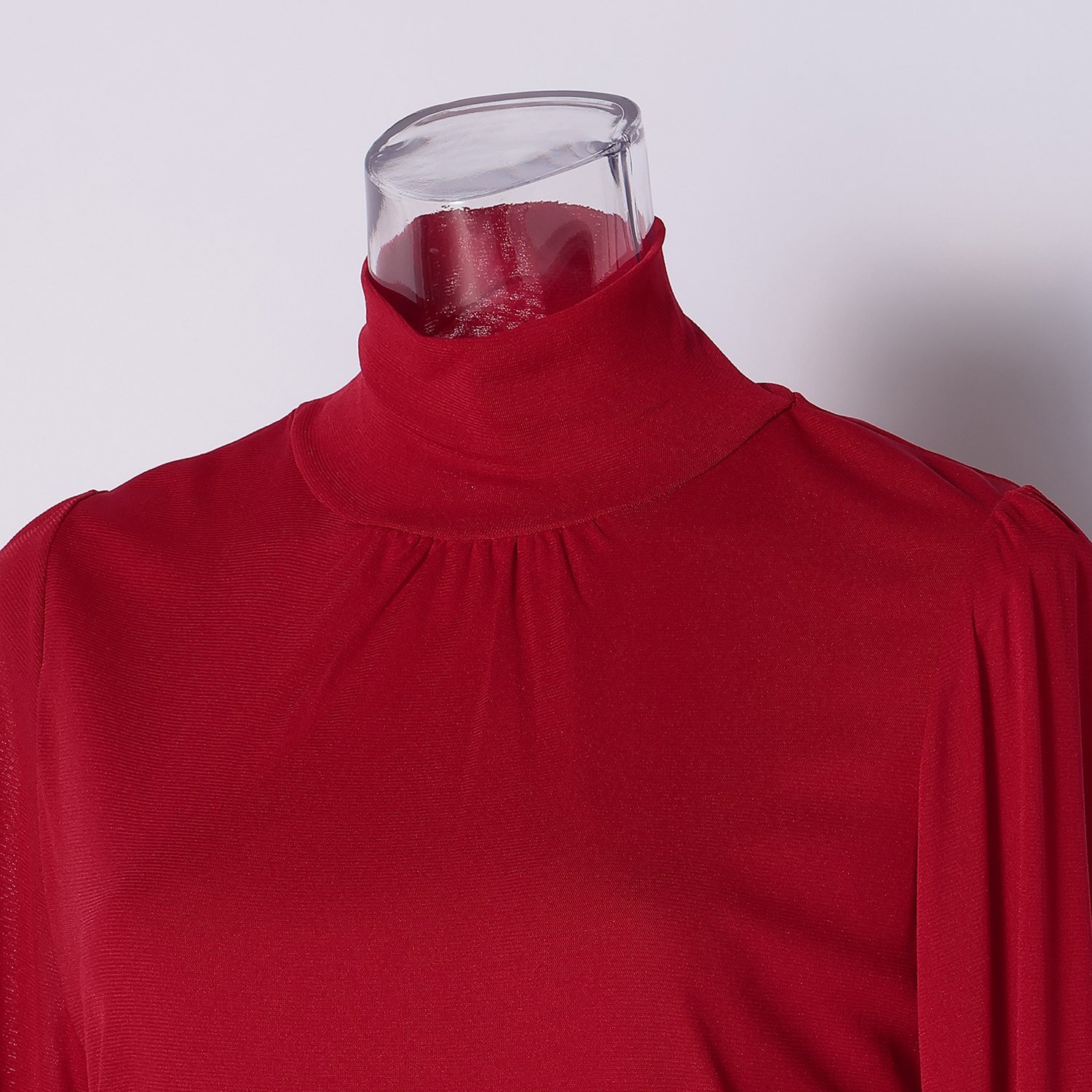 ふんわりとしたパフスリーブとモックネックがアクセントになったブラウス。シンプルな無地デザインで着回しやすく、単品でもレイヤードスタイルでも様になるアイテムです。フロントに配したギャザーが上品な印象をプラス。身頃の生地は2枚重ねることにより、すっきりとした見た目をキープしつつ肌透けを抑えました。優れた伸縮性で動きやすく、快適にご着用いただけます。