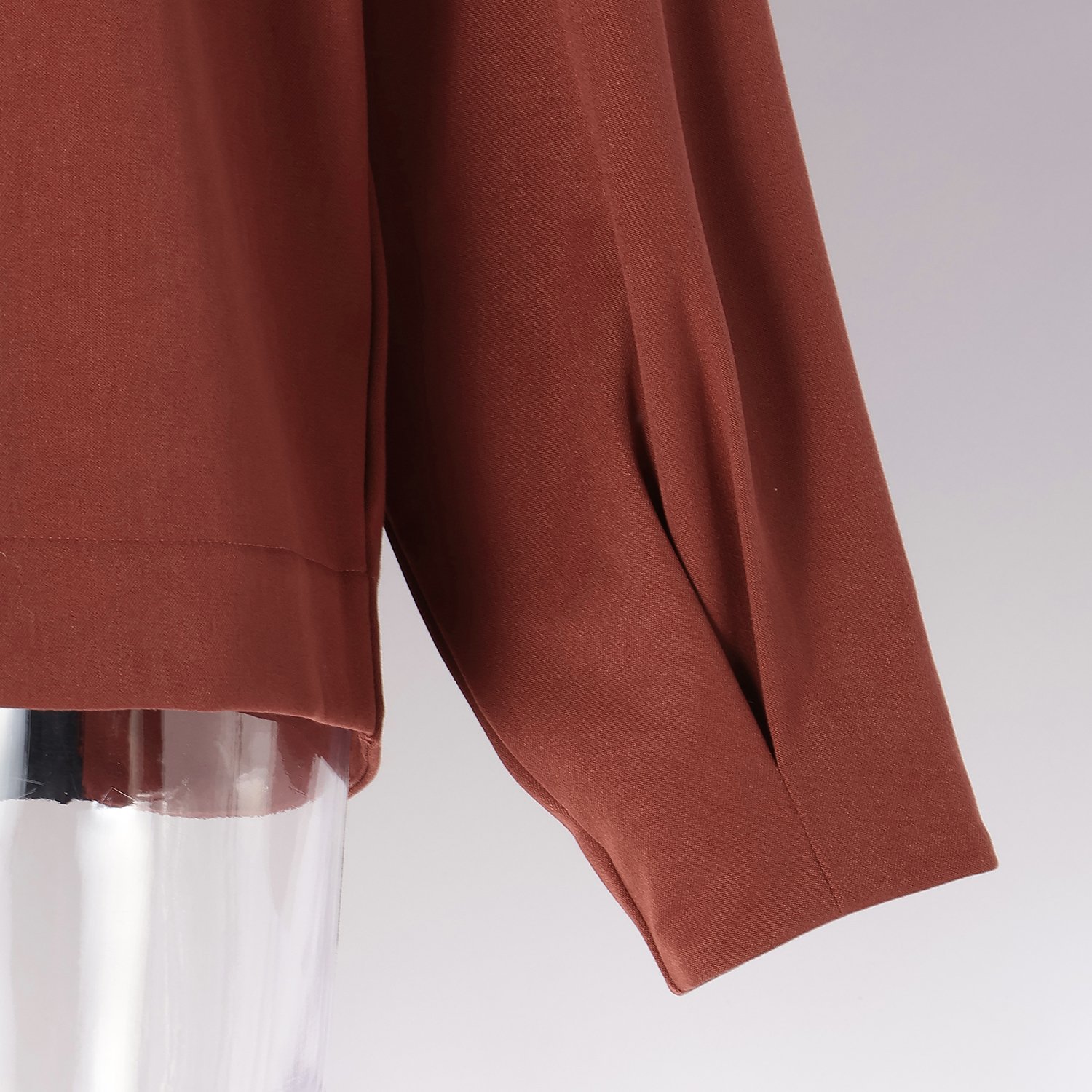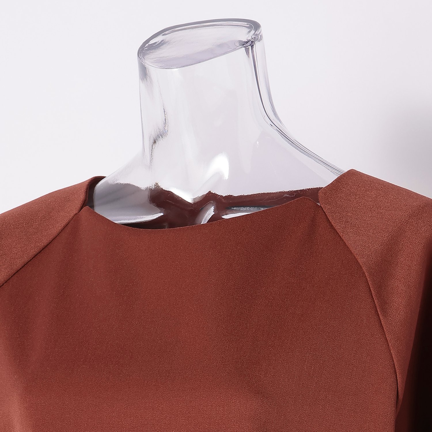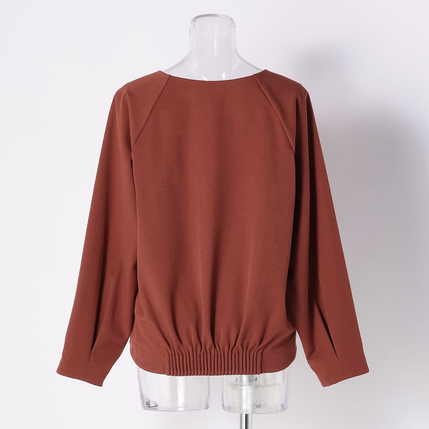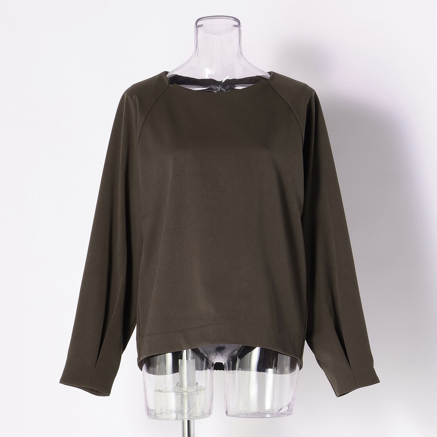 上質な表情のストレッチ素材を使用したプルオーバーブラウス。袖口のタックや、後ろ裾付近のギャザーにより立体的なシルエットに仕上げました。きれいな落ち感がありながら、生地には伸縮性もあるため快適にご着用いただけます。単品ではもちろん、同素材のスカートと合わせたセットアップスタイルもおすすめです。
