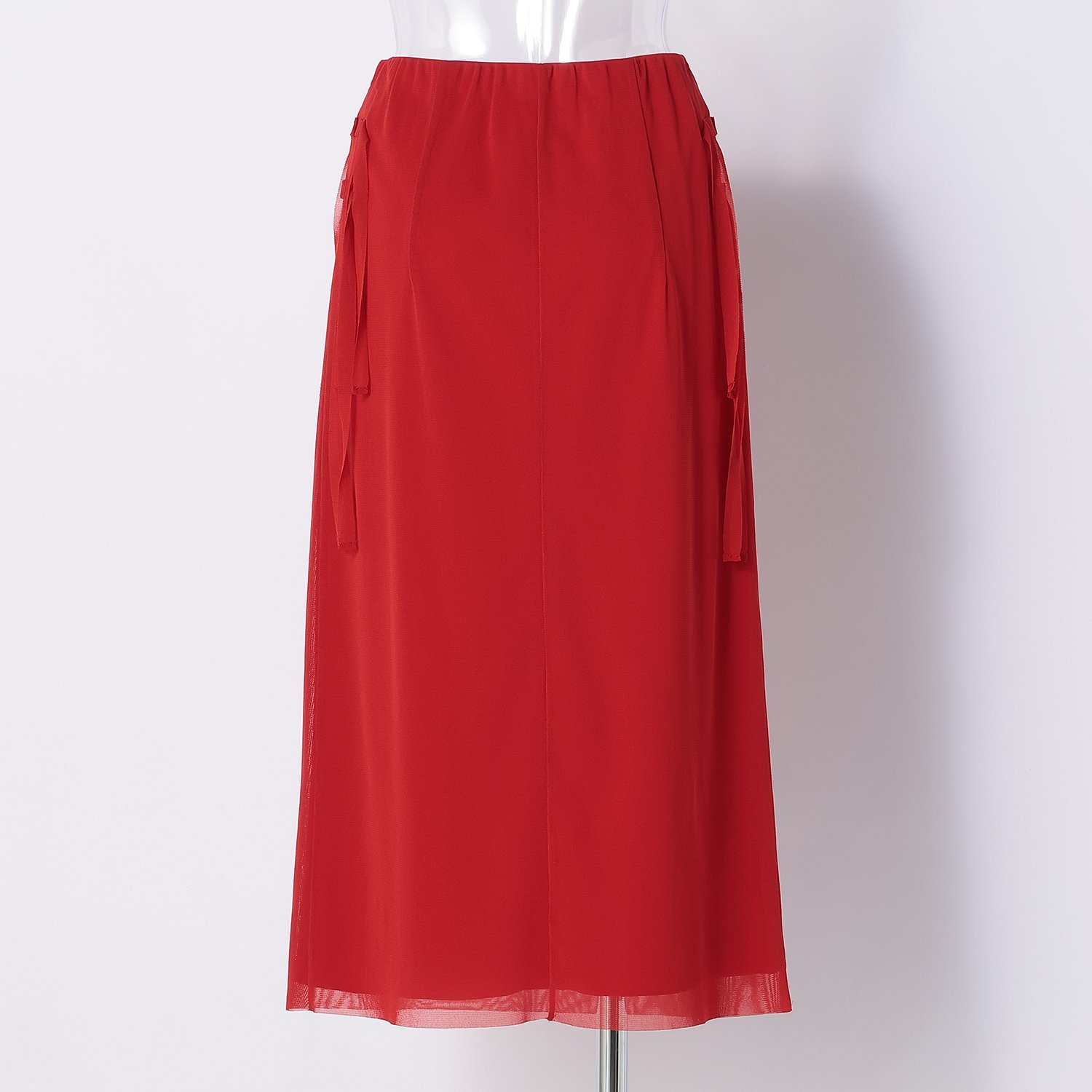 裾のサイドにVIVIENNE TAMらしいオリエンタルモチーフをあしらったスカート。流れるような美しいシルエットで、スタイルアップ効果も期待できる1枚です。裏地は表地よりも短く設定しているので、足元の程よい透け感もお楽しみいただけます。