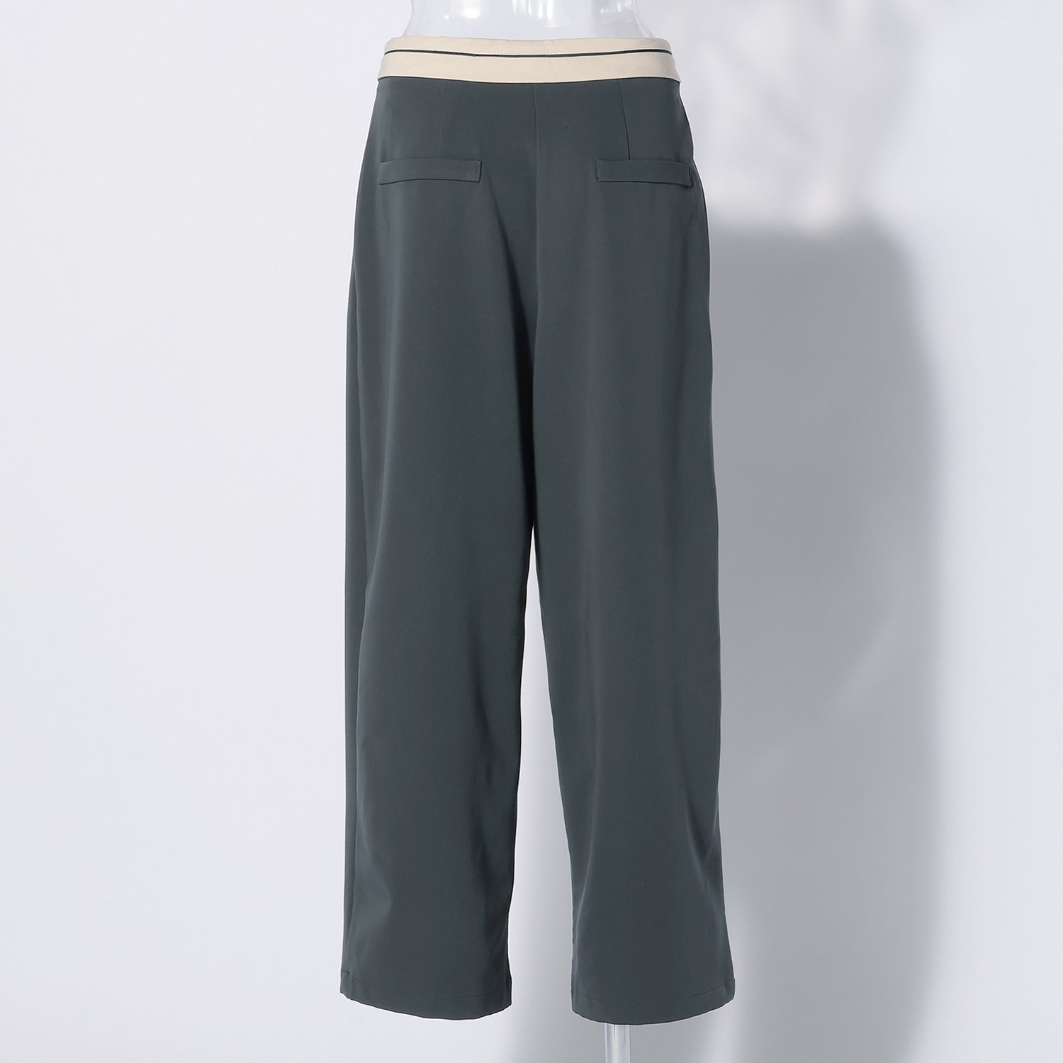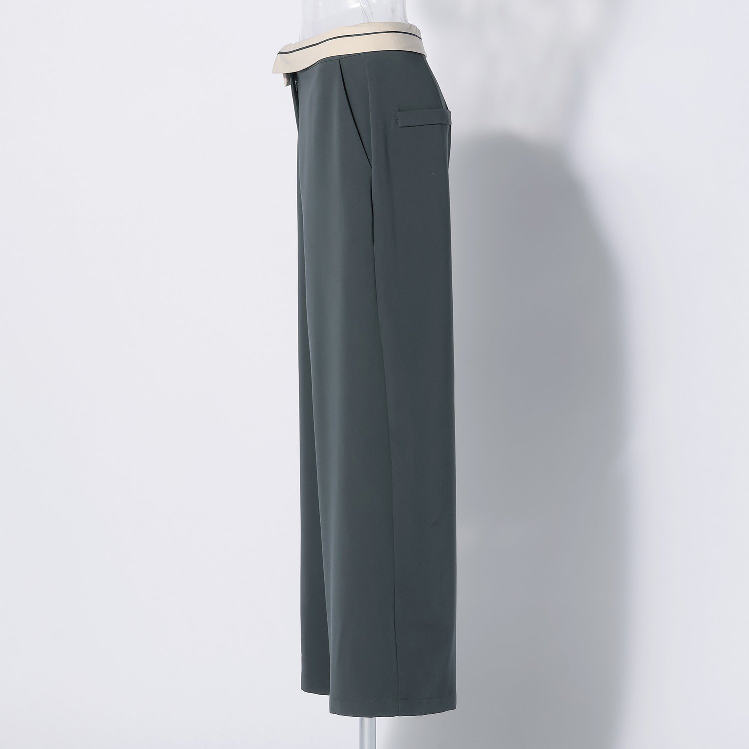 トレンドとクラシック感を調和させた、フルレングスのワイドパンツ。ウエストの折り返しデザインが新鮮ながら、バイカラーの配色やほのかに温かみのあるストレッチツイルの表情がレトロな印象を与えます。ウエストはファスナーフライで、着脱も簡単に行いやすい仕様。フロントの両サイドにはポケットも備えており、見た目だけでなく利便性にもこだわったアイテムです。