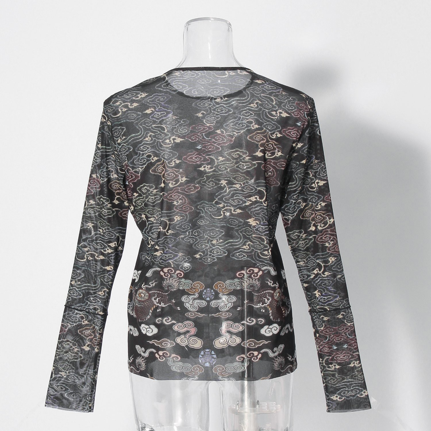 Dragon cloud print net ブラウス