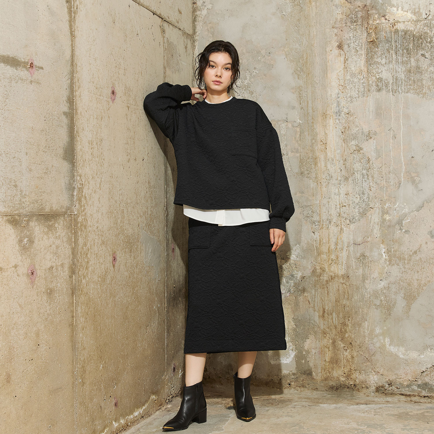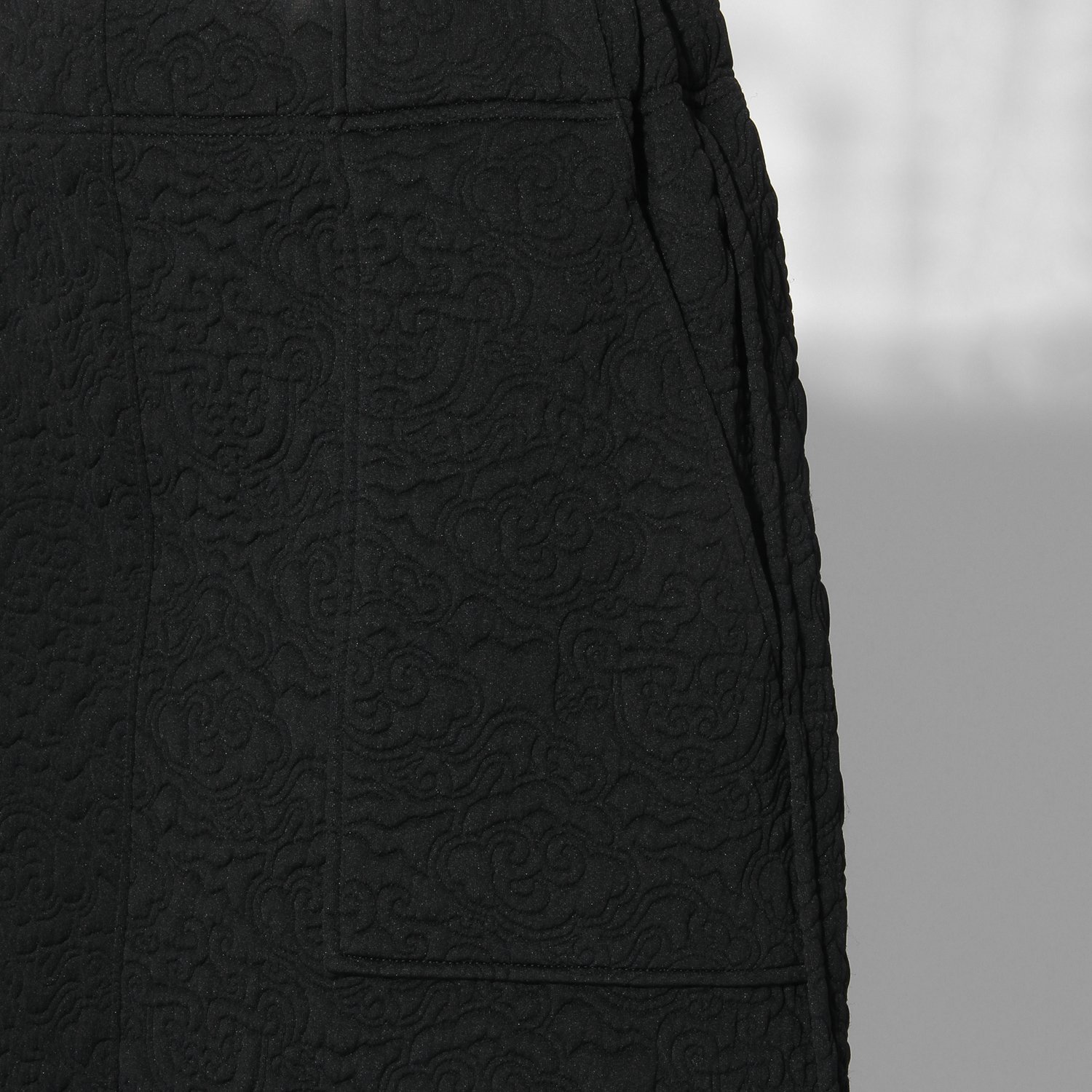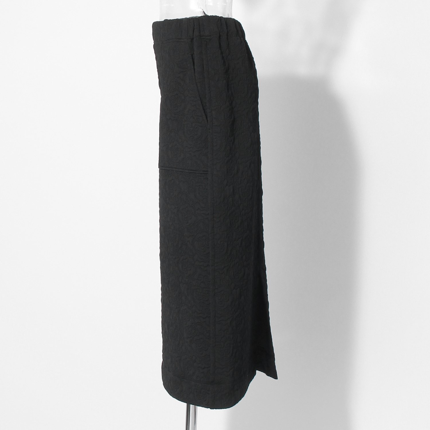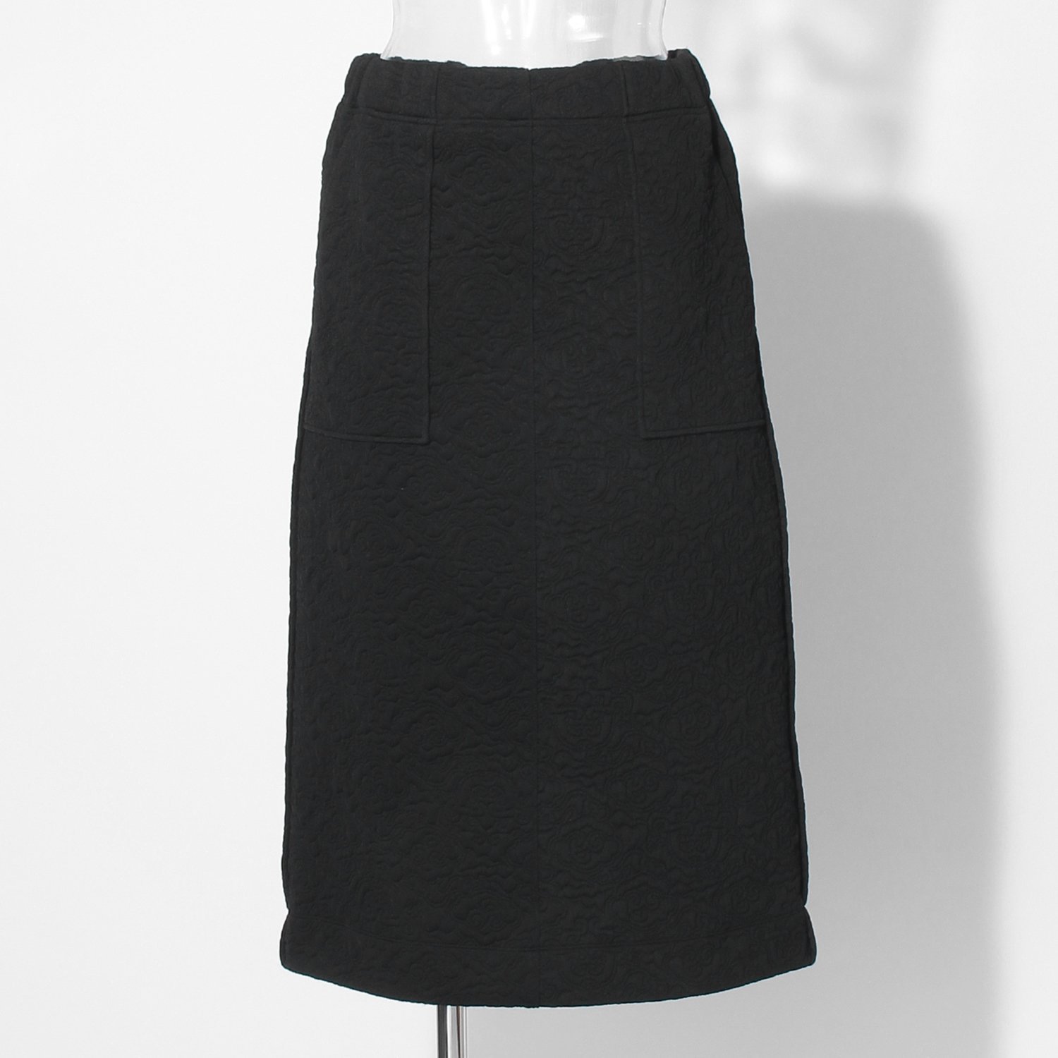 美しいシルエットが際立つ、上品なセミタイトスカート。オリジナルのキルトは程よい肉感で、さりげなくドラゴンが織り込まれています。シンプルなつくりながらも、パッチポケットがカジュアルさを感じさせるアクセントを添えて、スリット入りで脚捌きもしやすいです。トップスとのバランスも取りやすいように設計しているので、同シリーズのトップスと合わせて、セットアップで着こなすのもおすすめです。