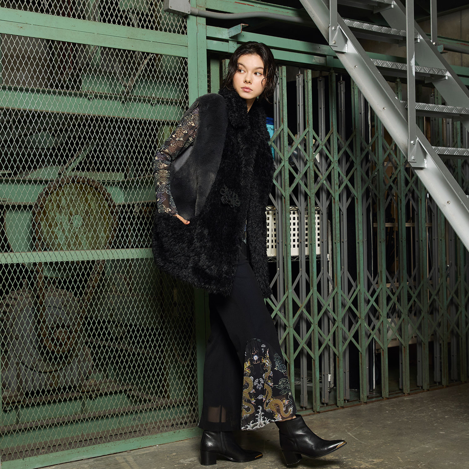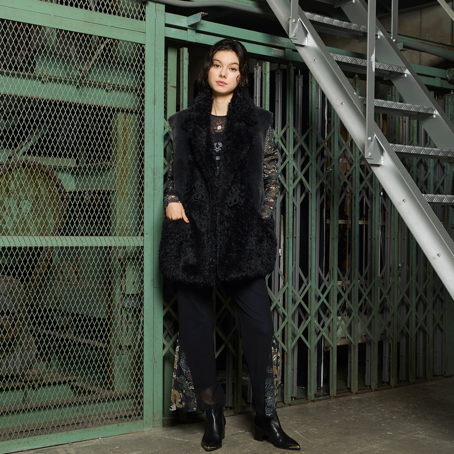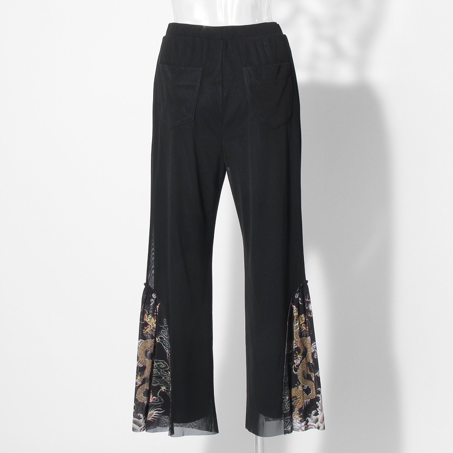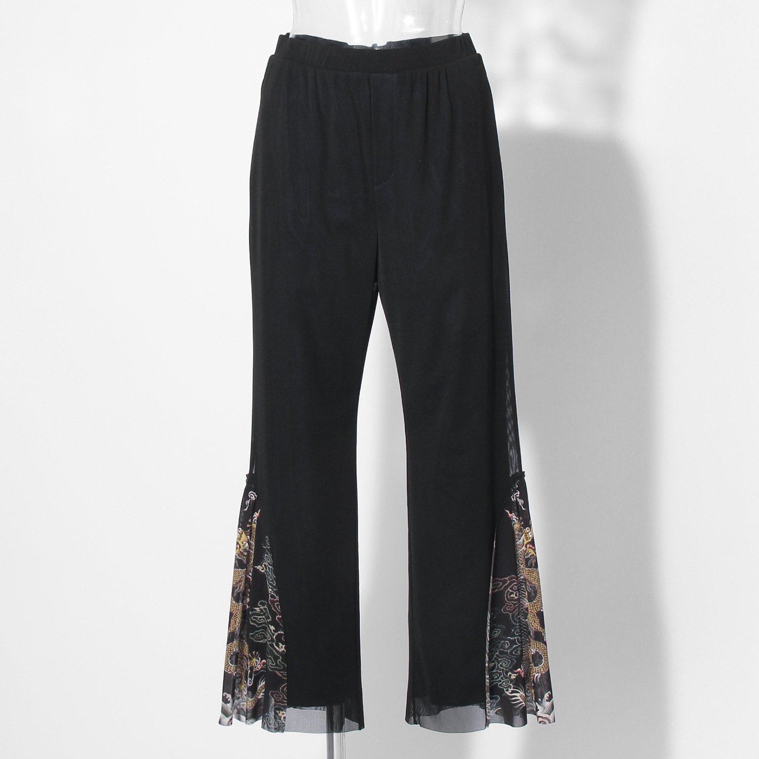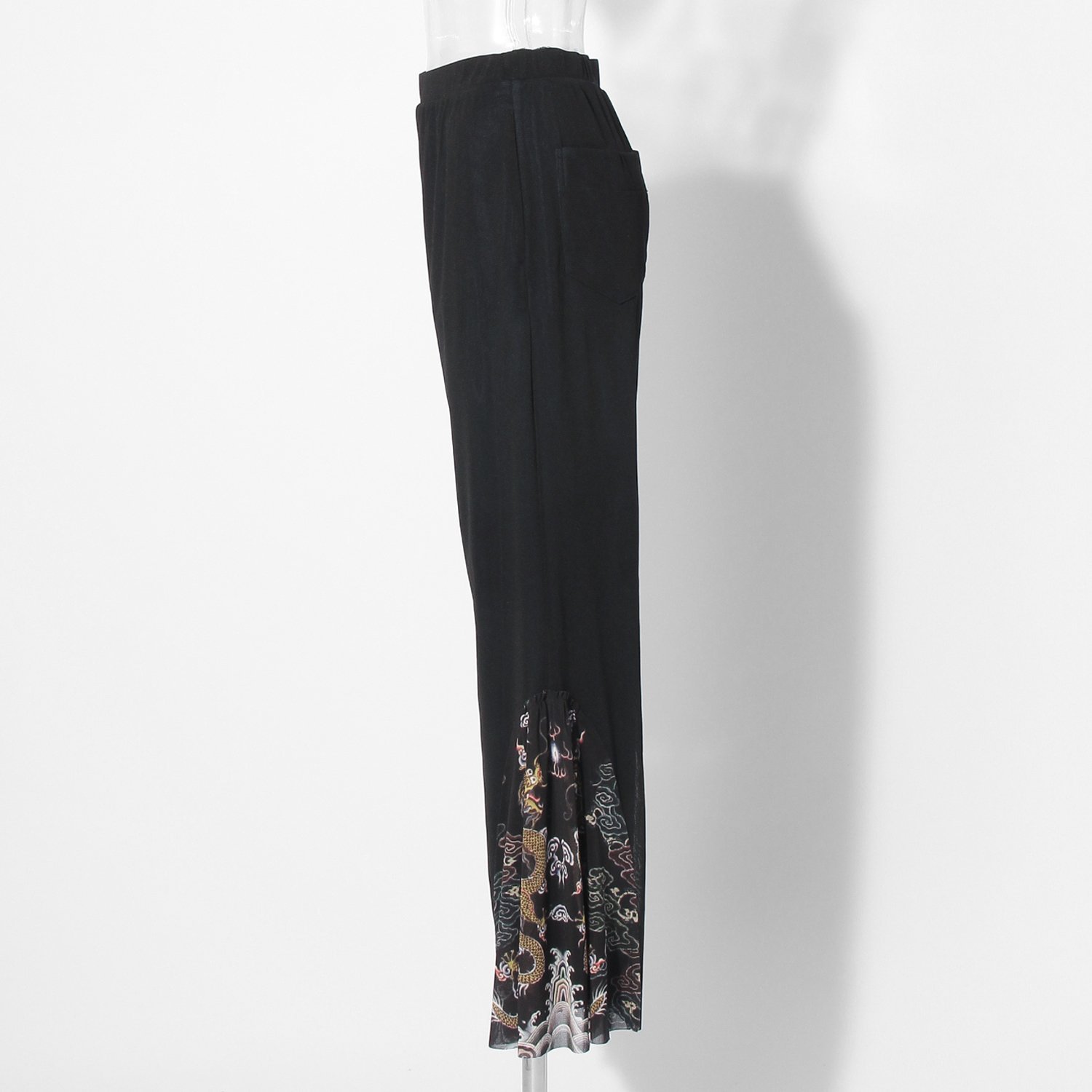 裾にアイコニックなドラゴンを配したパンツ。ふんわりと広がるフレアなシルエットで、装いをエレガントに導きます。ウエストにはゴムを入れているため着脱もしやすく、はき心地も快適。同シリーズのブラウスと合わせれば、世界観を存分に楽しめます。