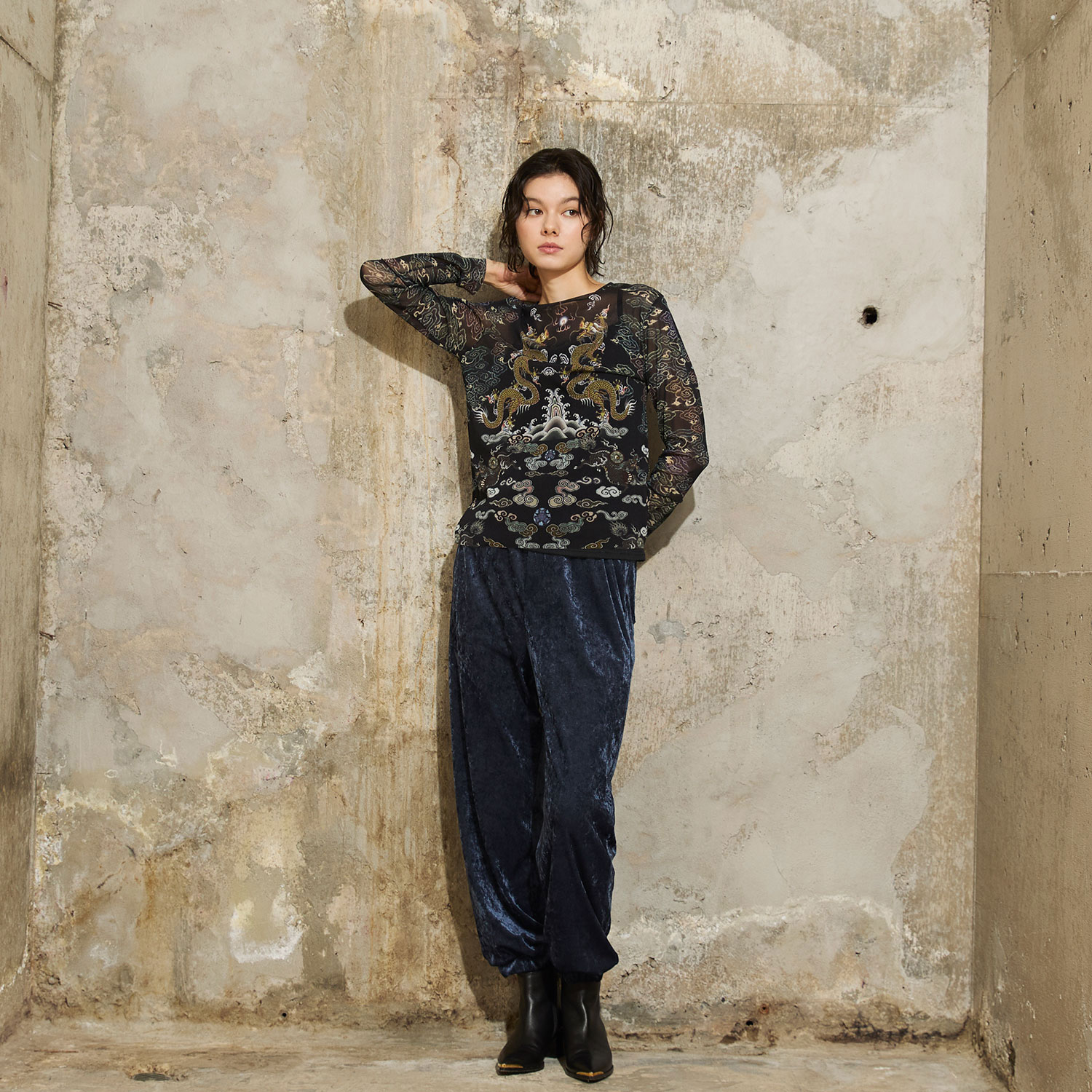※モデル着用商品はサンプルの為、着用写真と実際の商品の丈感が異なる場合がございます。商品のサイズをお選びいただく際には、掲載しておりますサイズ表(実寸)をご参照ください。
