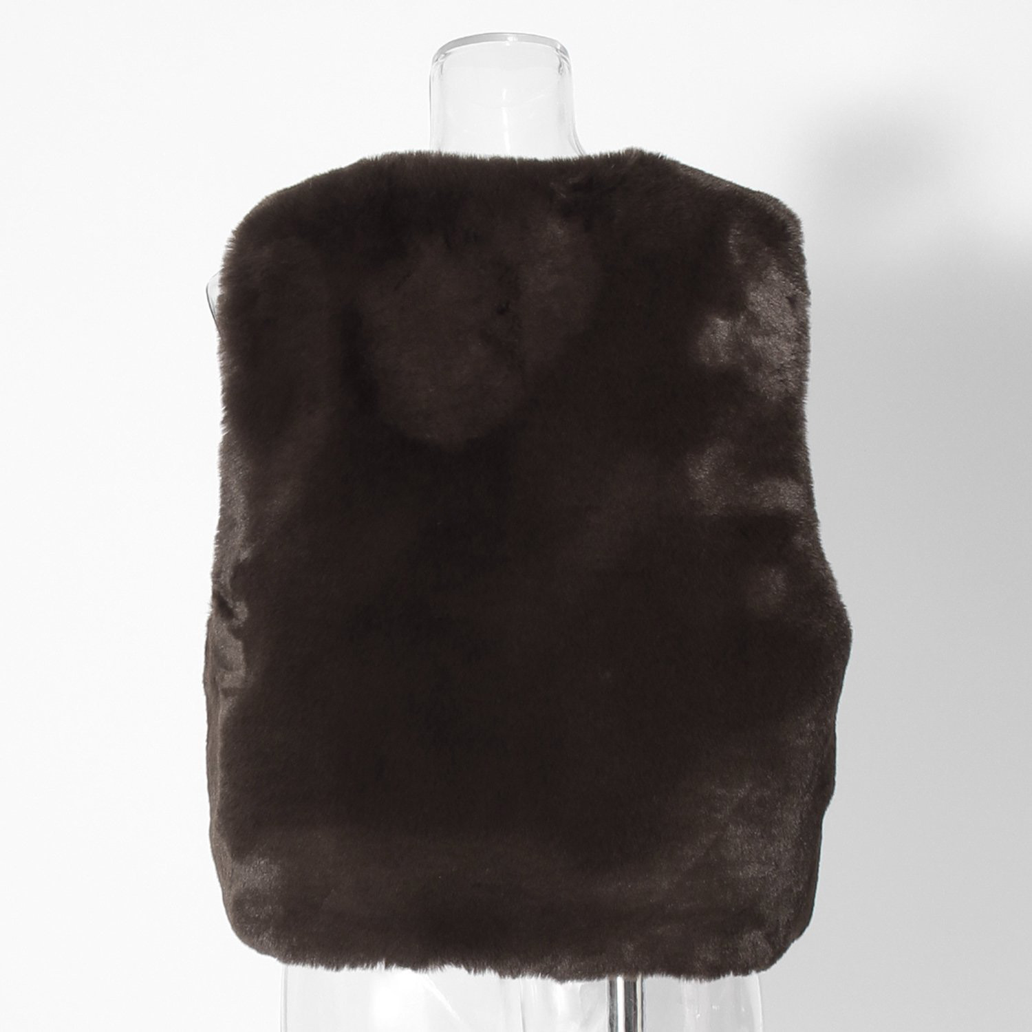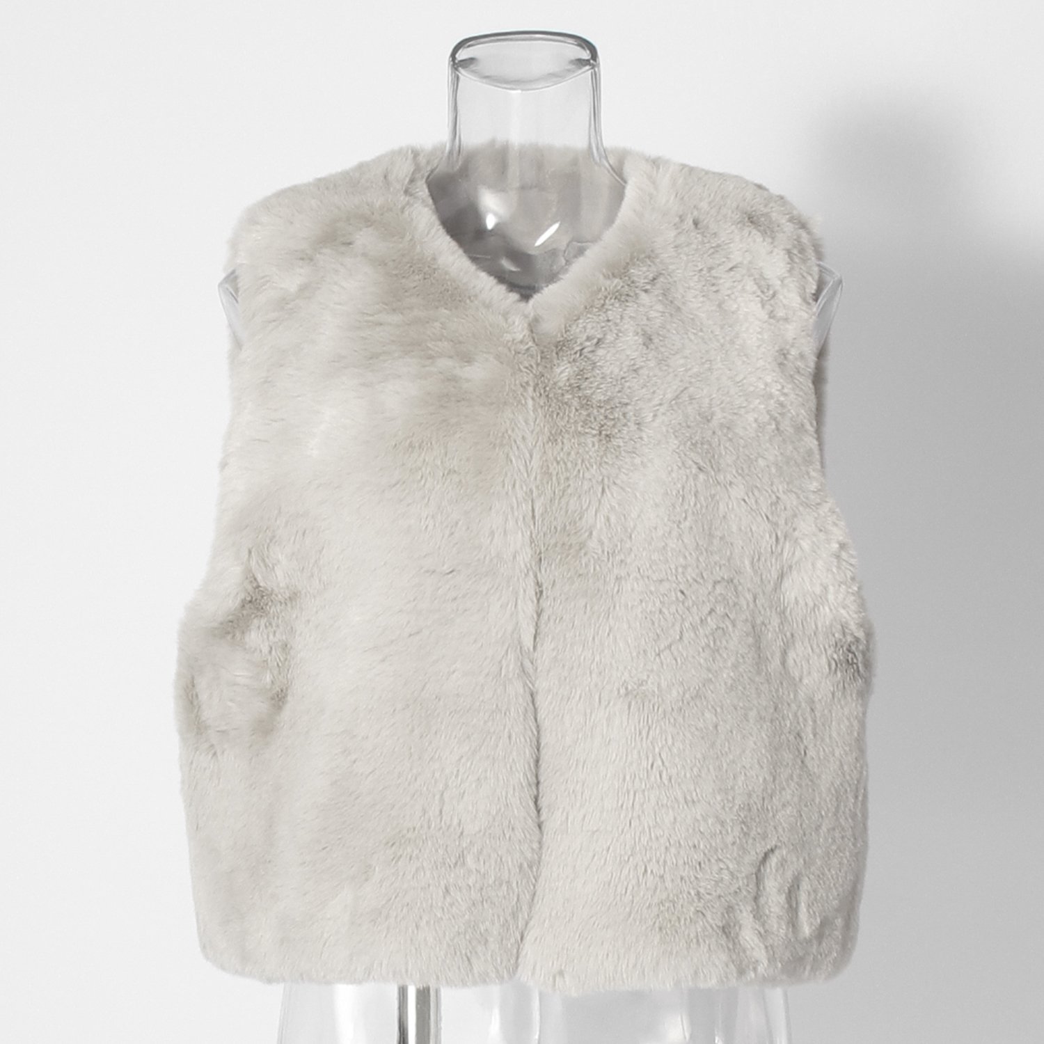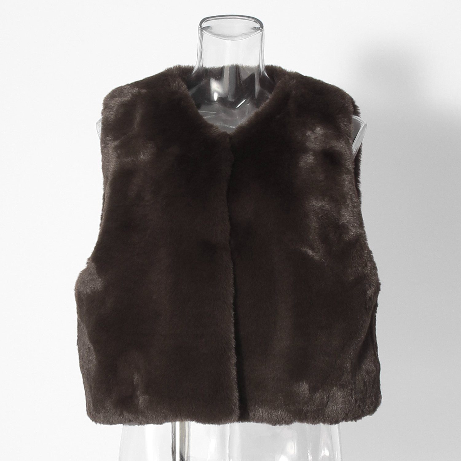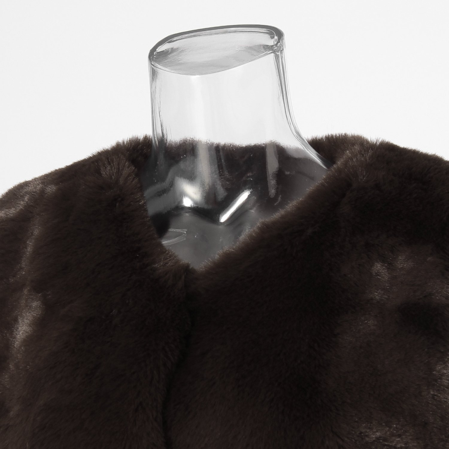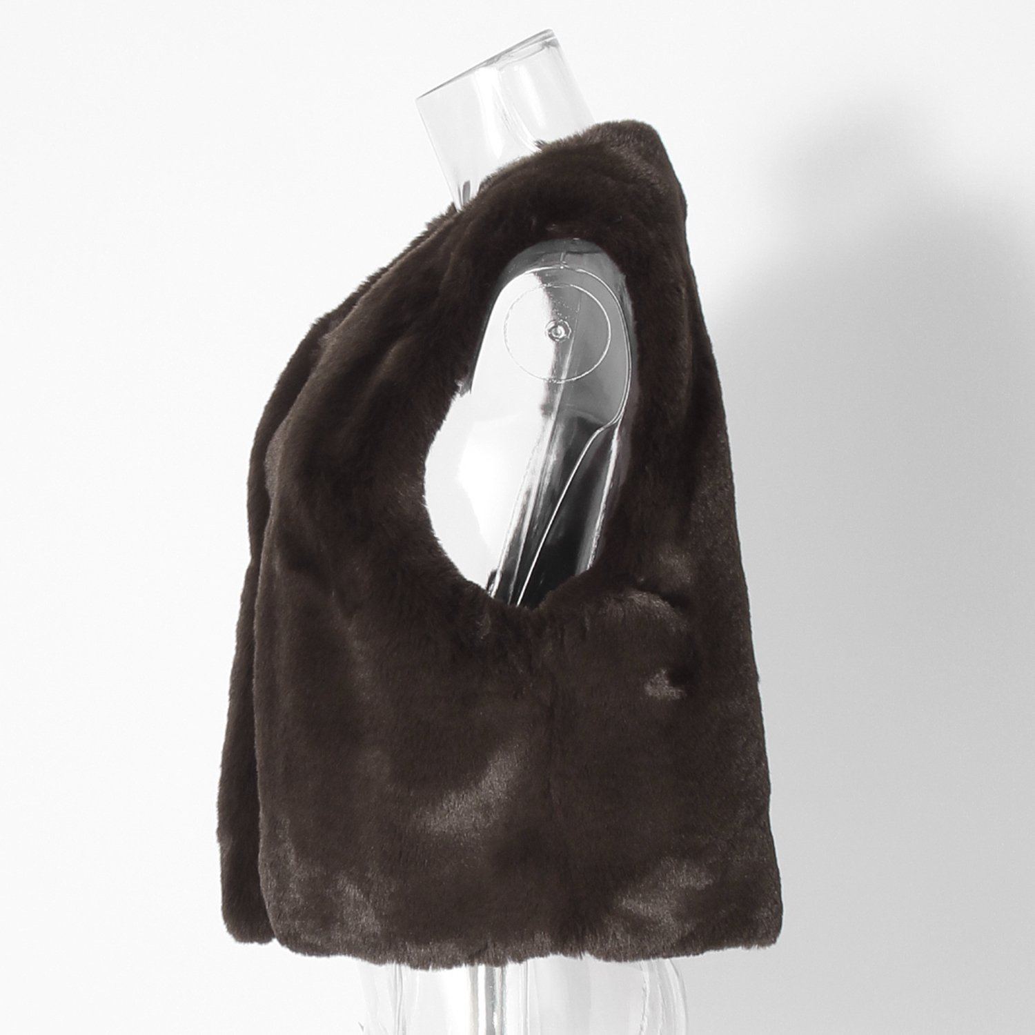 ふんわりとしたウォーミーなルックスに惹かれるショートベスト。レッキスのようなボリュームと快適な肌触りが特徴のエコファーを使用しております。トレンディなクロップド丈で、存在感のあるボトムスとも好相性です。