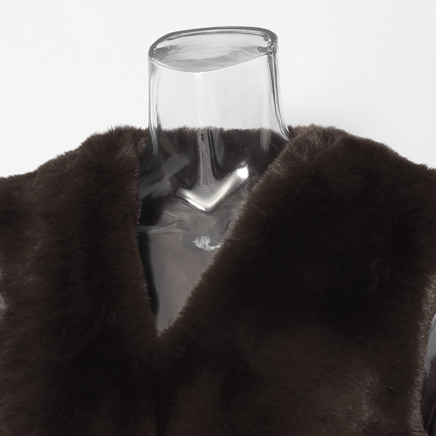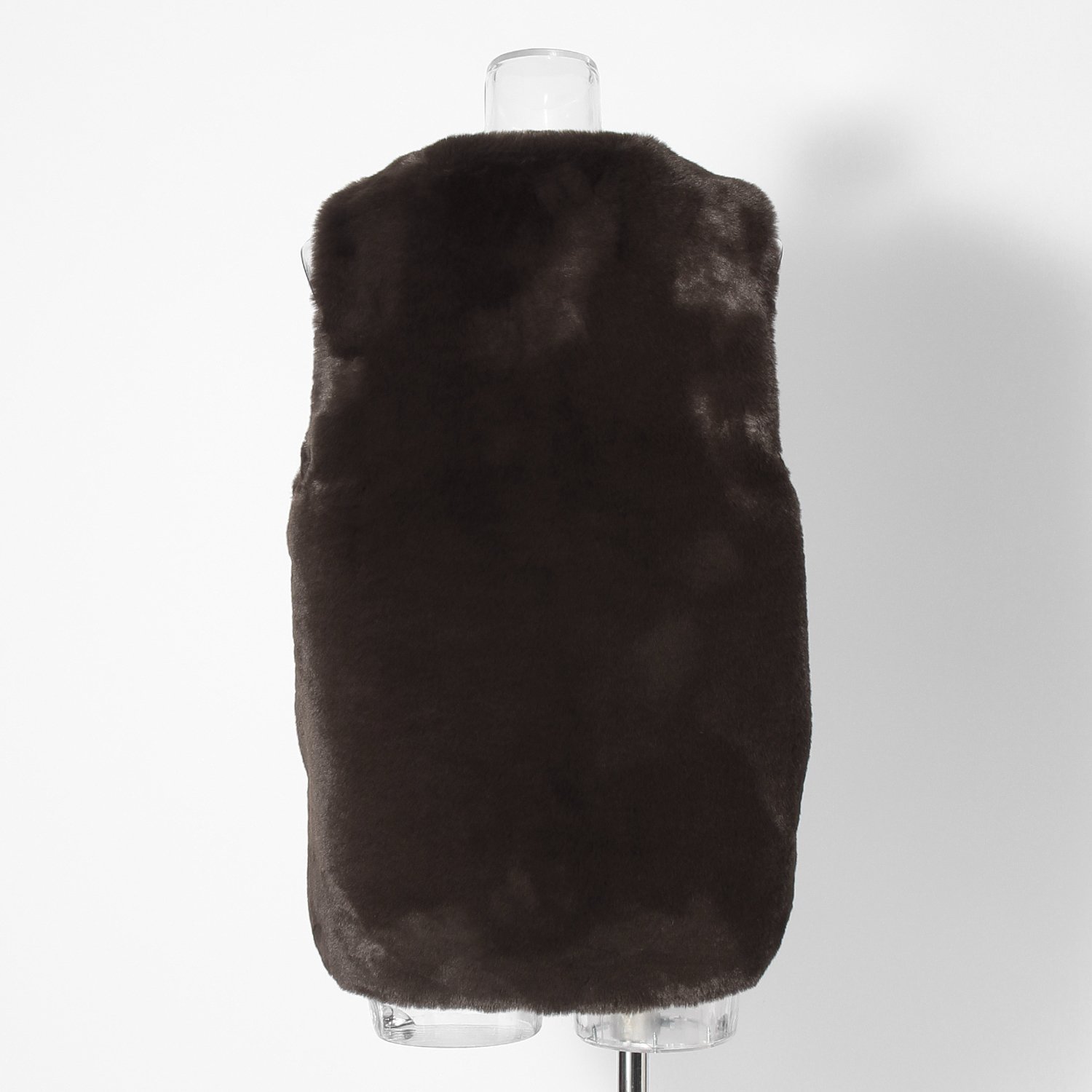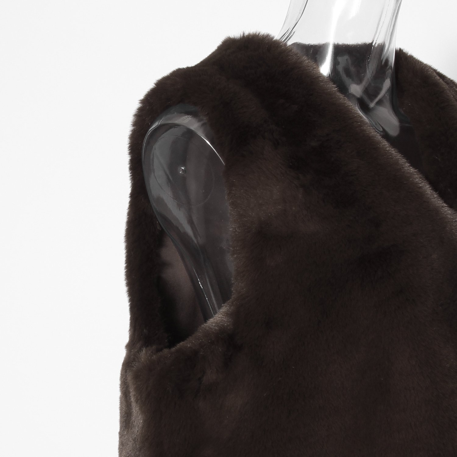 レッキスのようなボリュームと心地良い肌触りが特徴のエコファーを使用したベスト。さまざまなコーディネートと好相性なショート丈を採用し、着回しやすいのも魅力です。Vネック仕様でレイヤードスタイルにもマッチします。