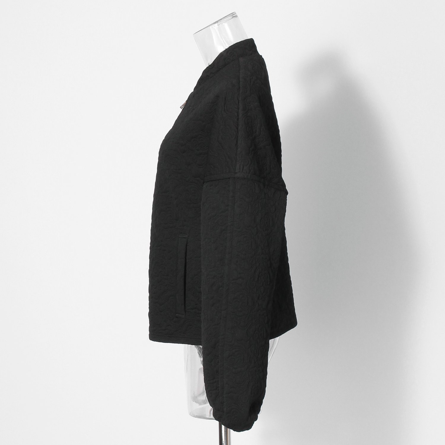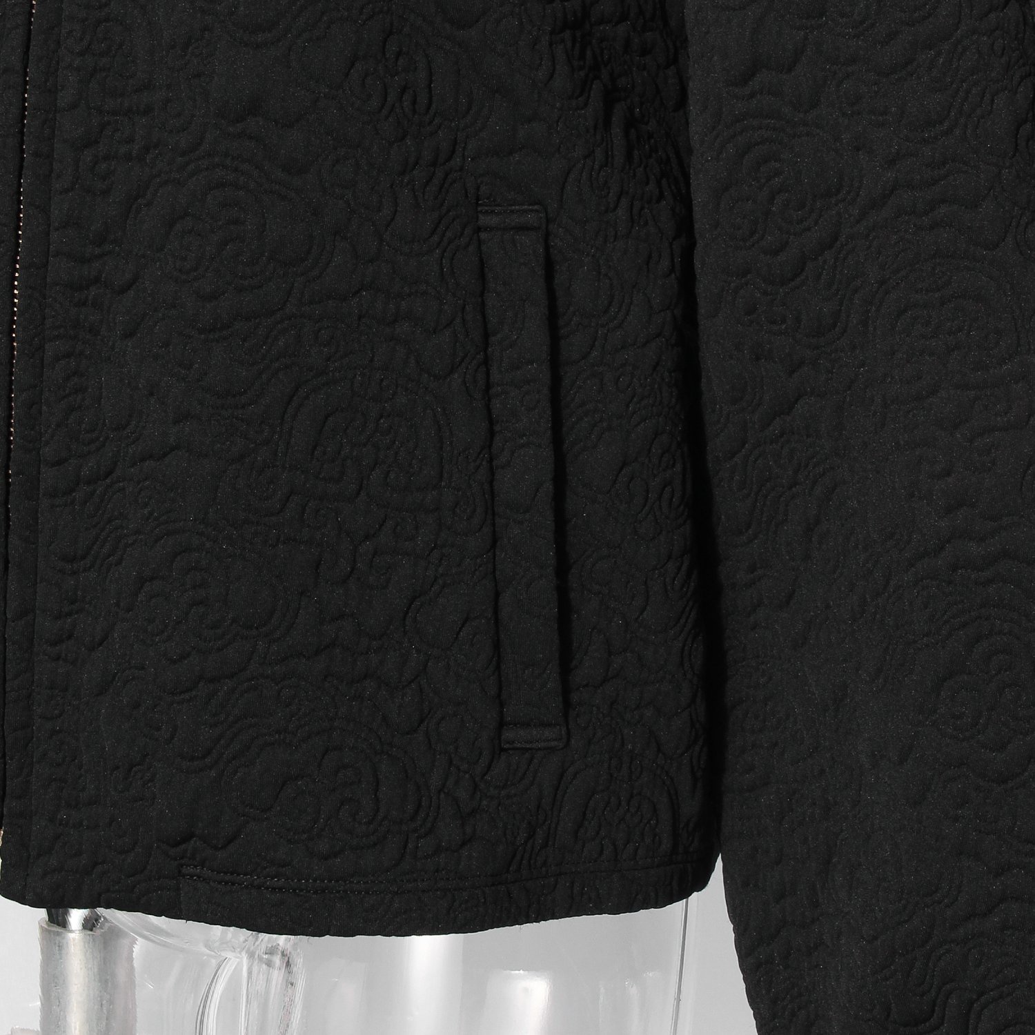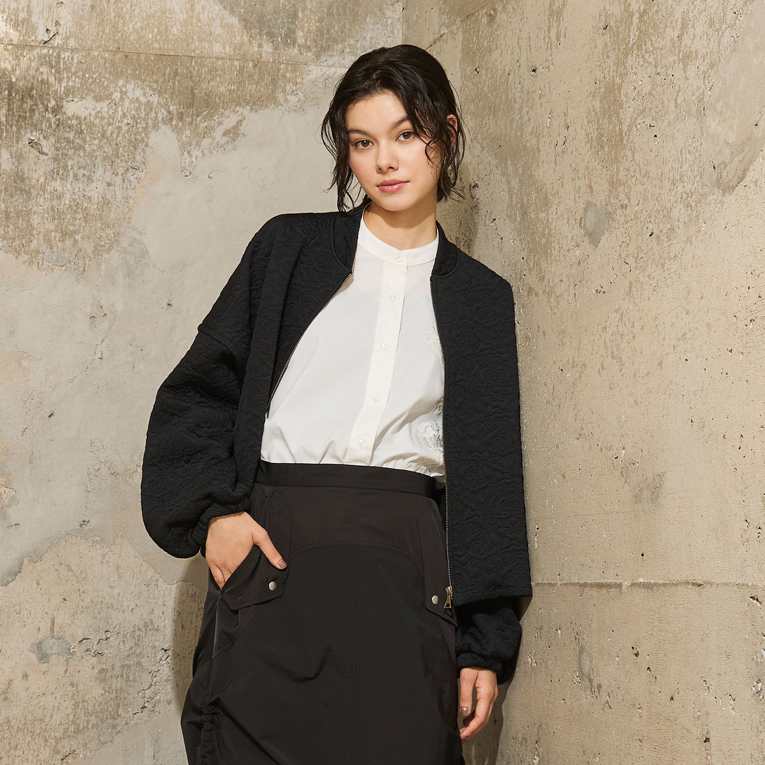 立体的なキルトがシーズンムードを盛り上げるブルゾン。オリジナルのキルトは程よい肉感で、さりげなくドラゴンが織り込まれています。すっきりとした着丈ながら、身幅や袖にはボリュームを持たせた美しいシルエットに仕上げました。フロントファスナーで羽織りやすく、デイリーユースにも好適です。
