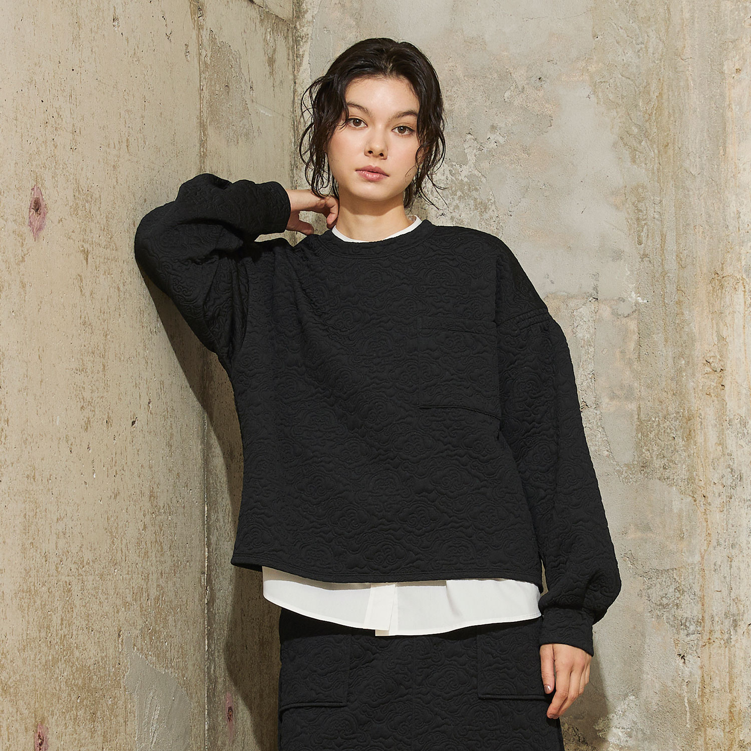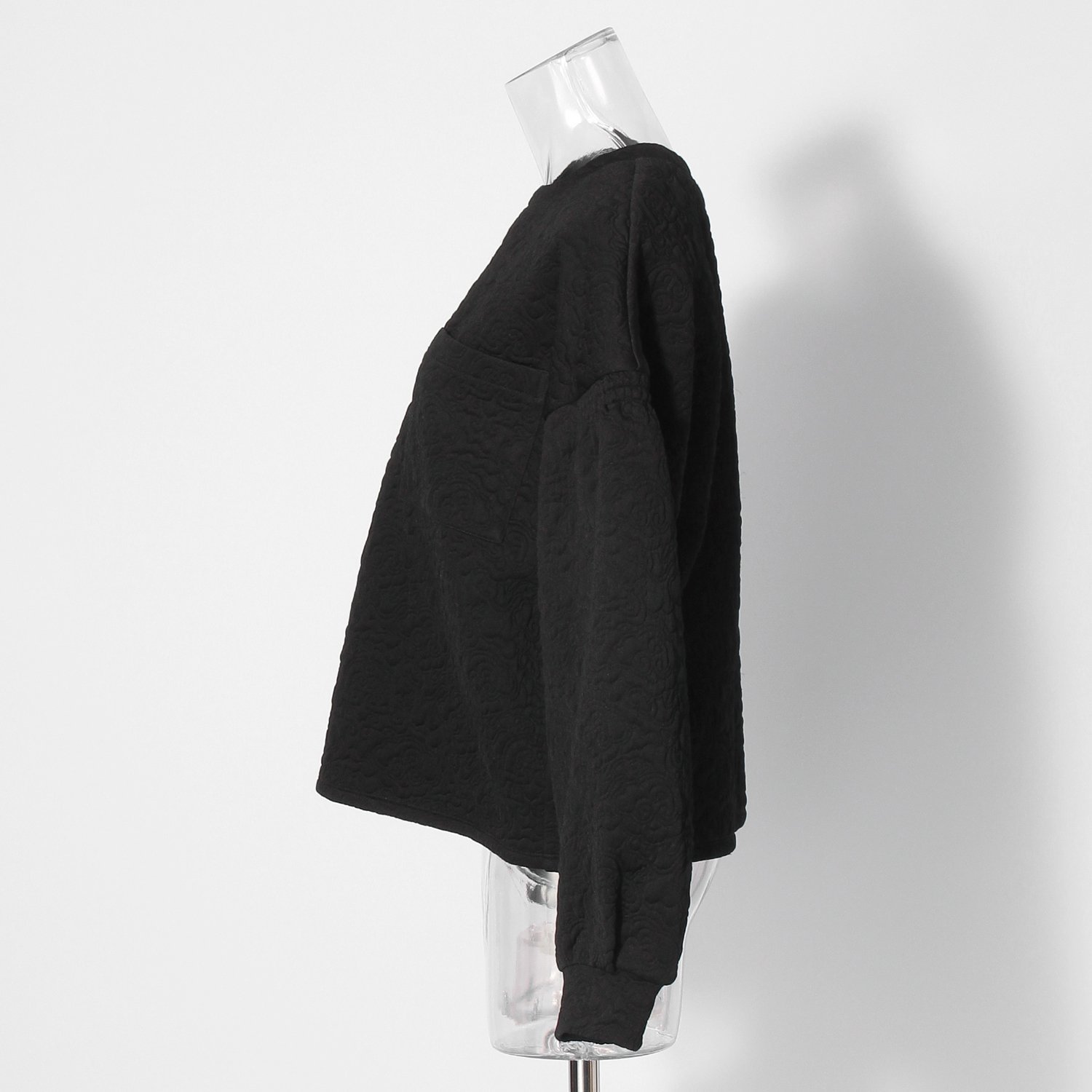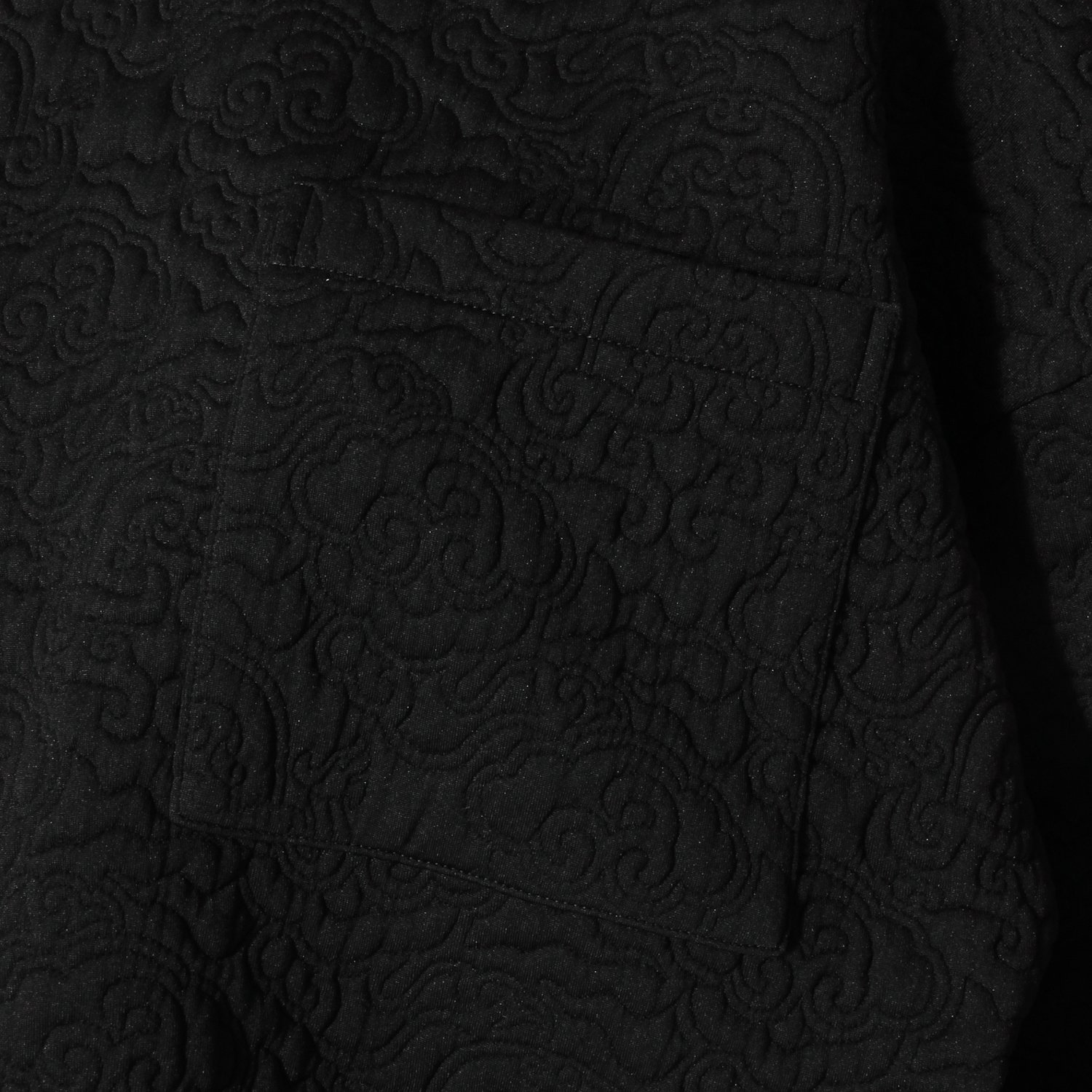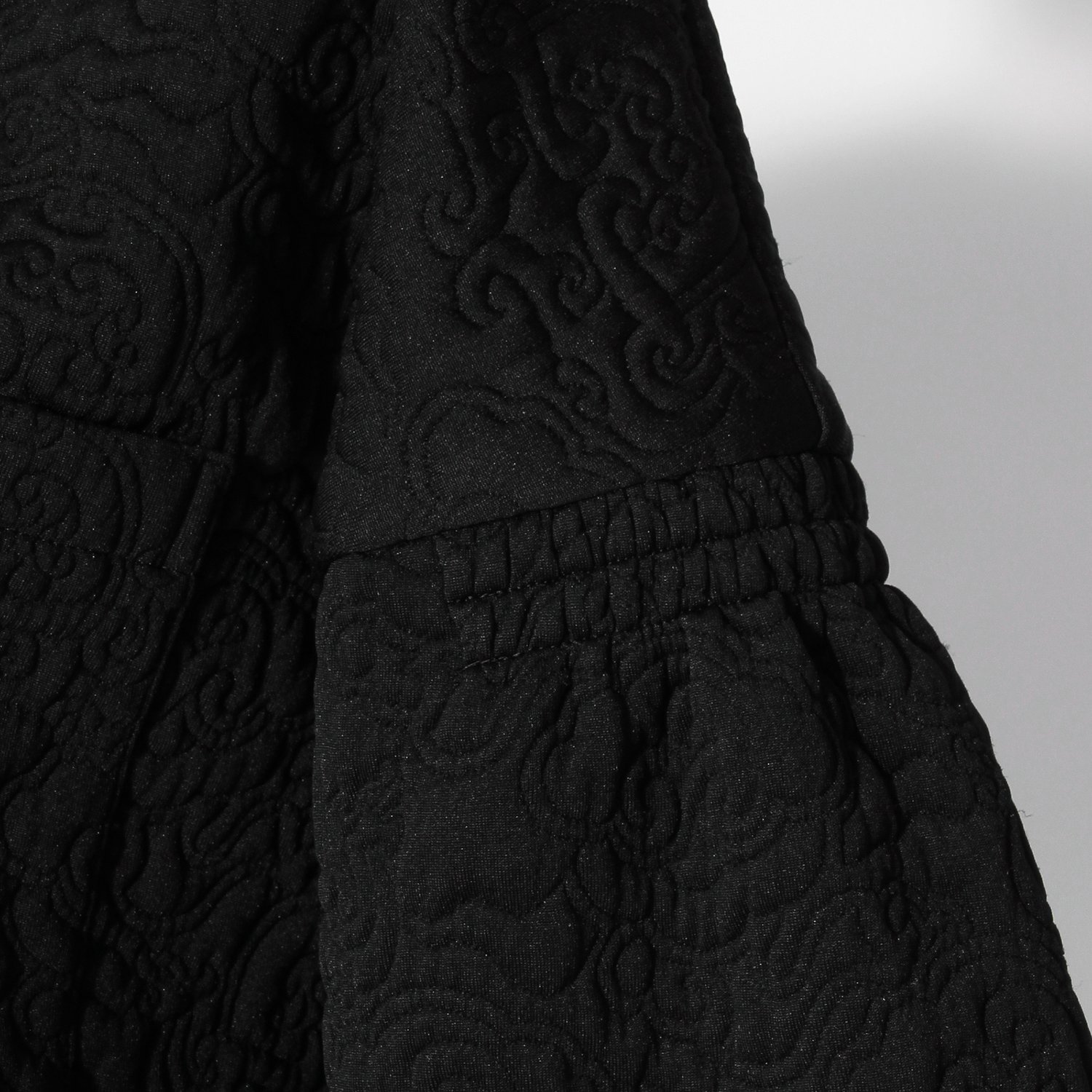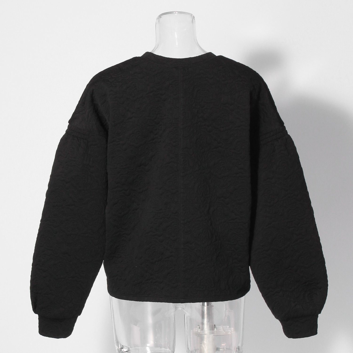 さりげなくドラゴンが織り込まれたキルトで仕上げたプルオーバー。袖山の部分にゴムを入れ、凹凸を表現した技巧的なシルエットが特徴です。着丈はやや短めに設定されているため、普段のファッションにも取り入れやすいのが嬉しいところ。伸縮性があり、着心地も快適です。