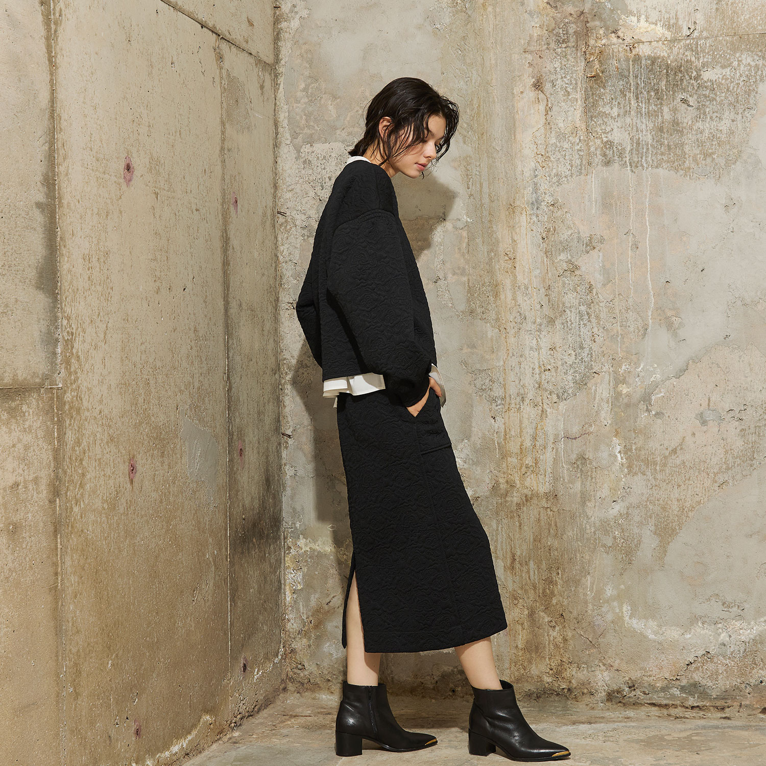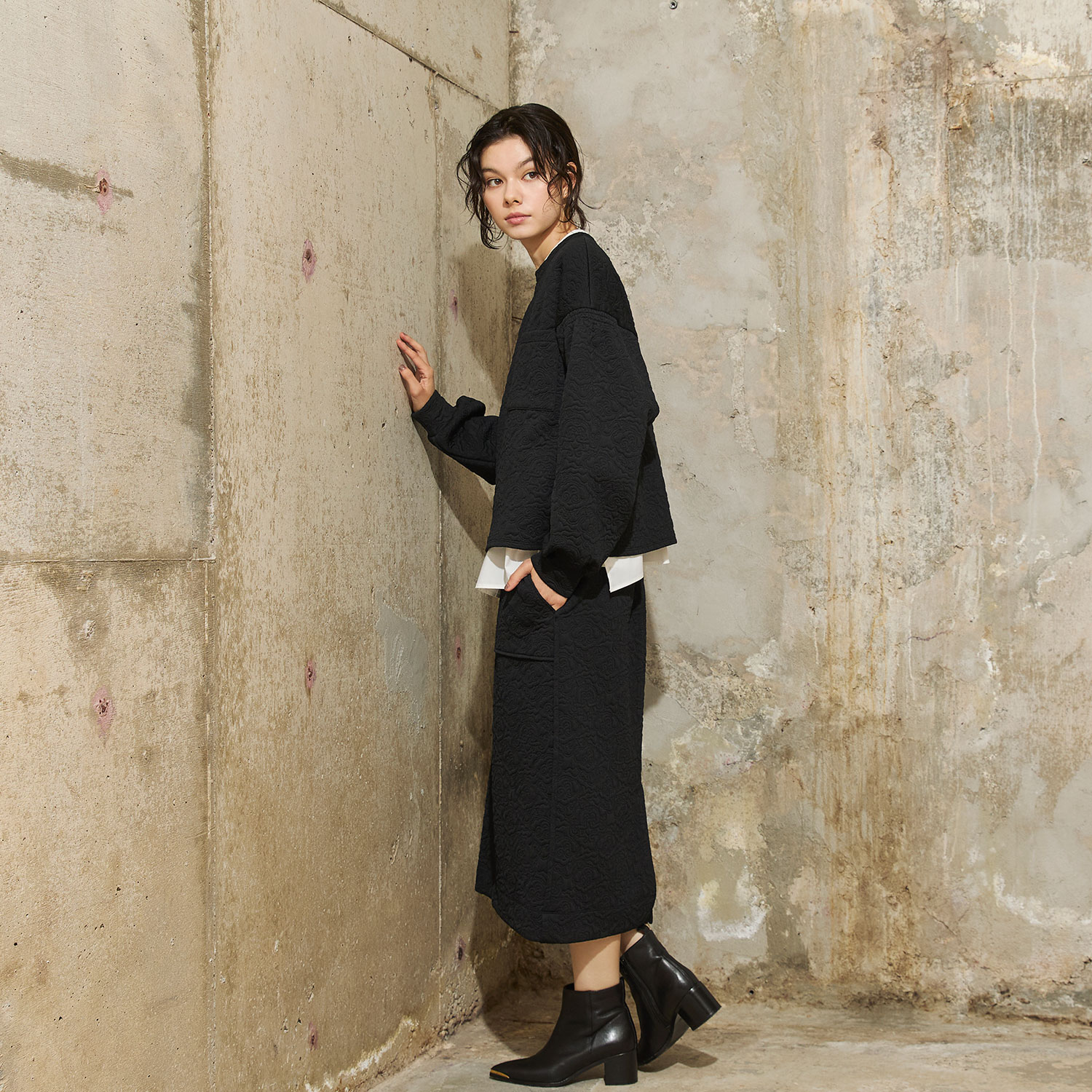 ※モデル着用商品はサンプルの為、着用写真と実際の商品の丈感が異なる場合がございます。商品のサイズをお選びいただく際には、掲載しておりますサイズ表(実寸)をご参照ください。