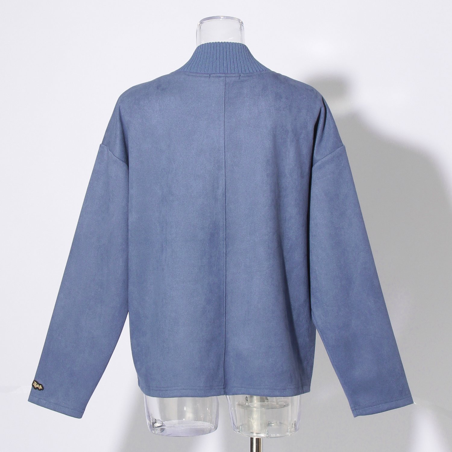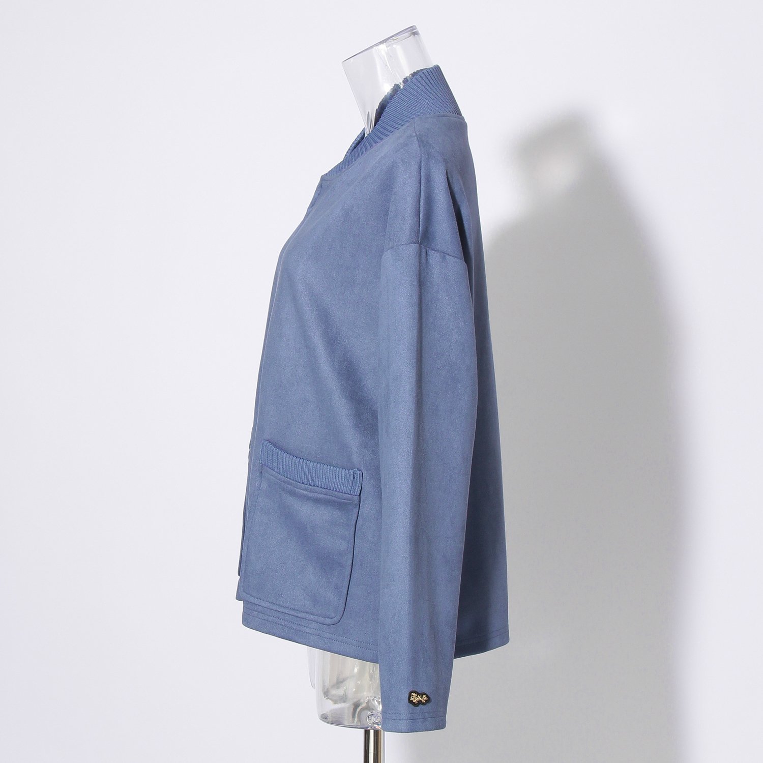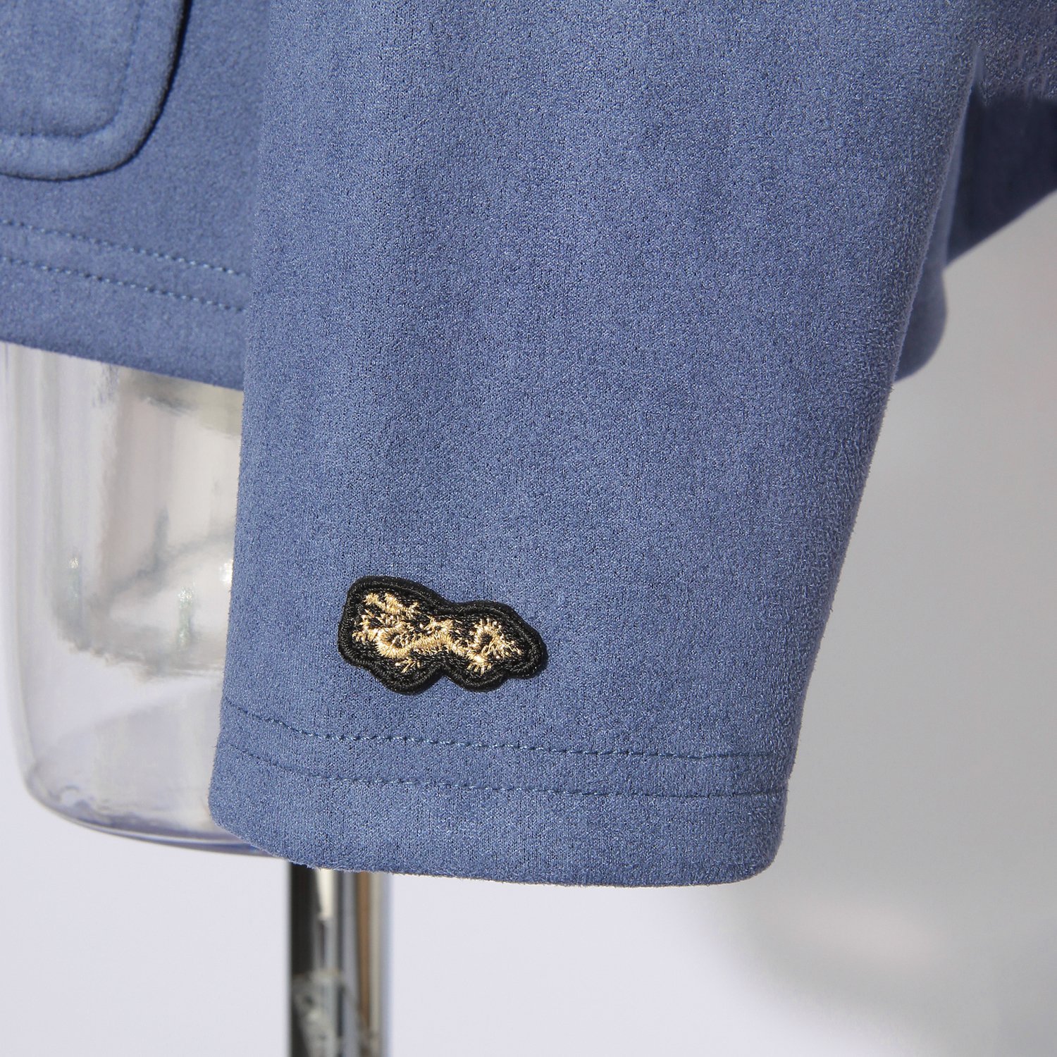 カーディガン感覚で軽く羽織れるブルゾン。シーズンムードを引き立てるフェイクスエード素材を使用し、高級感たっぷりなルックスに仕上がりました。滑らかな見た目とサラッとした表情、良好な伸縮性を持ち、着心地が良いのも魅力的なポイント。フロントポケットに施したニットリブはさりげないアクセントを添え、装いを新鮮に彩ってくれます。左袖にオリジナルのミニドラゴンワッペン付き。