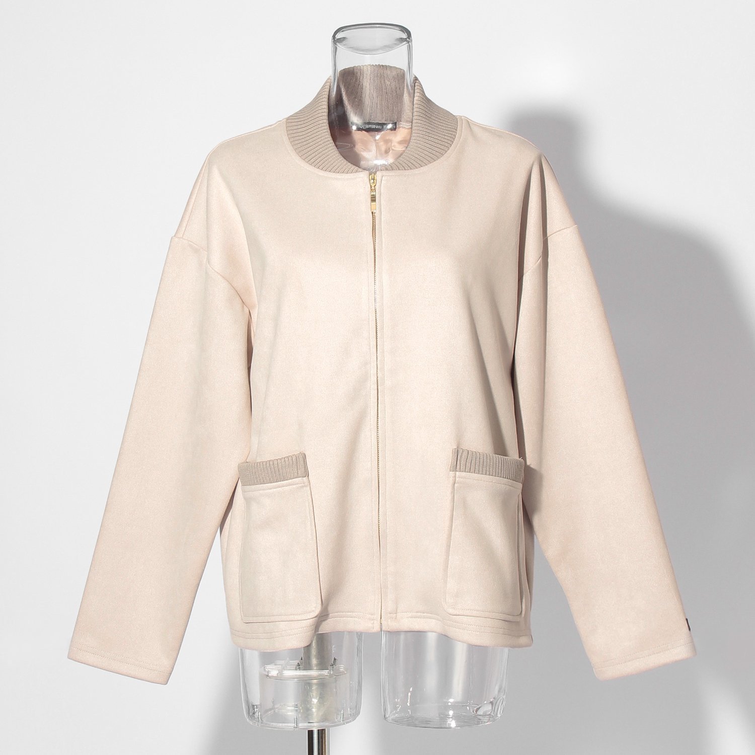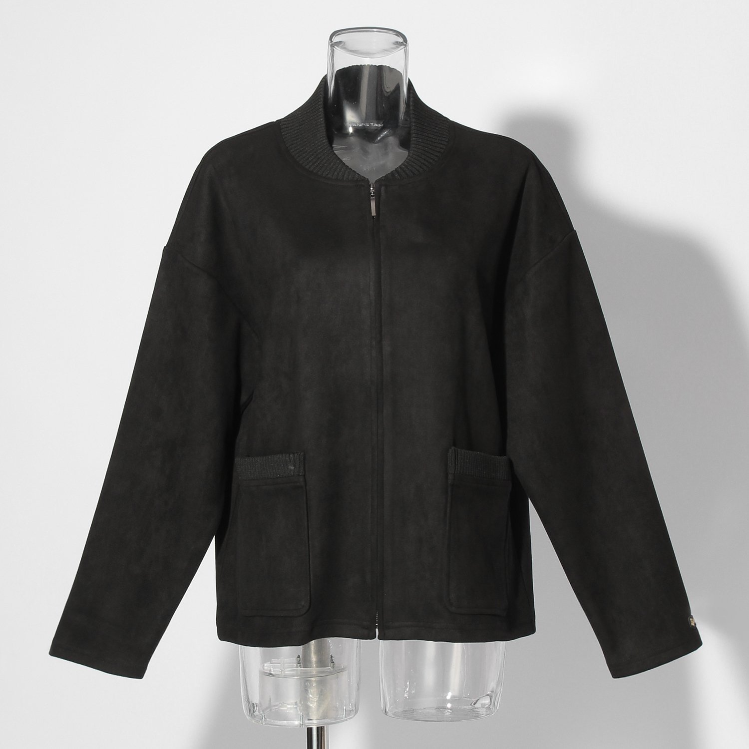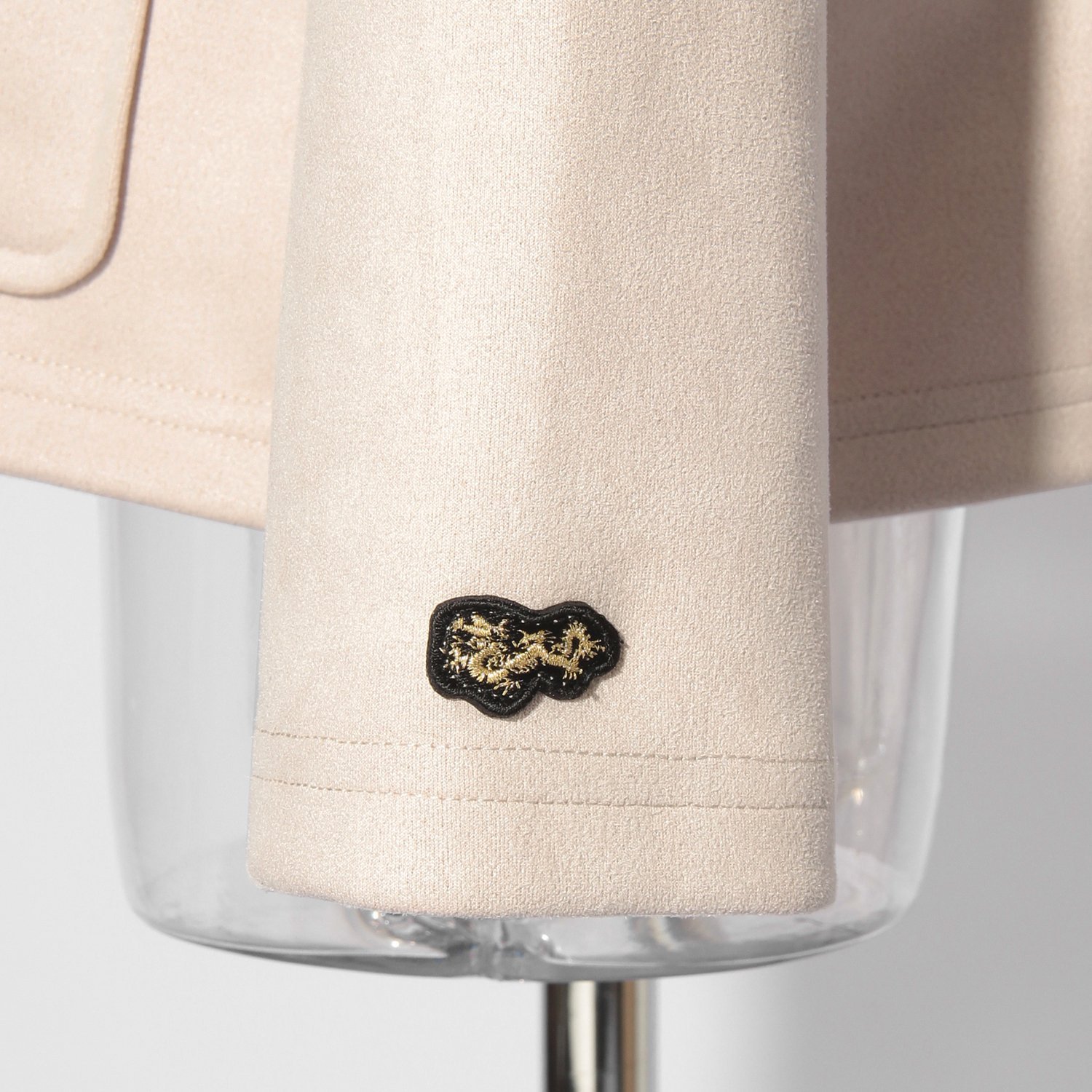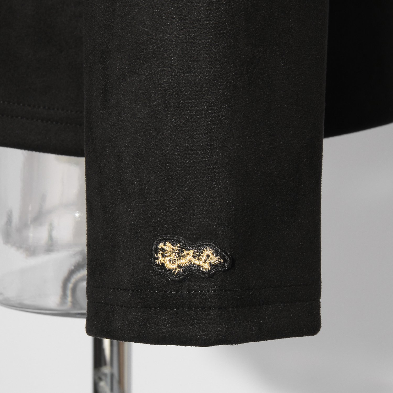 カーディガン感覚で軽く羽織れるブルゾン。シーズンムードを引き立てるフェイクスエード素材を使用し、高級感たっぷりなルックスに仕上がりました。滑らかな見た目とサラッとした表情、良好な伸縮性を持ち、着心地が良いのも魅力的なポイント。フロントポケットに施したニットリブはさりげないアクセントを添え、装いを新鮮に彩ってくれます。左袖にオリジナルのミニドラゴンワッペン付き。