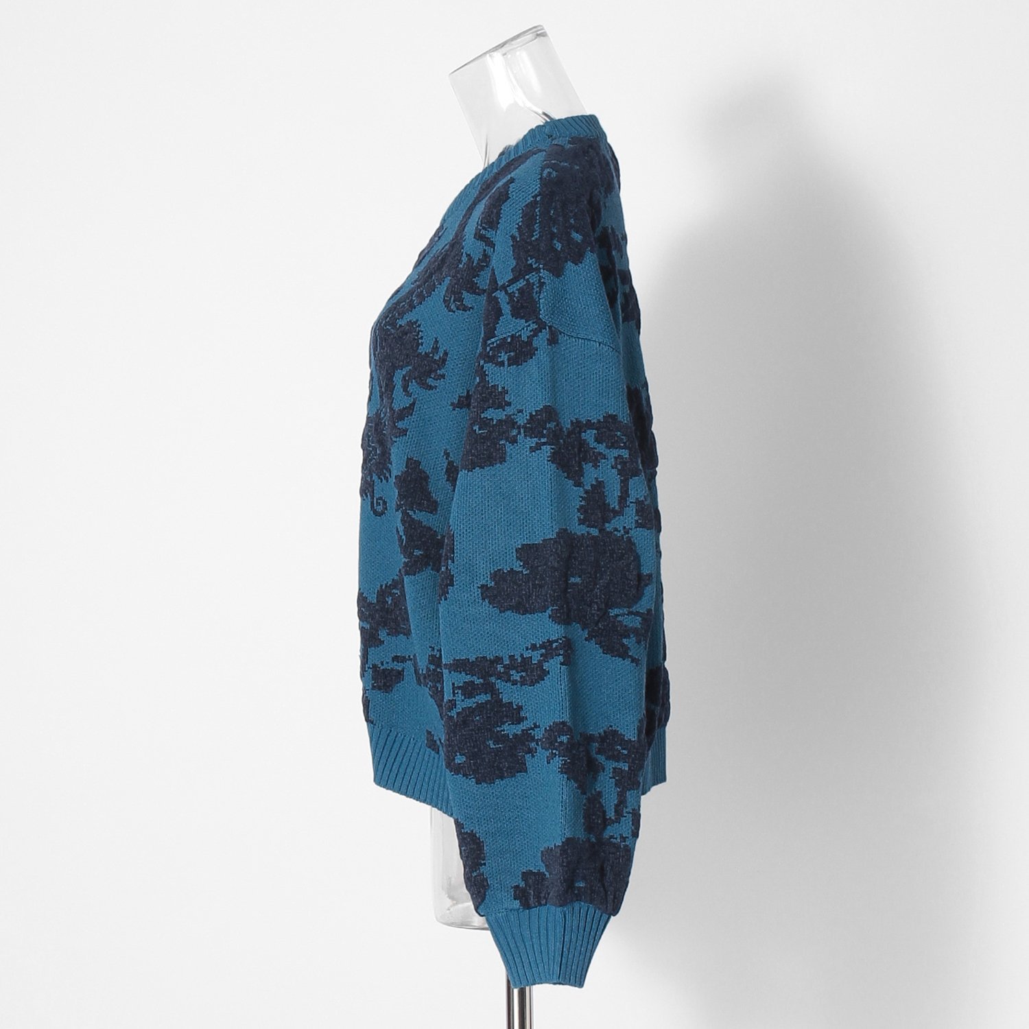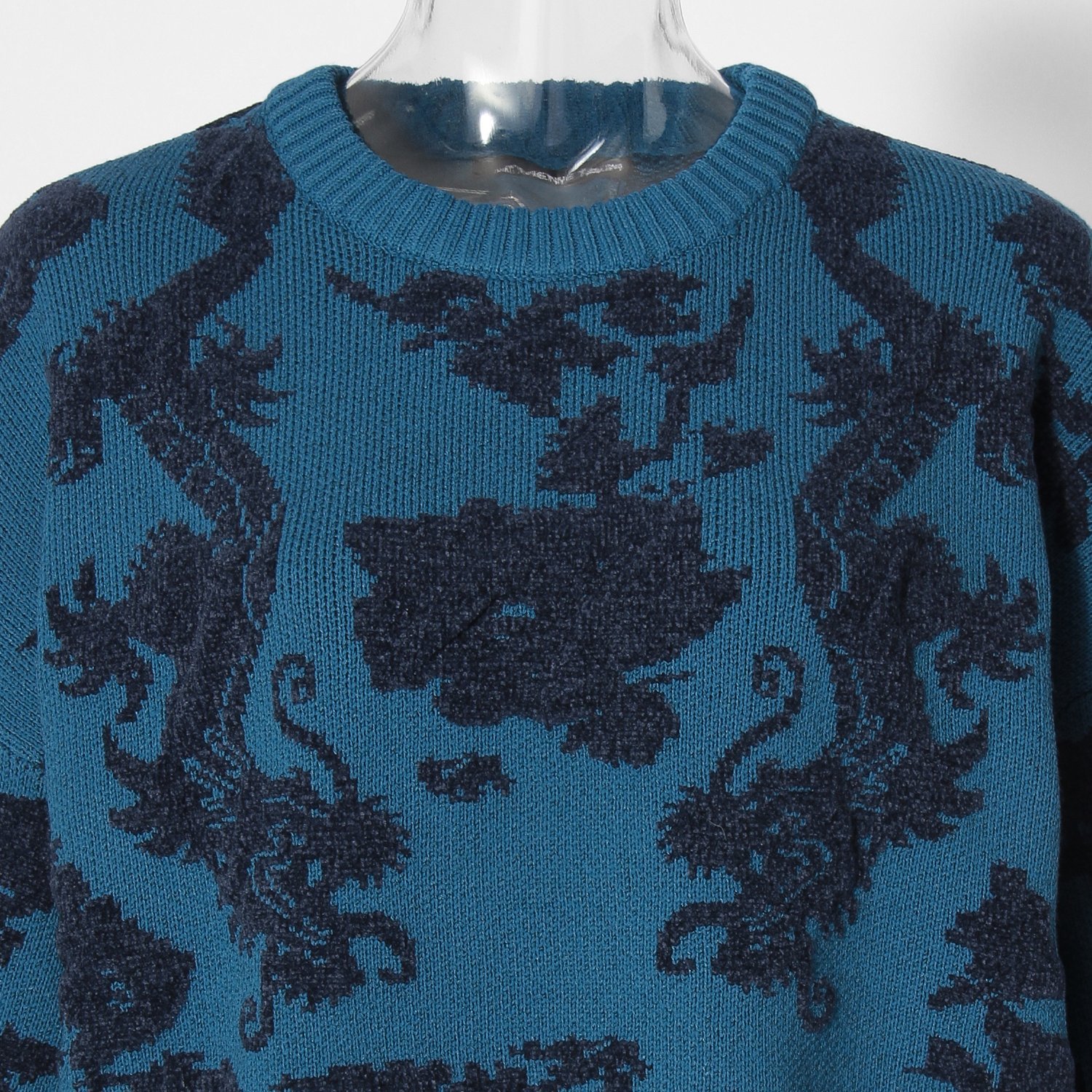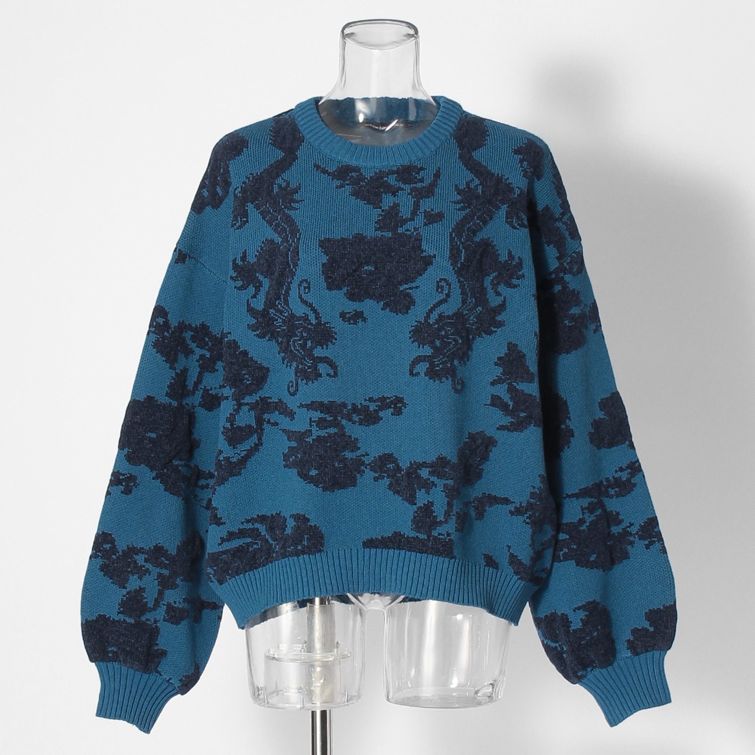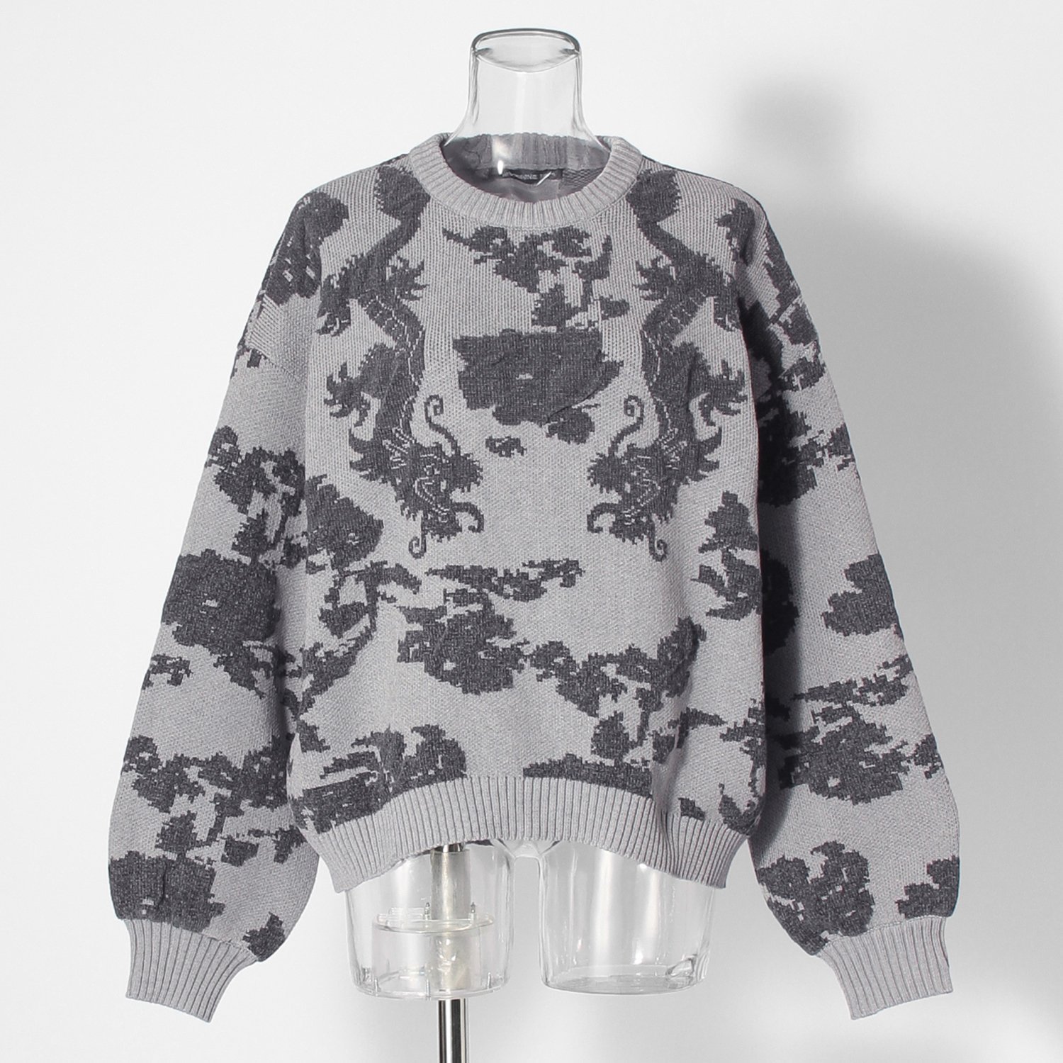 ぬくもりを感じるシルエットが魅力的なプルオーバー。ドラゴンとフラワーをジャカード編みで表現しました。柄が浮かびあがるようなモールヤーンの凹凸もアクセントをプラス。胸元にドラゴンが来るデザインで、ブランドらしさも抜かりない仕上がりです。