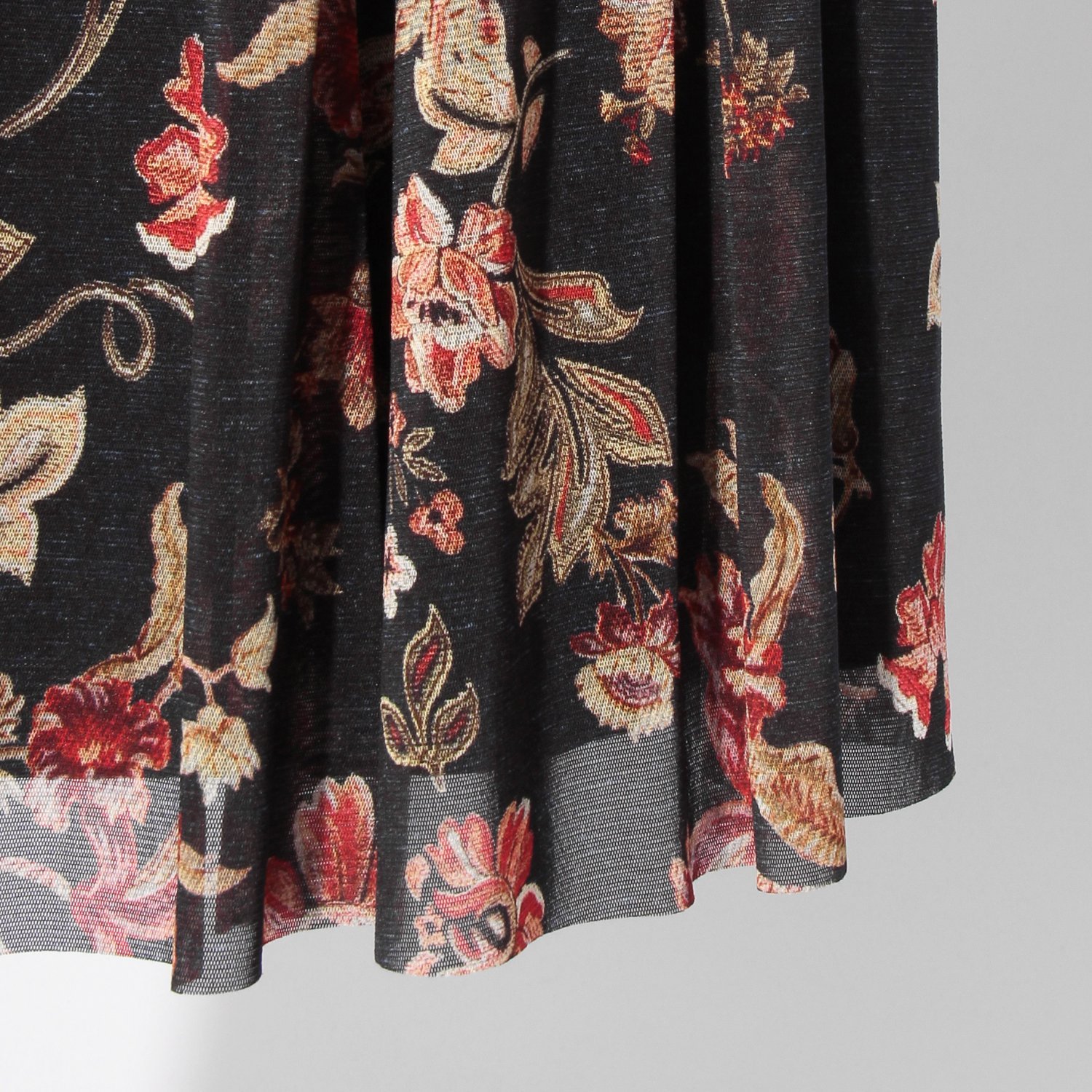 大人らしさを忘れない華やかなスカート。伝統的な手織り絨毯である「緞通(だんつう)」の花柄をイメージし、織りや刺繍をプリントで表現した技巧的な1枚です。甘さを抑えたシャーリングでギャザーをあしらい、スタイリングを上品にエスコート。ネット素材ならではのストレッチ感で気持ち良くご着用いただけます。同シリーズのブラウスとのセットアップで着こなすのもおすすめです。