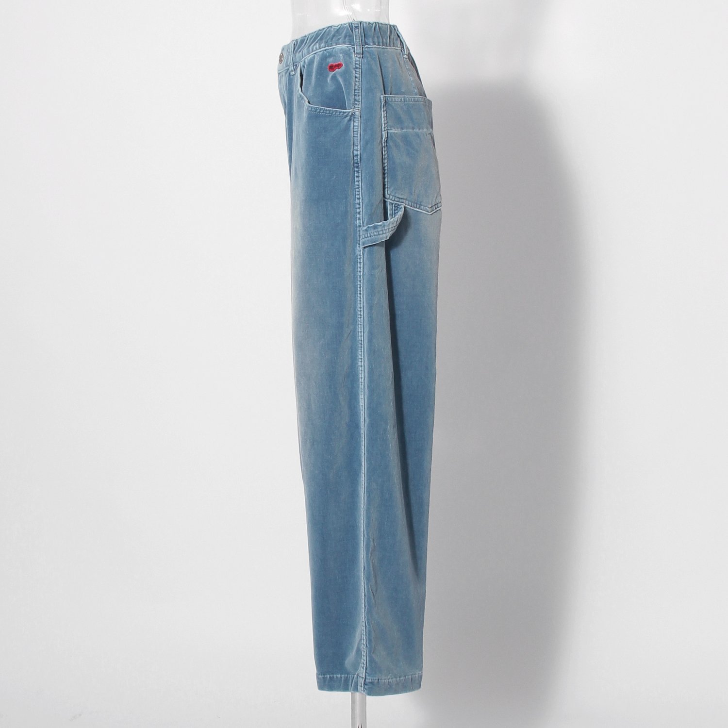 ほんのり起毛した優しい風合いが特徴のデニムパンツ。柔らかな光沢感のある別珍素材を使用し、カジュアルながらもソフトな上品さが漂います。肌当たりの良さとリラクシーなシルエットも相まって、しなやかかつ快適にご着用いただけるアイテムです。左ポケット口にデニム専用の赤いドラゴンワッペン付き。