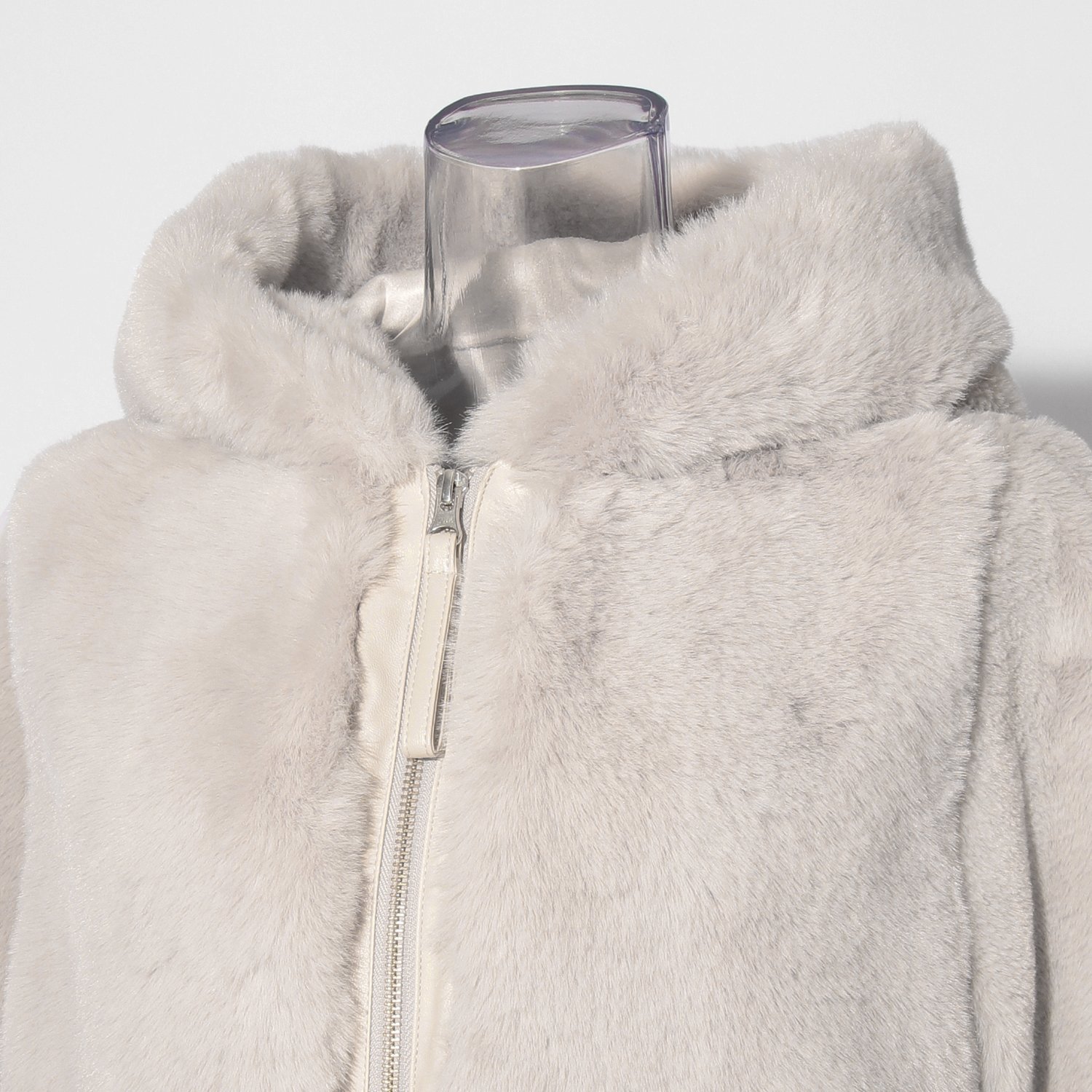 エコファーとムートンを組み合わせたコート。高密度の繊維を使用することで滑らかな毛並みを表現しました。ファーアイテムらしいニュアンスカラーを使用し、シーズンムードも盛り上げてくれます。メリハリのあるルックスでバランスも取りやすい上に着心地も軽く、幅広いシーンで活躍します。