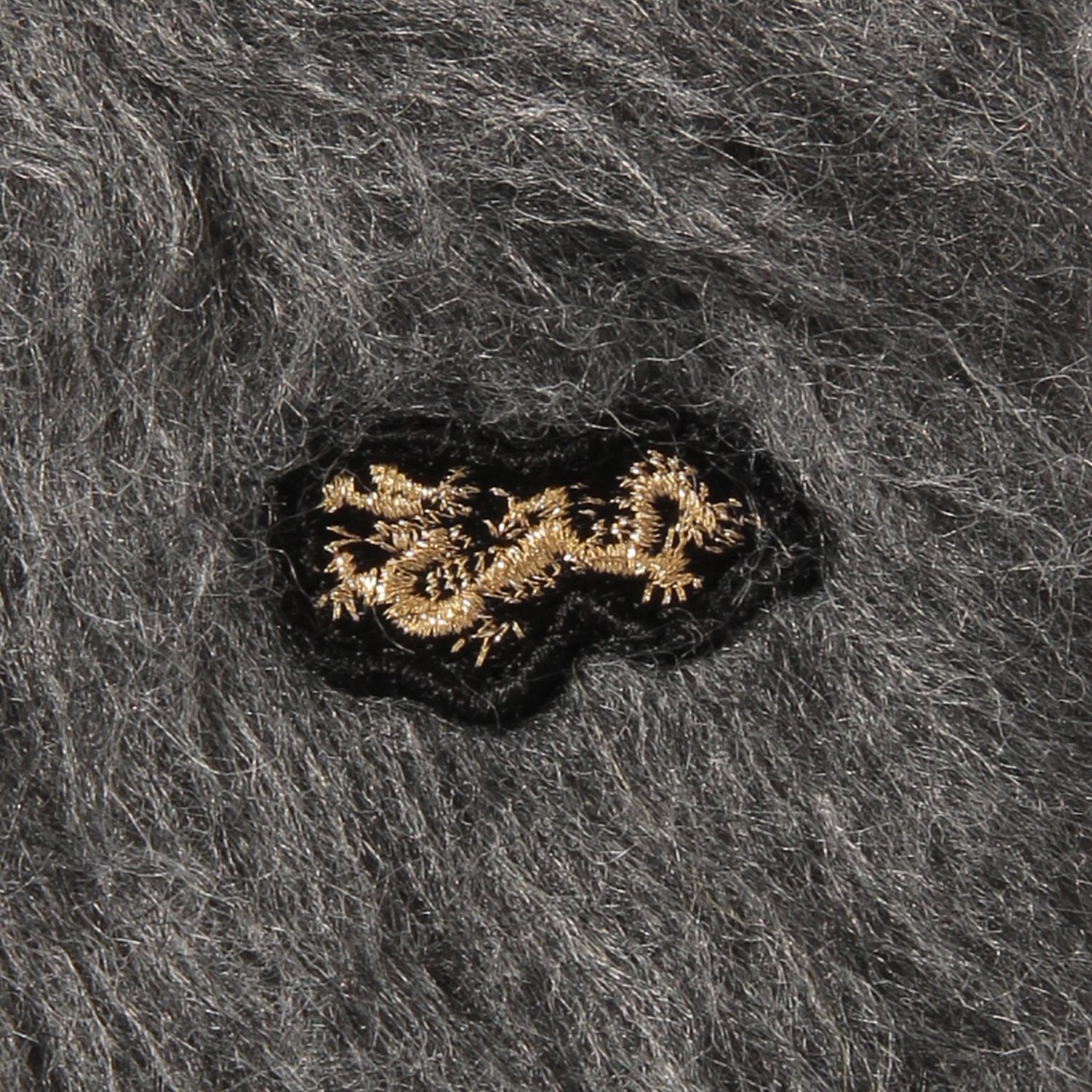 大胆なグラデーションカラーが目を引くニットプルオーバー。ふわっとした長めの毛足が、シーズンムードを盛り上げてくれる1着です。空気を十分に含んだ保温性の高い素材を使用し、ぬくもり感と軽い着心地を両立しました。左袖にオリジナルのミニドラゴンワッペン付き。