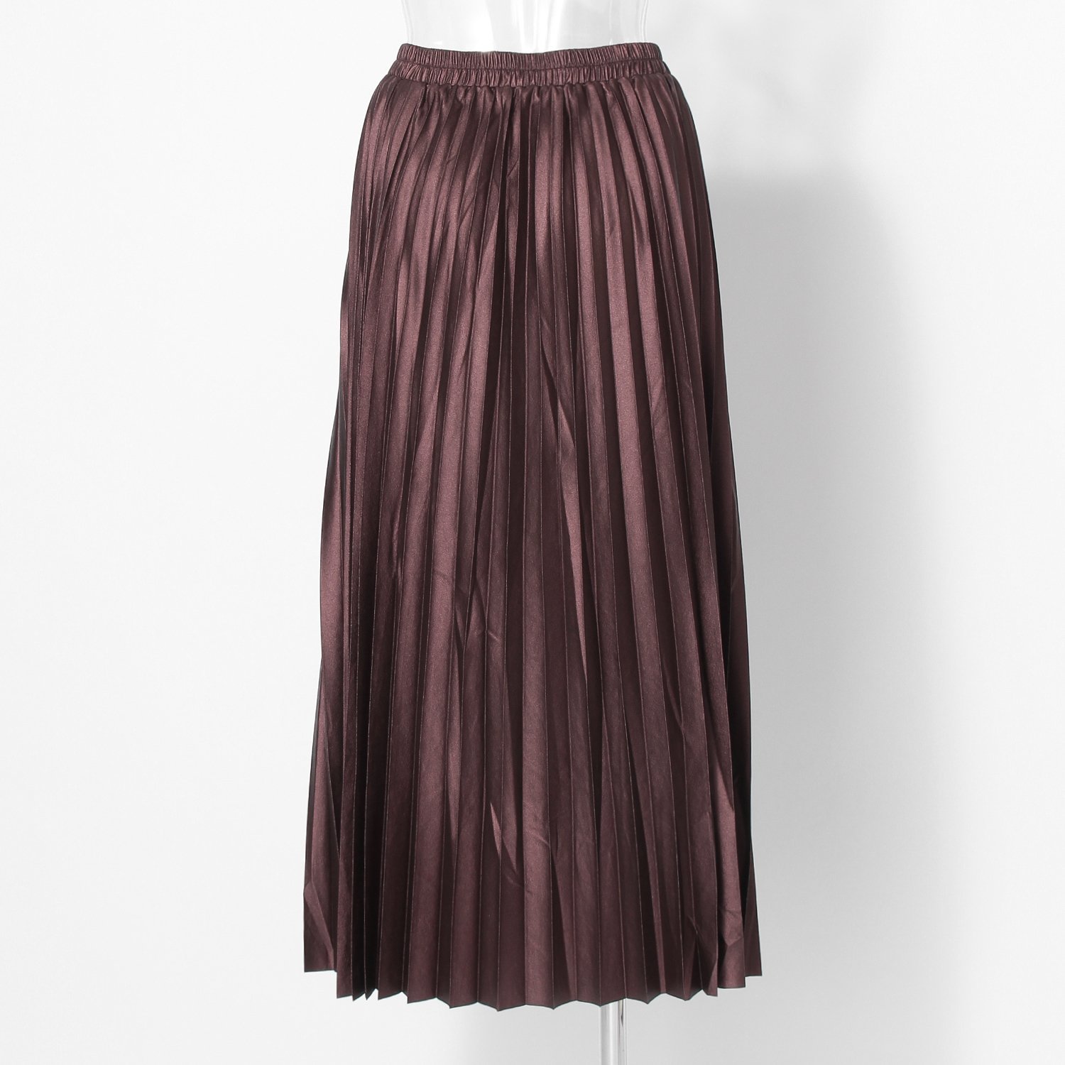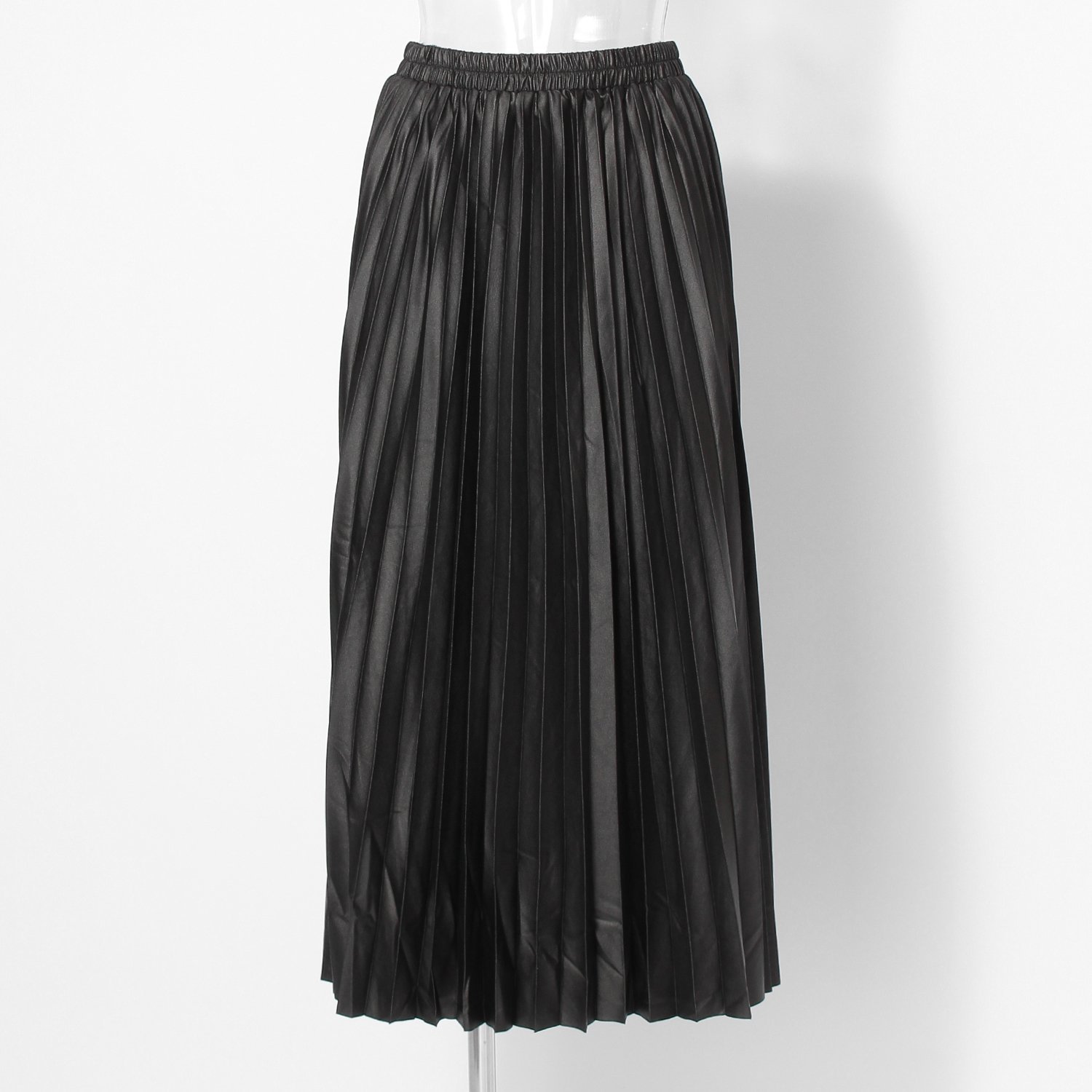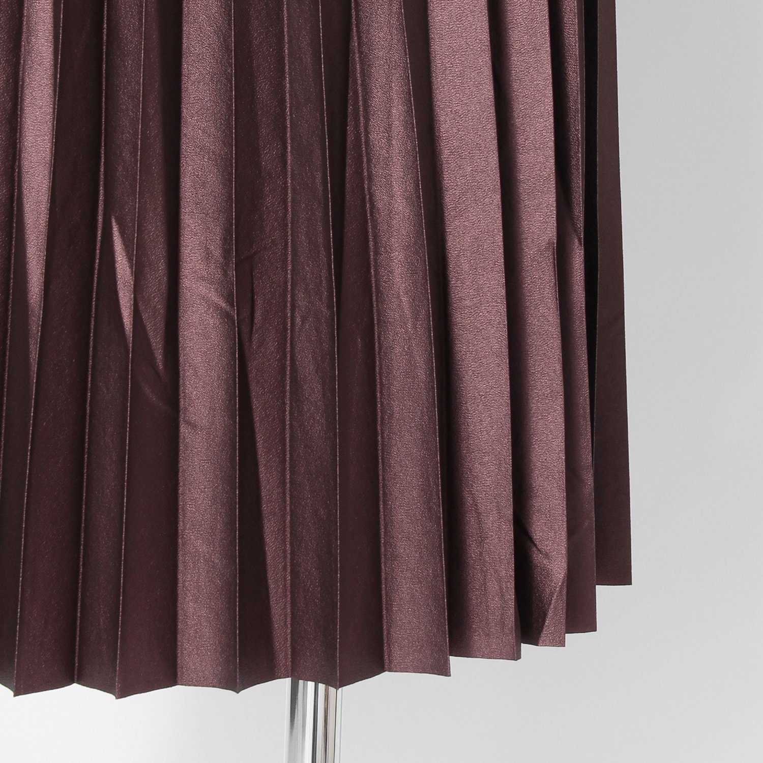 合繊素材を使用し、レザーのような質感を表現したスカート。奥行きのある独特な表情とプリーツ加工が相まって、視線を集めるデザイン性を確立しました。しっかりとした見ためながらも軽い仕様で、幅広いシーズンにはけるのも魅力のひとつです。