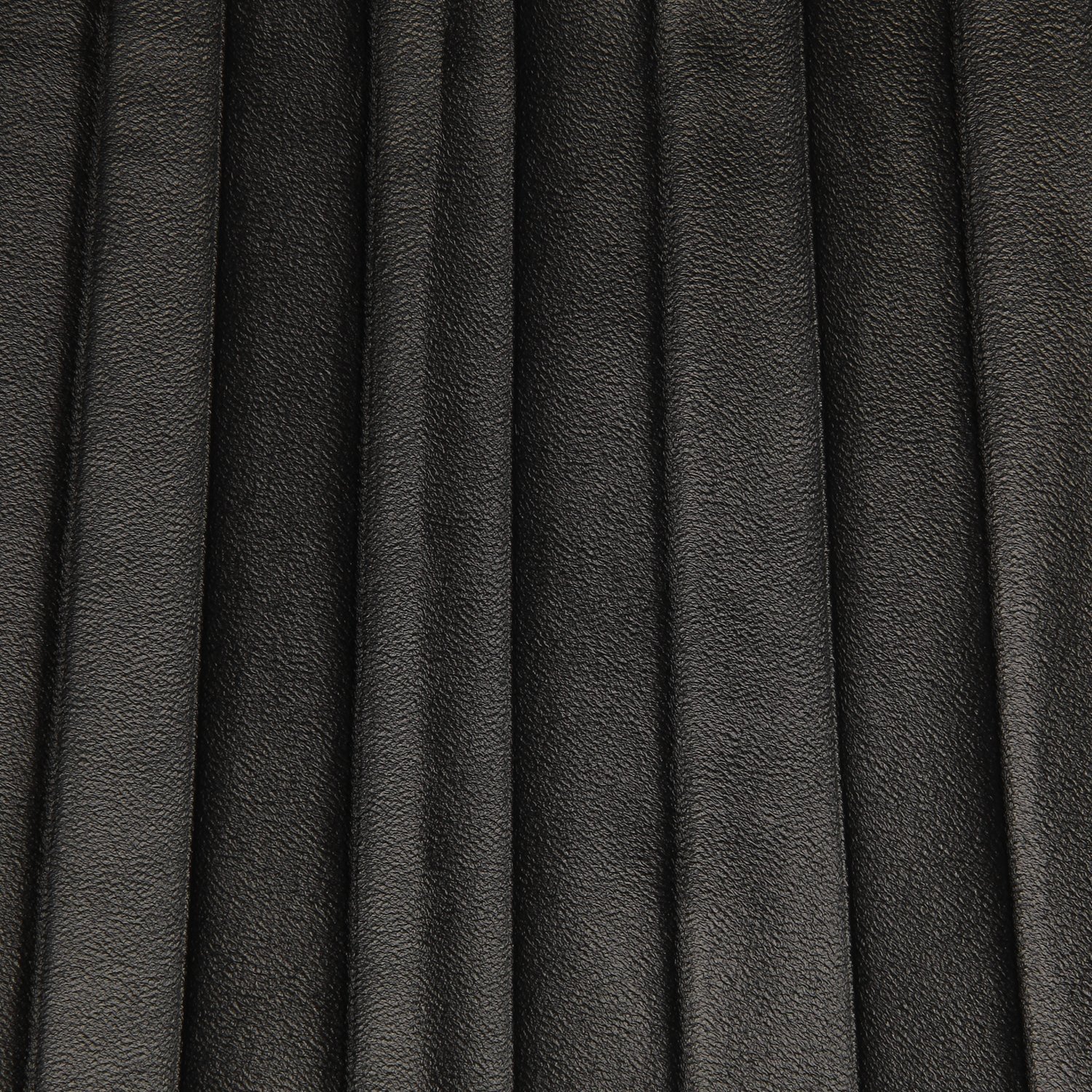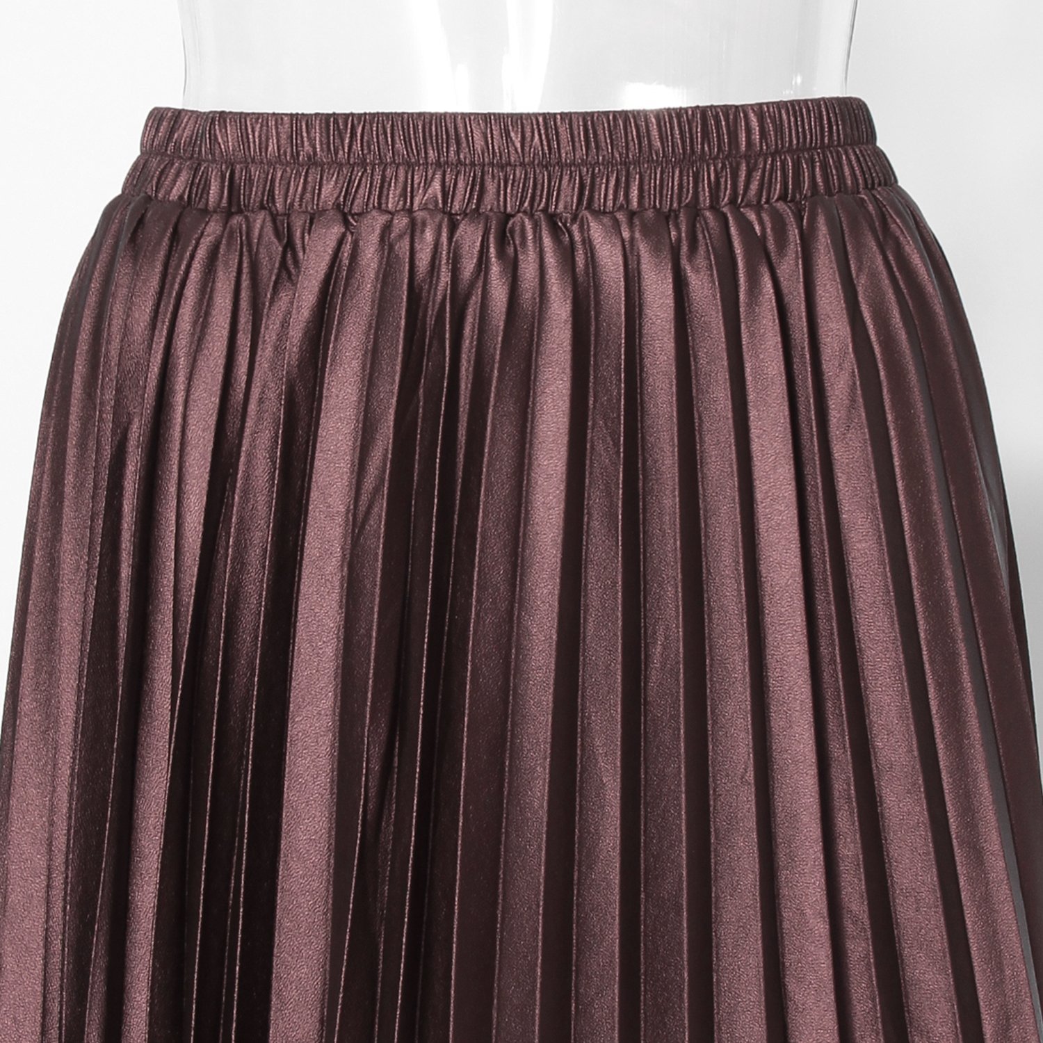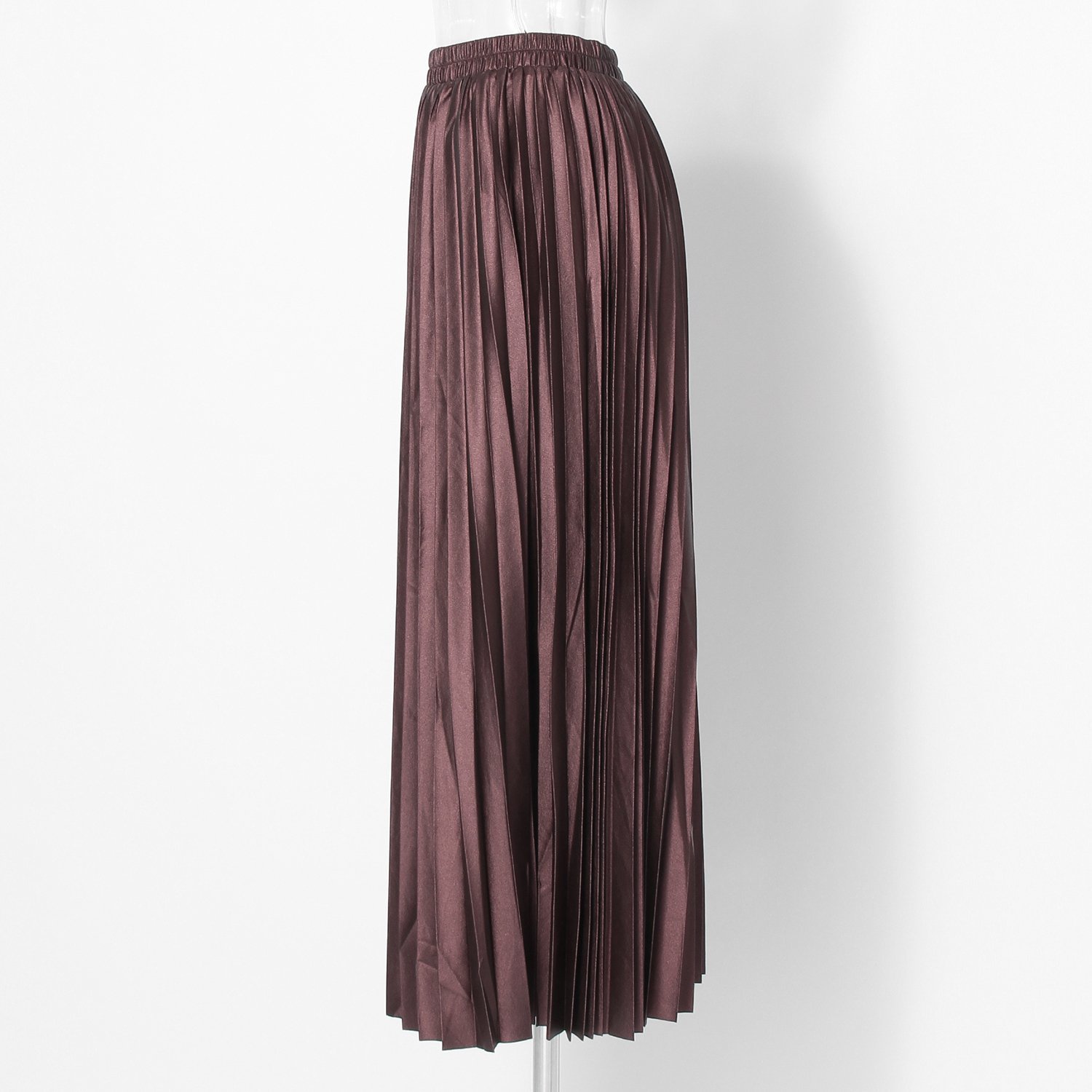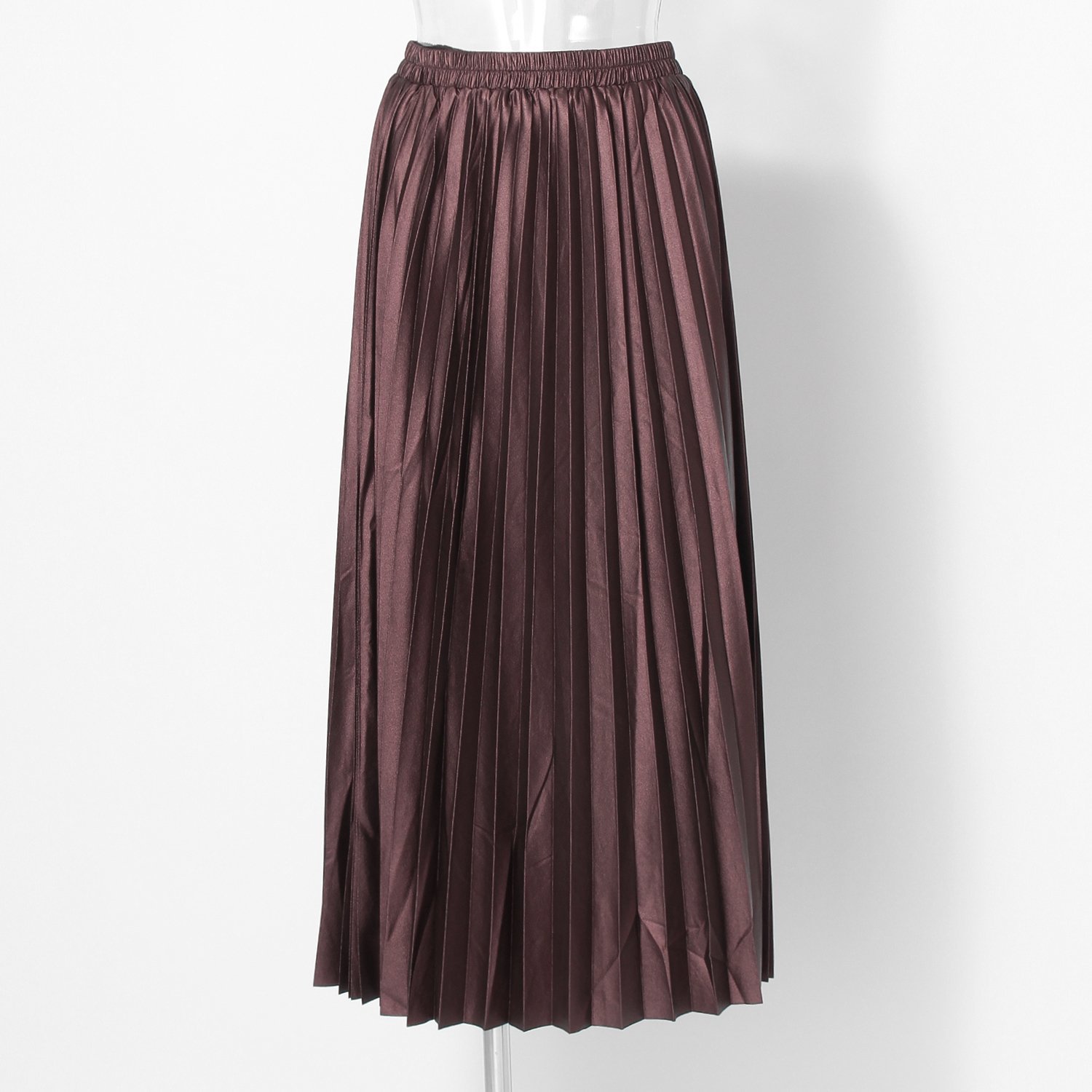 合繊素材を使用し、レザーのような質感を表現したスカート。奥行きのある独特な表情とプリーツ加工が相まって、視線を集めるデザイン性を確立しました。しっかりとした見ためながらも軽い仕様で、幅広いシーズンにはけるのも魅力のひとつです。