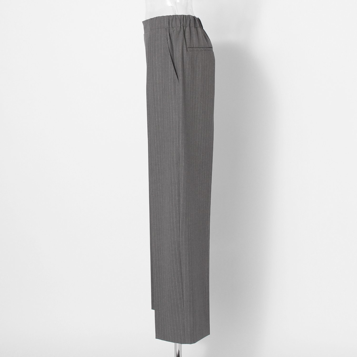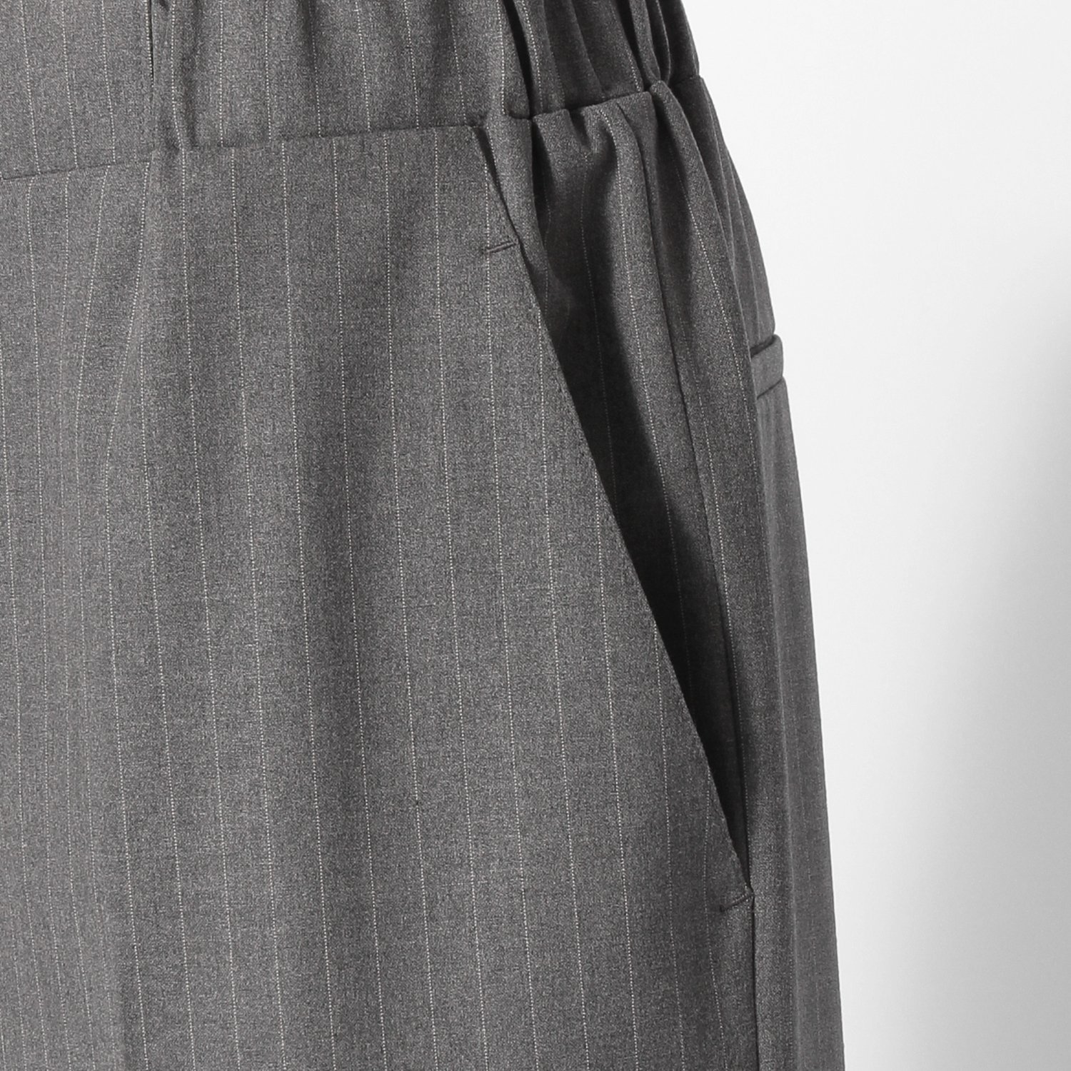 細めのストライプでスマートな佇まいを叶えるパンツ。中央には端正なセンタープレスが走り、きっちり見えする上品なデザインになりました。ウエストにはドローコードを備えているため、ベルト無しでもはきこなせるイージー仕様。同シリーズのジャケットとのセットアップはもちろん、トレーナーと合わせてマニッシュに着こなすのもおすすめです。
