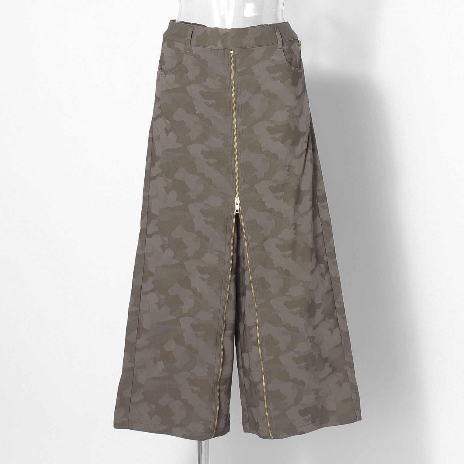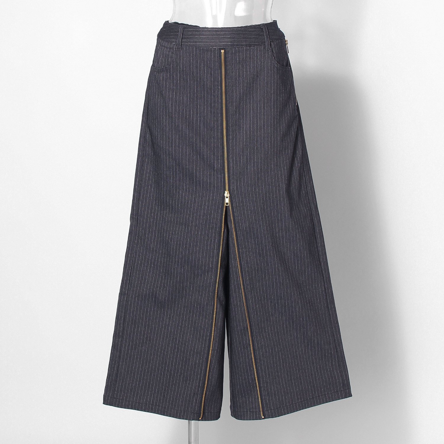 2WAYスタイルでさまざまな表情をお楽しみいただけるパンツ。前立てのファスナーを上げればパンツ、下げればスカートのようにはきこなせる汎用性を持たせました。合わせ方次第できれいめにもカジュアルにもマッチし、ワードローブに備えておくとコーディネートの幅が広がります。
