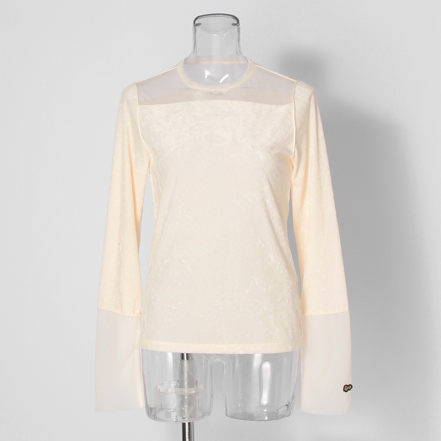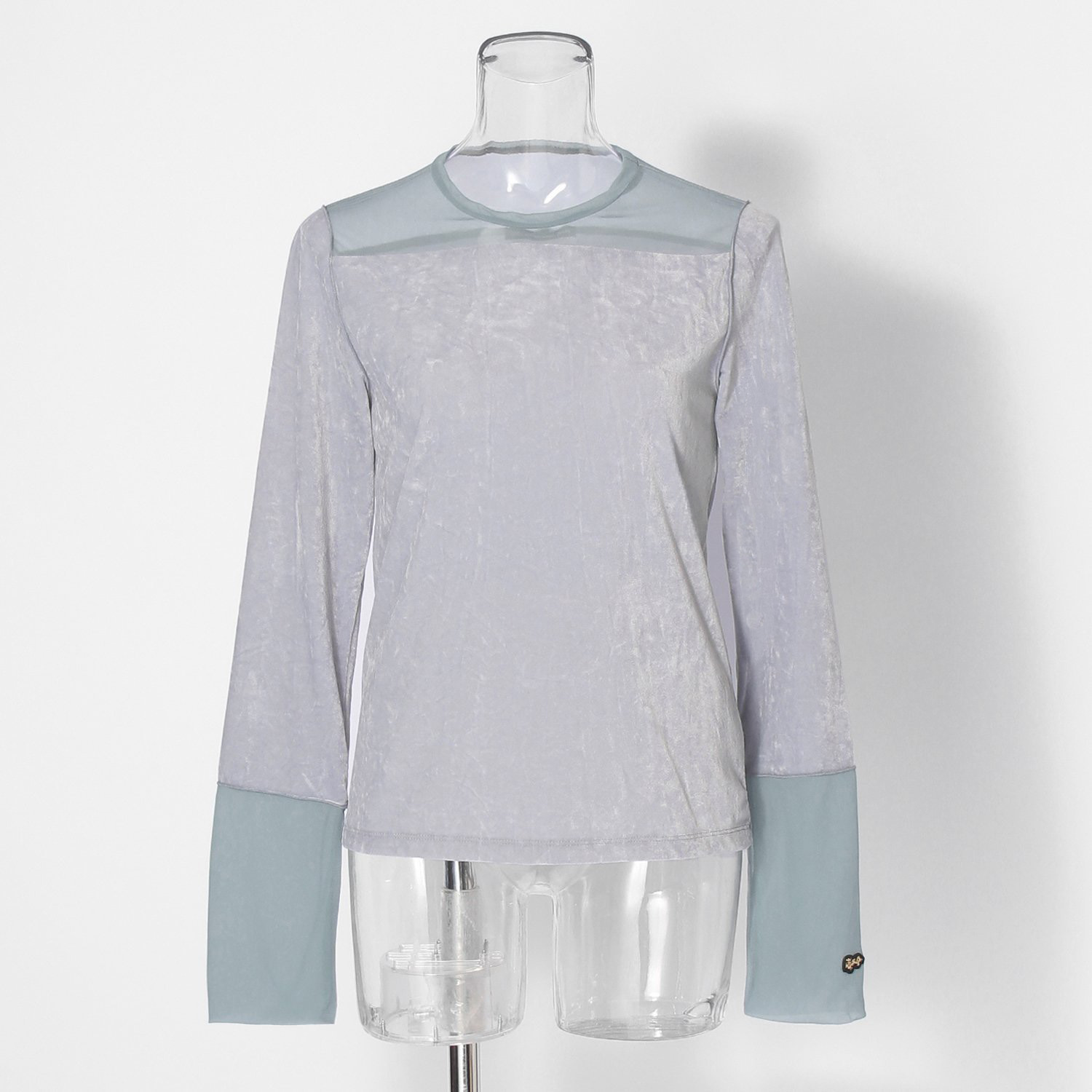 柔らかさと軽さを兼ね備えたインナーTシャツ。クラッシュワッシャー加工を施したベロア生地を使用し、新鮮な表情を見せてくれる1着です。袖にはメッシュ素材を切り替えで使用し、通気性だけでなくデザイン性も追求。袖口がバイカラーになっているのも見逃せないポイントです。オリジナルのドラゴンワッペンがアクセントになっています。
