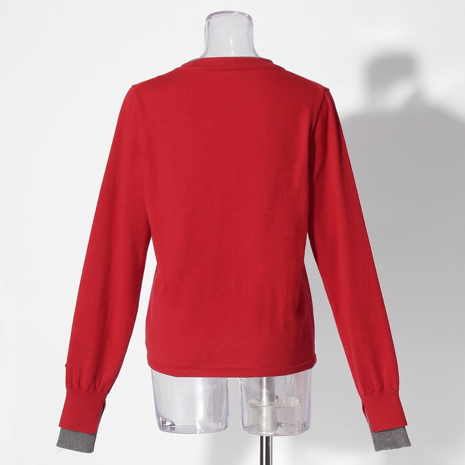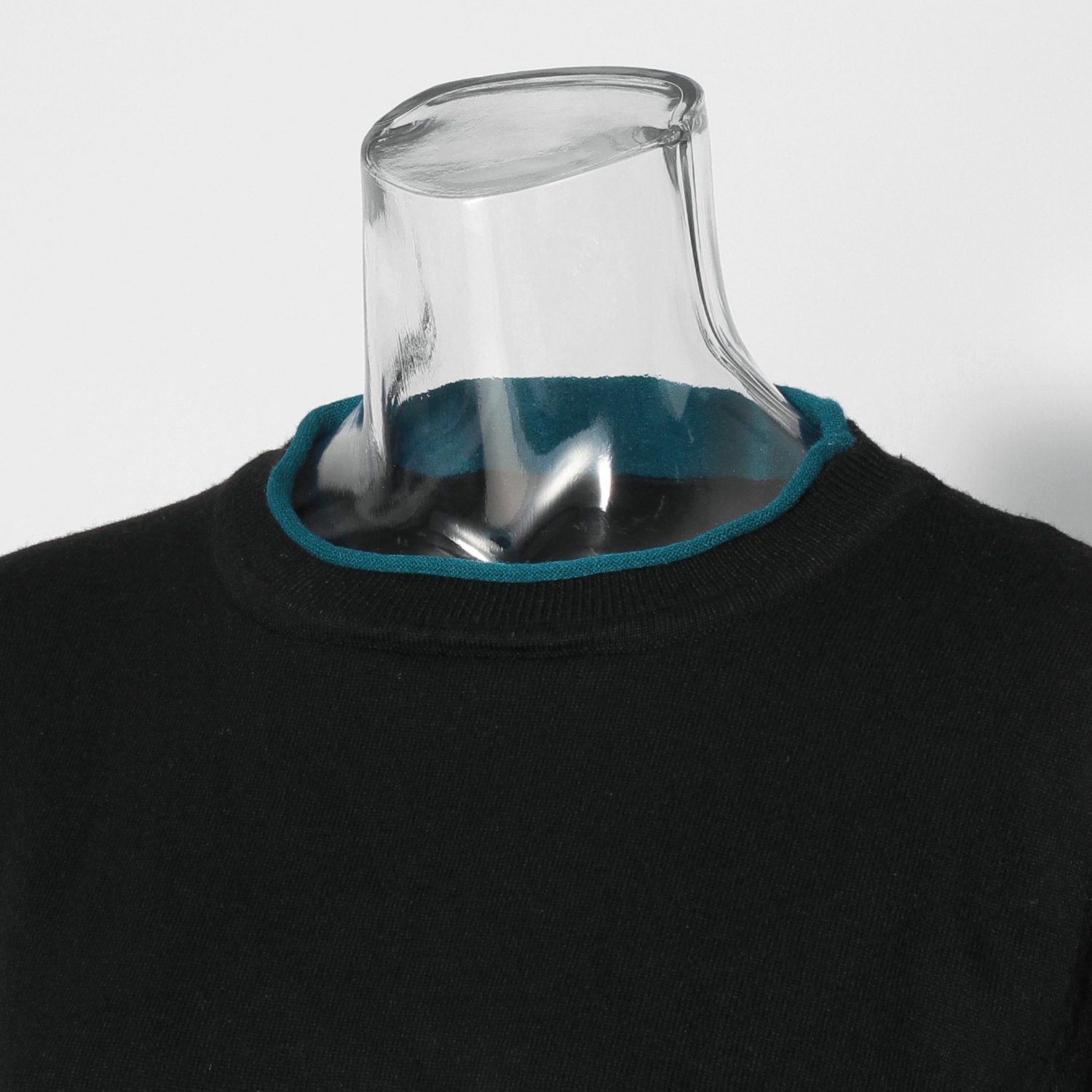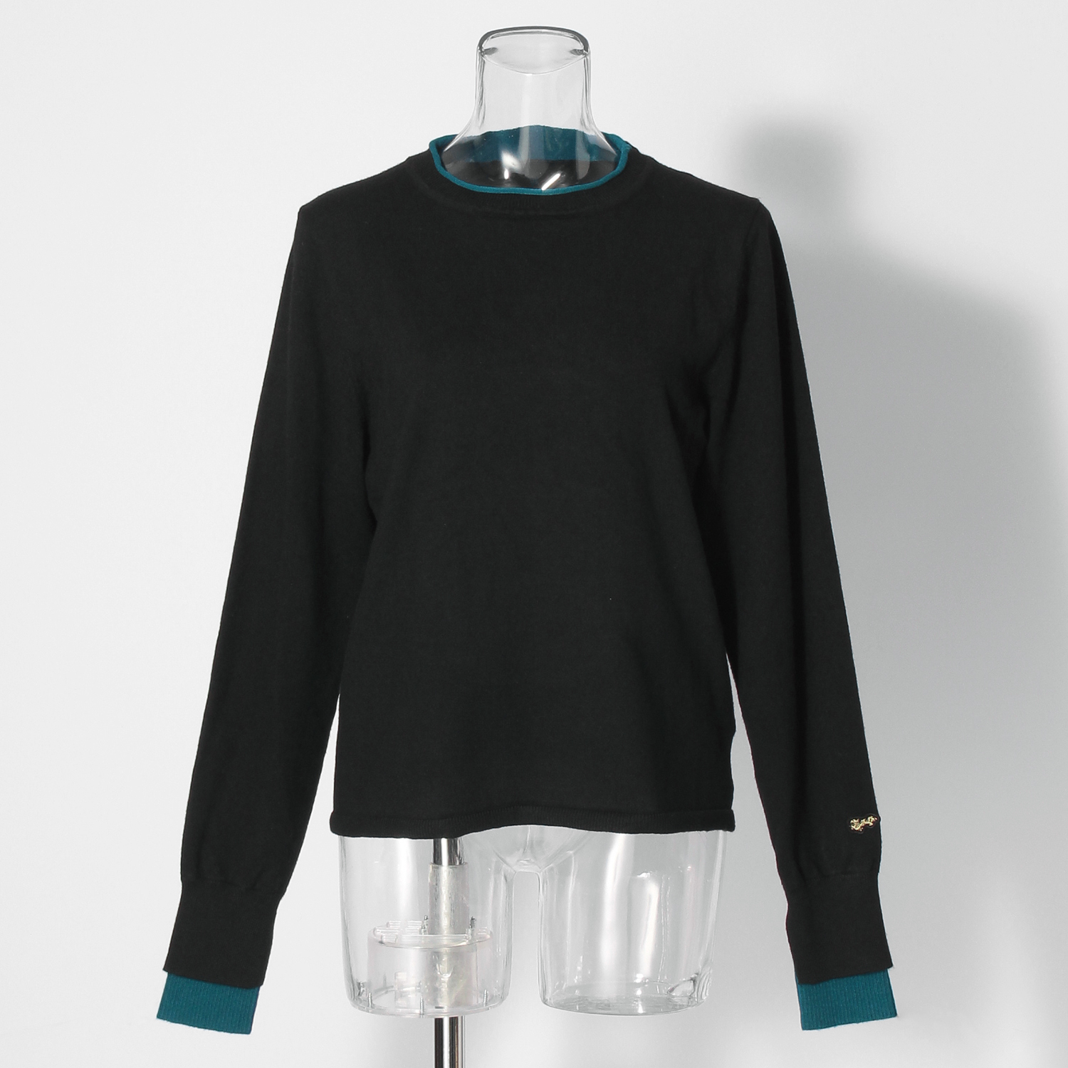 さりげない個性が光るニットプルオーバー。襟ぐりと袖口に配色をあしらったバイカラーデザインが魅力です。生地にはウールを混紡した素材を採用し、暖かく、ちくちくしない滑らかな肌当たりを実現。単品ではもちろん、インナーとしても活躍してくれます。