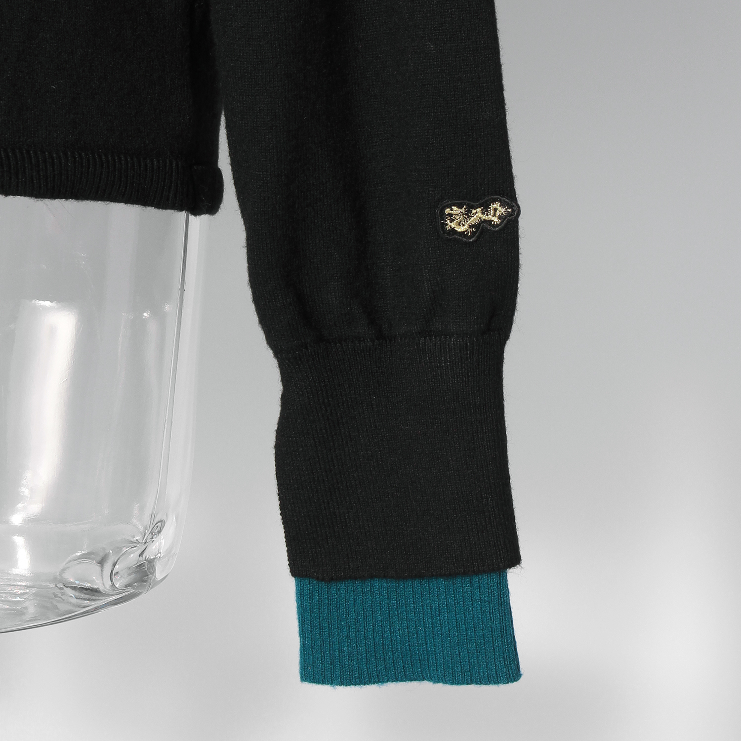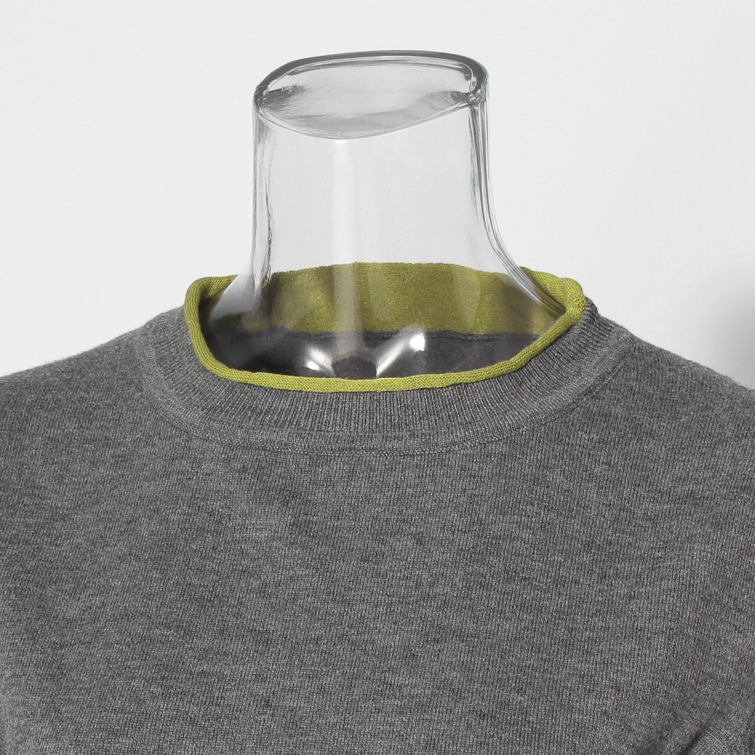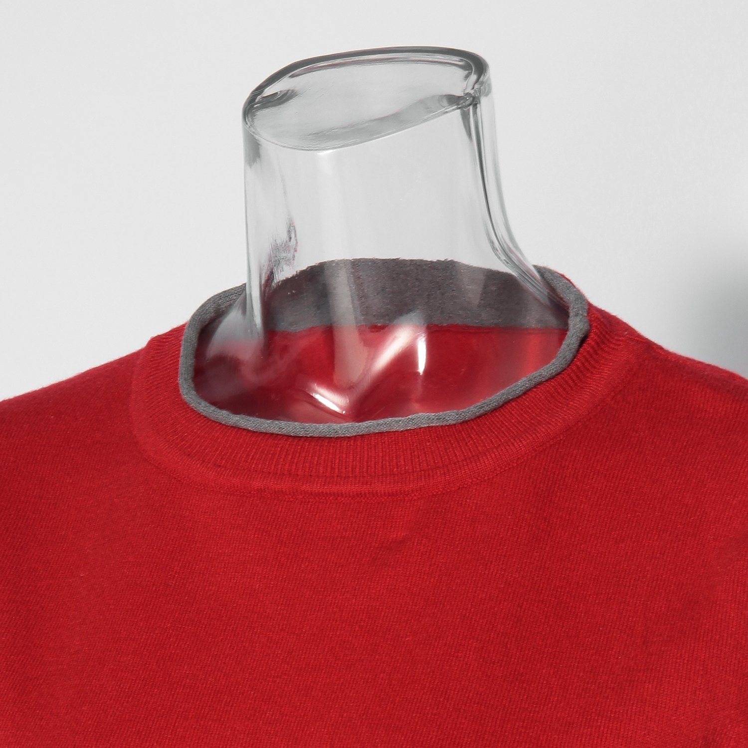 さりげない個性が光るニットプルオーバー。襟ぐりと袖口に配色をあしらったバイカラーデザインが魅力です。生地にはウールを混紡した素材を採用し、暖かく、ちくちくしない滑らかな肌当たりを実現。単品ではもちろん、インナーとしても活躍してくれます。