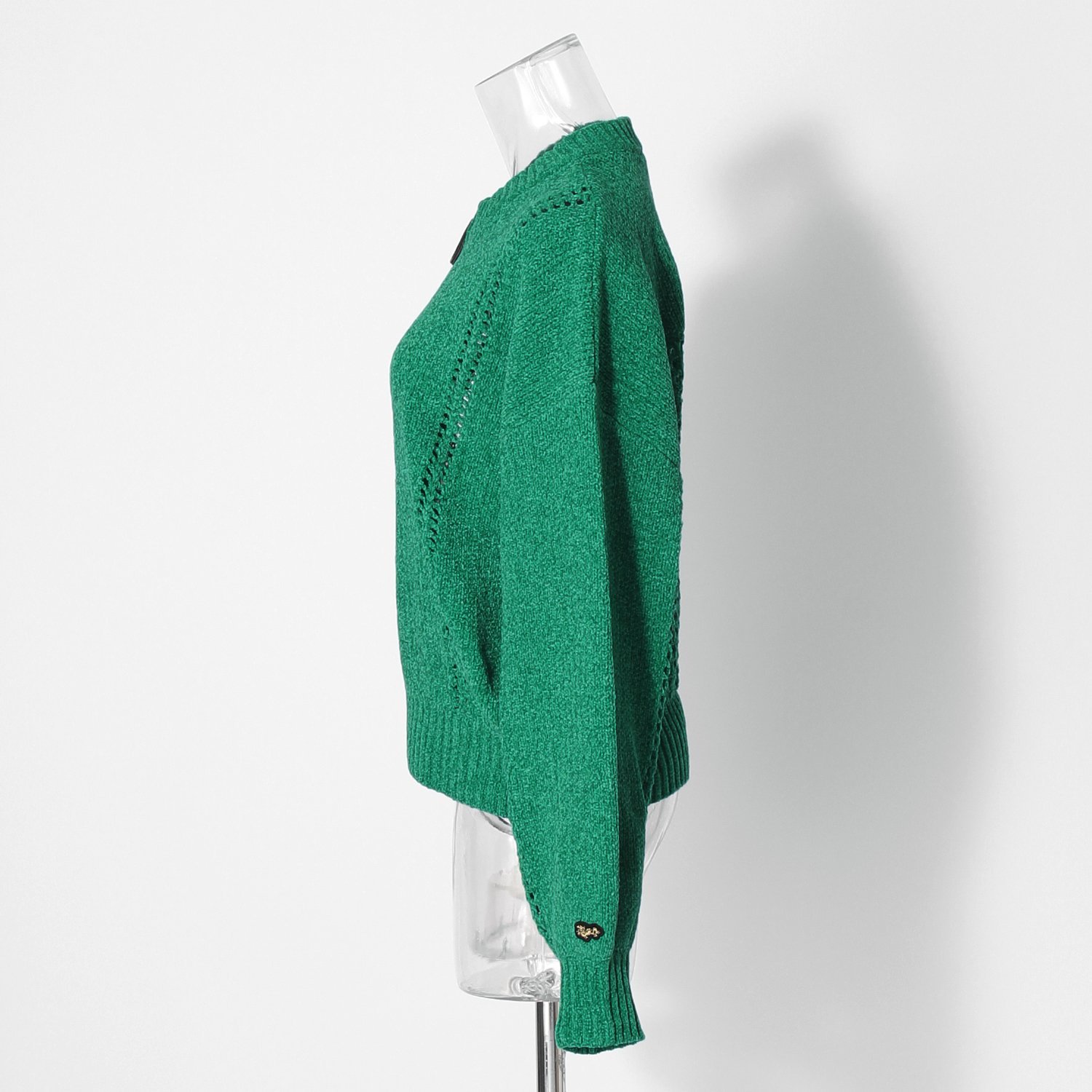 ぬくもり感たっぷりに仕上げたニットパーカー。ほど良い光沢感とあたたかみを持つ7ゲージのモール糸を使用し、シーズンムード漂うデザインに仕上げました。部分的にあしらわれたメッシュ編みもアクセント。朝晩の寒暖差が激しい時期や季節の変わり目にも重宝する1着です。
