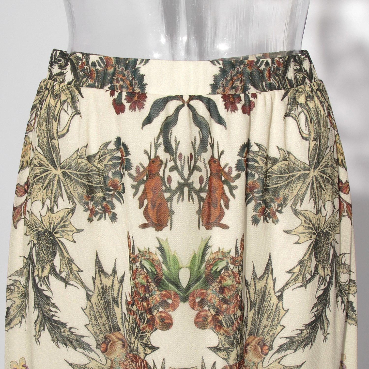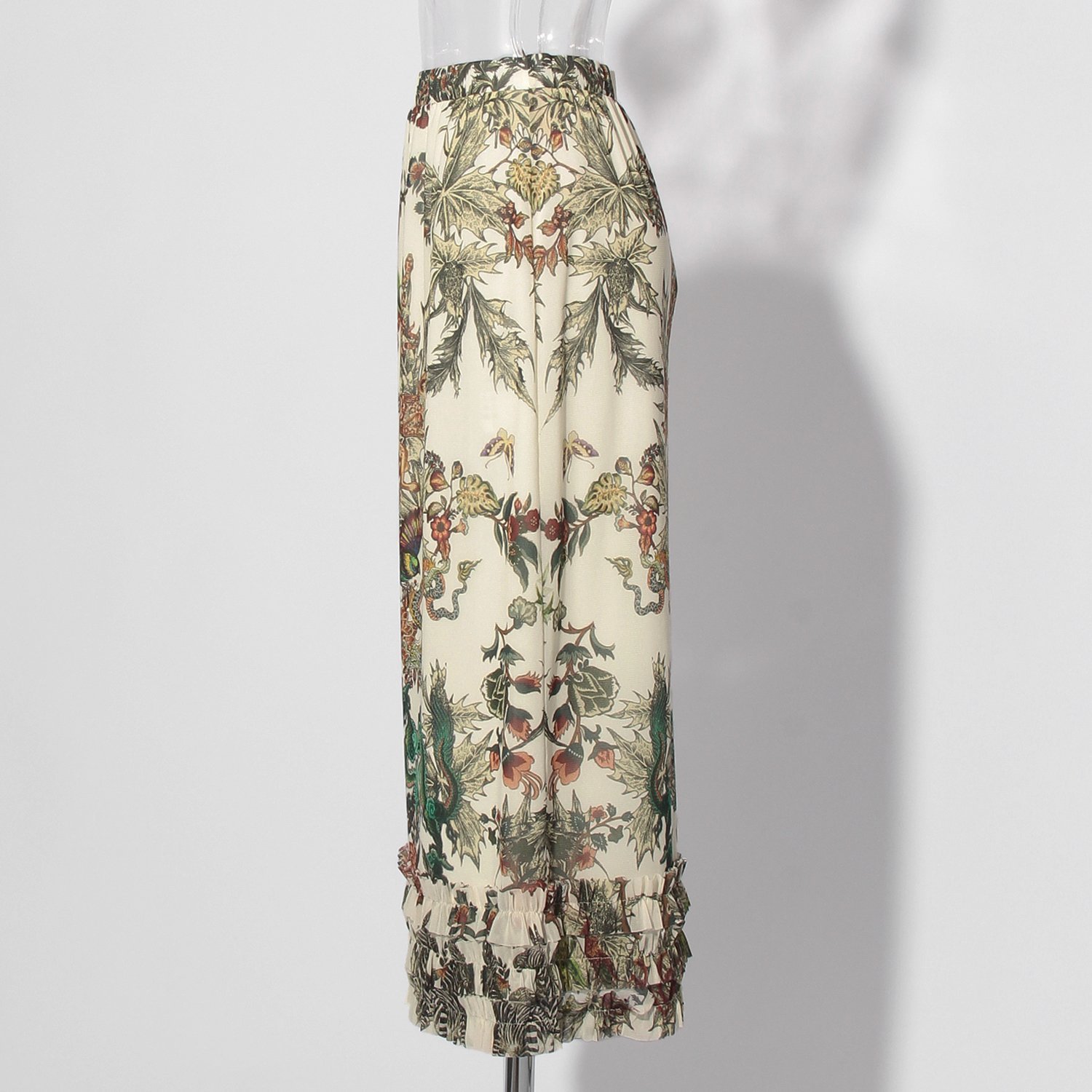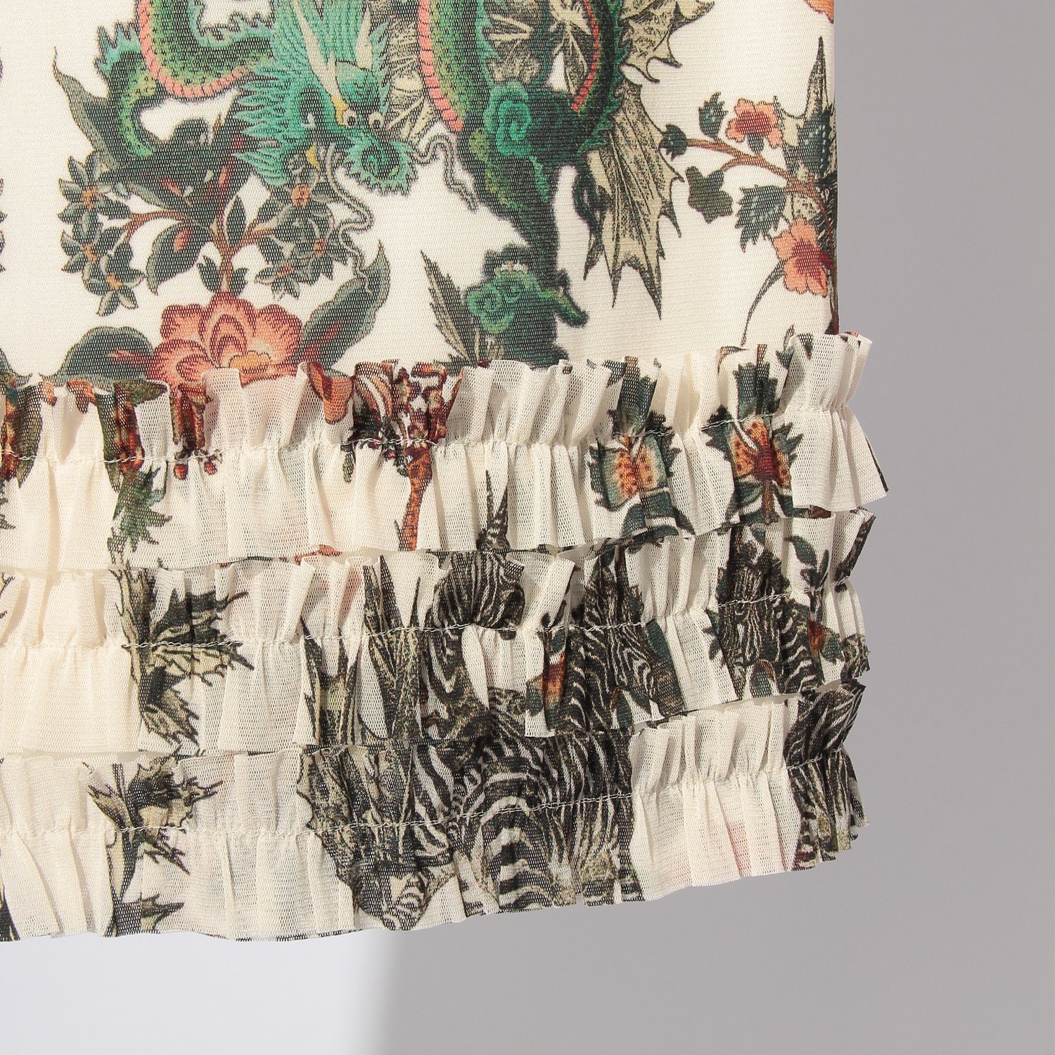 干支を祝うメッセージを込めた、動物たちのモチーフが華やかに彩るスカート。色鮮やかなゾディアックプリントがスタイリングに存在感をプラス。裾には同プリントでフリルを重ね、トレンド感のあるデザインに仕上げました。同シリーズのブラウスと合わせて、セットアップでの着こなしもおすすめです。
