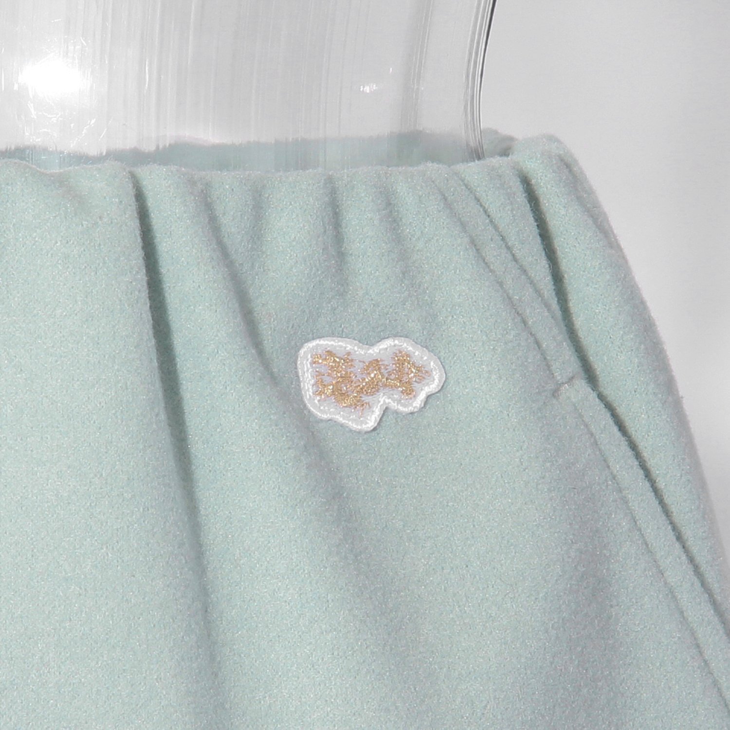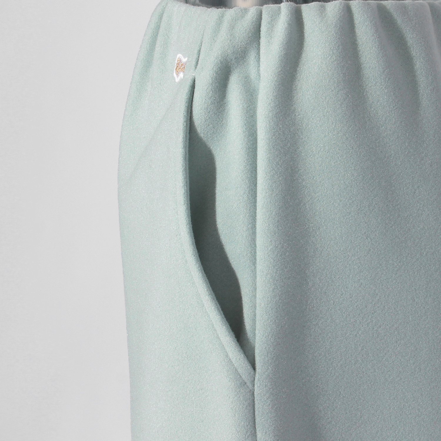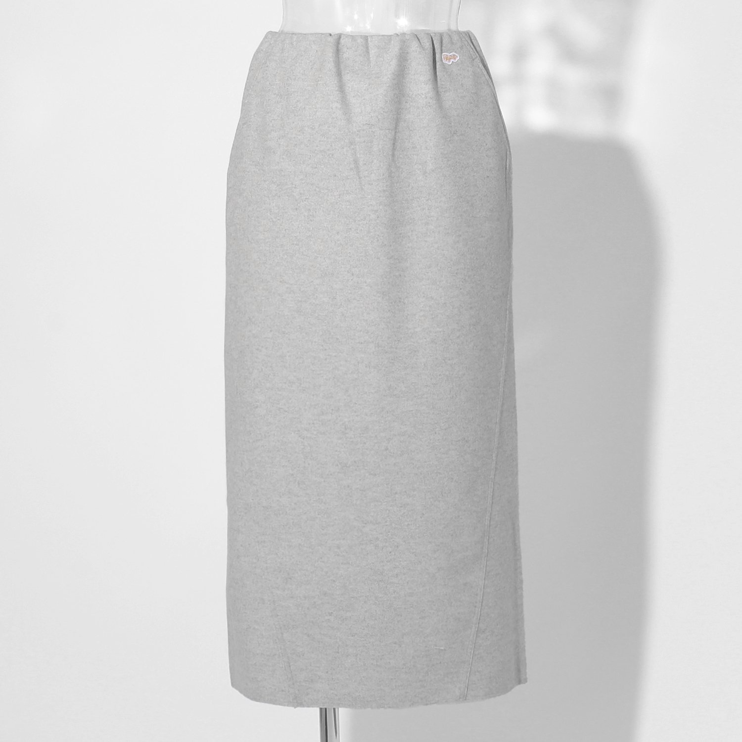 ウールライクな優しい表情が特徴のスカート。ほんのり起毛感のある柔らかい生地で、季節感あふれる佇まいに仕上げました。タイトなシルエットとサイドに入った斜めの切り替えで、レッグラインが美しく見えるのも嬉しいポイント。軽くシワになりにくいため、デイリーユースにも好適です。左ポケットにオリジナルのミニドラゴンワッペン付き。