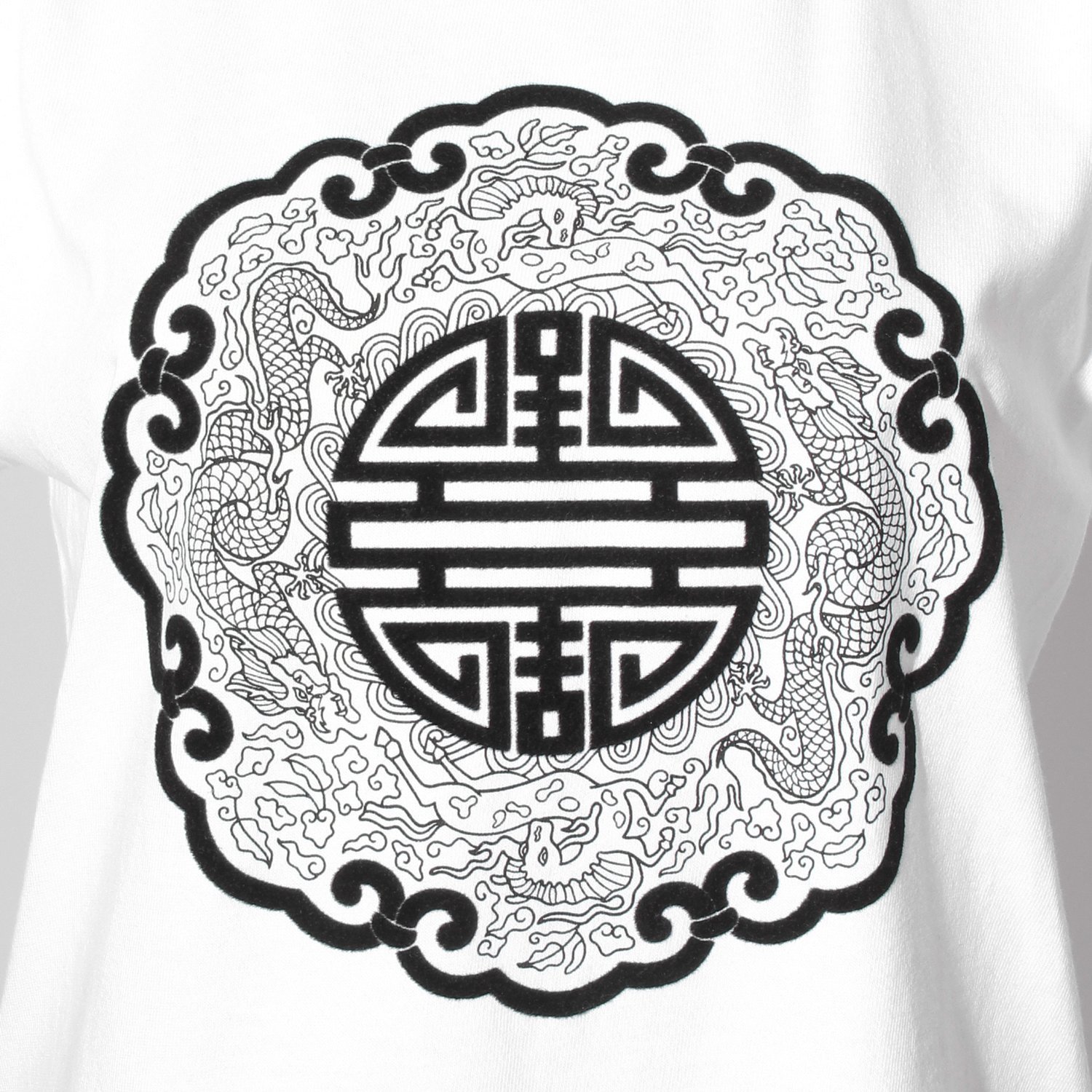 フロッキー仕立ての立体的な表情が目を引くカットソー。干支の「馬」と「ドラゴン」をマンダラ風に落としこんだシックなプリントで、大人らしい表情に仕上げました。シンプルなボトムスとミニマルに合わせても着映えし、スタイリングしやすいのも嬉しいポイントです。