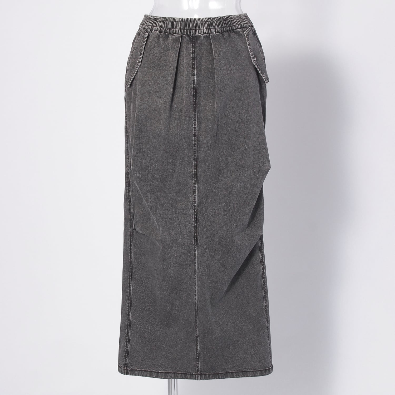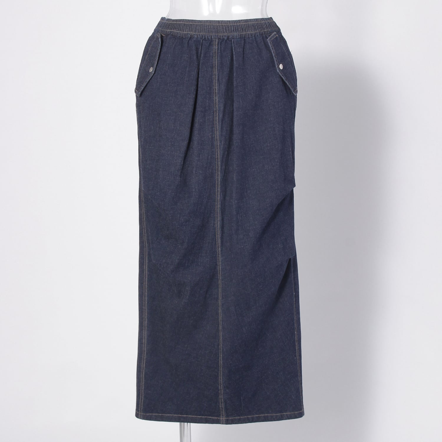 奥行きのあるタックデザインが特徴のタイトデニムスカート。ライトオンスの生地を使用することで、凹凸の映える都会的なシルエットを実現しました。ストレッチ性があるため、タイトなスタイルでも着脱しやすいのが魅力。軽い仕様で着用時の負担も少なく、デイリーにはきたくなるアイテムです。