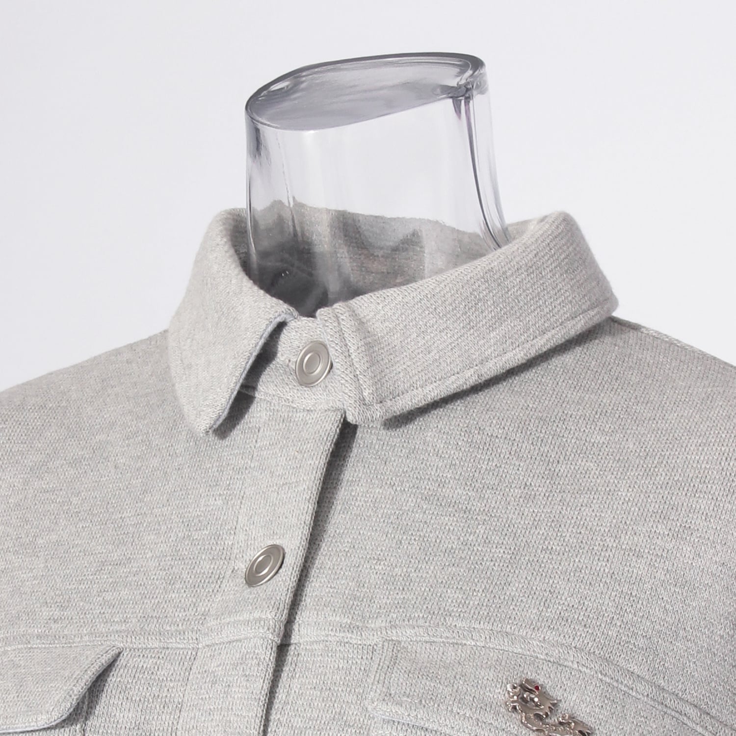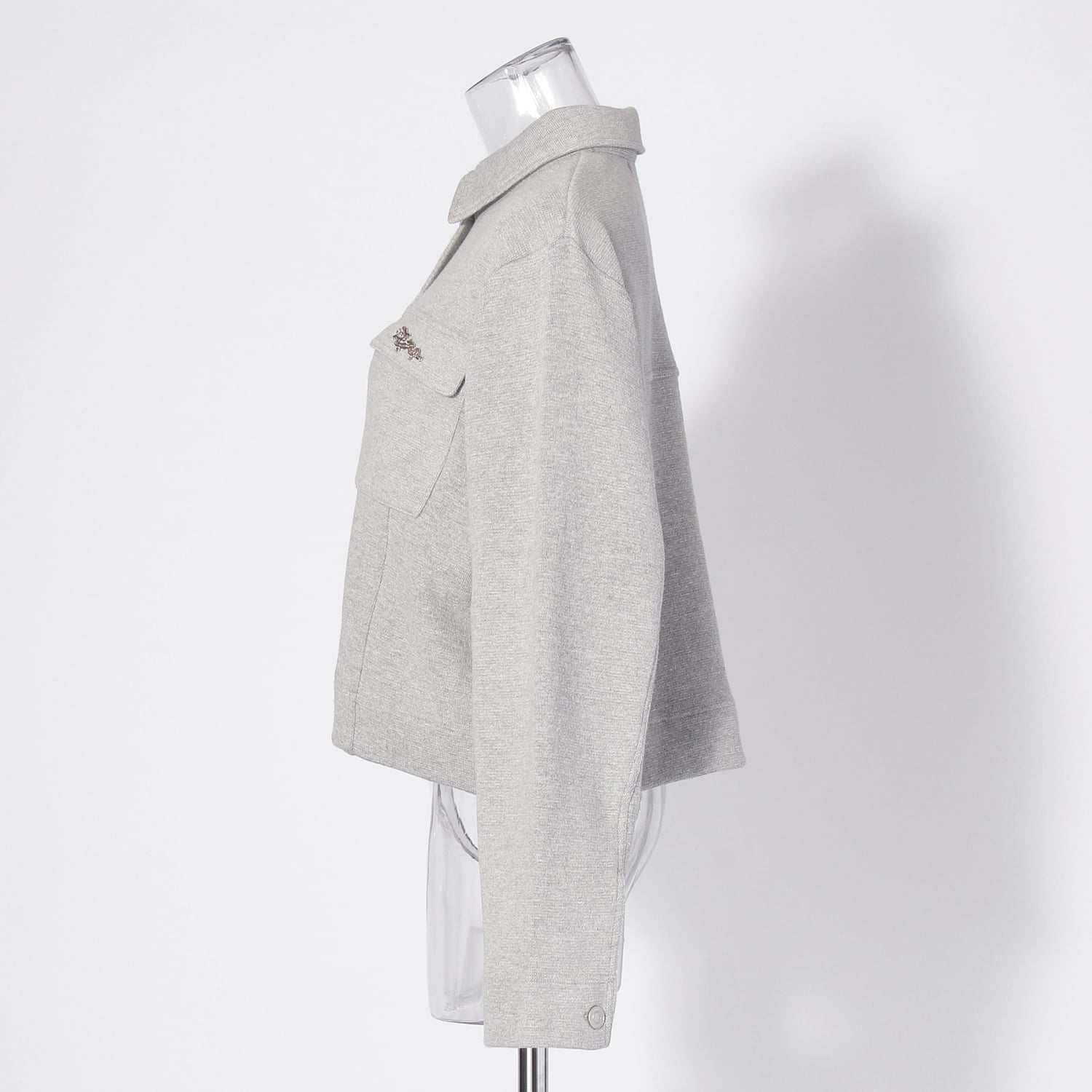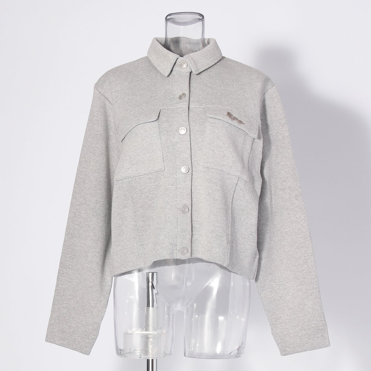ミラノリブで仕上げたニットアウター。綿100%の14G糸で細かく編み立てた上品な編み地で、ベーシックスタイルながらも特別感が漂います。左ポケットにはドラゴンのプレートが施され、アイコニックなアクセントをオン。かっちりとした素材で型崩れもしにくく、美しいシルエットを長くキープできます。ほど良い厚みで幅広い期間に活躍してくれるのも嬉しいポイントです。