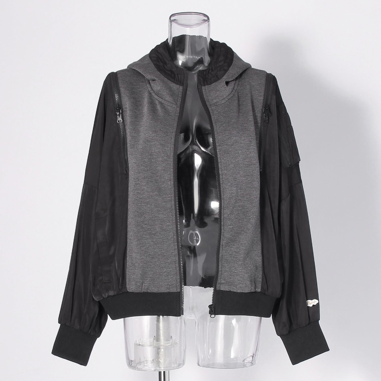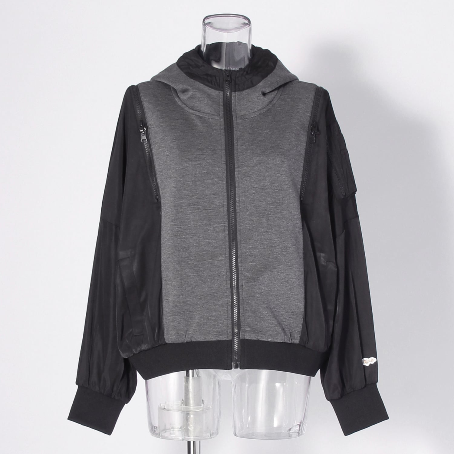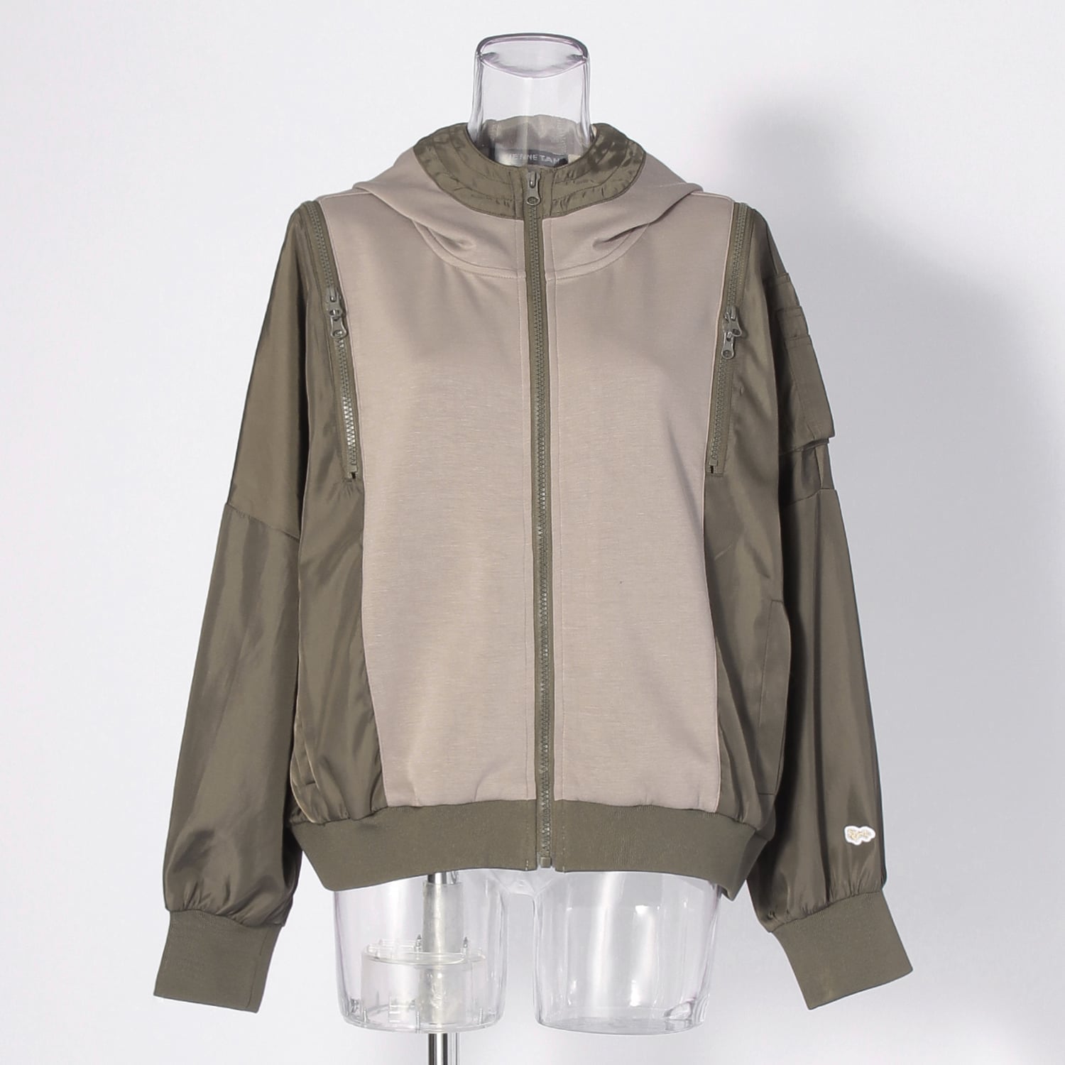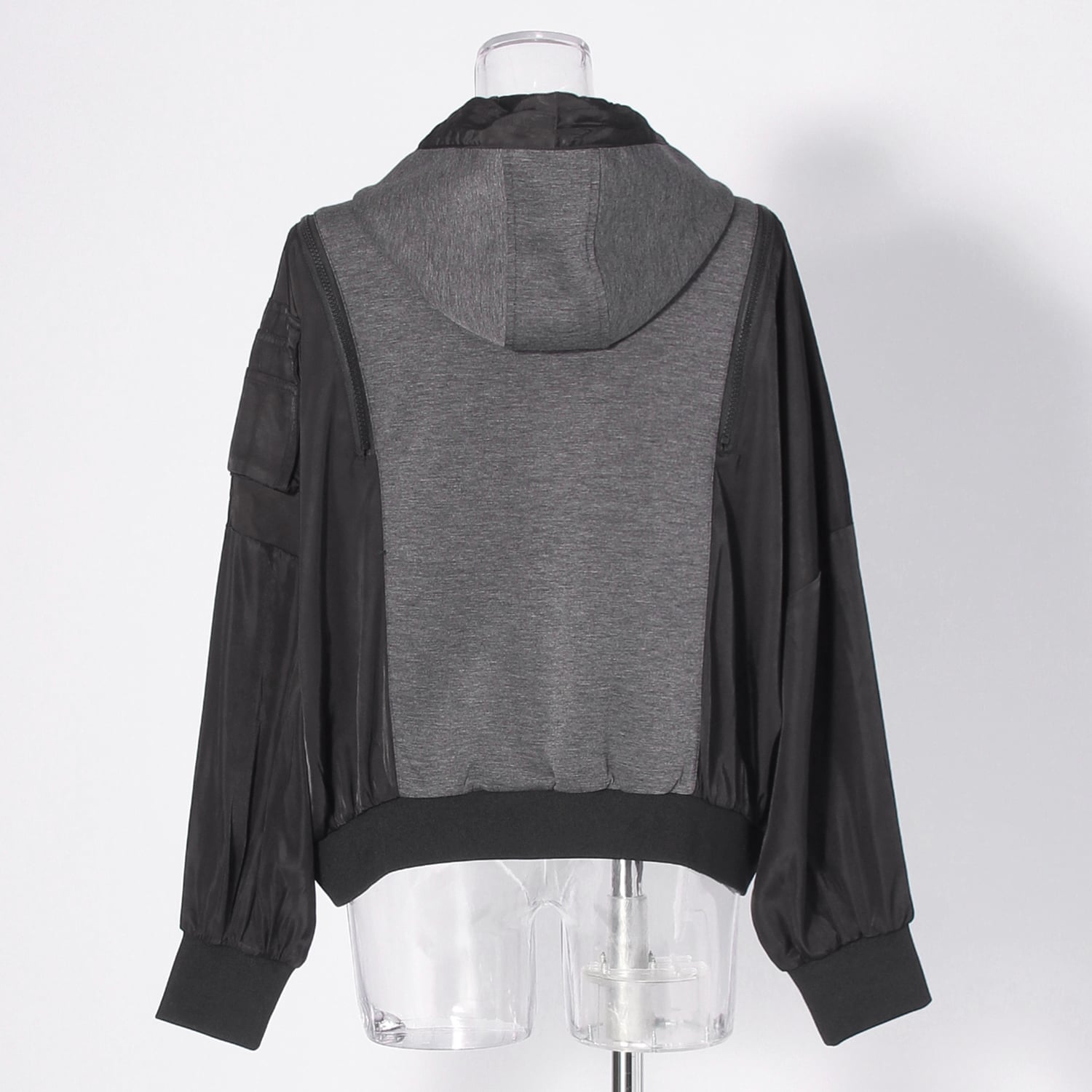 滑らかなポンチ素材とハリ感を抑えたナイロン素材をドッキングしたデザインブルゾン。ミリタリーベースのディテールに加えて、ファスナーを施すことで新鮮さのあるルックスに仕上げました。ファスナーの開閉によって着用時の印象を変えることもでき、スタイリングの幅を広げてくれます。