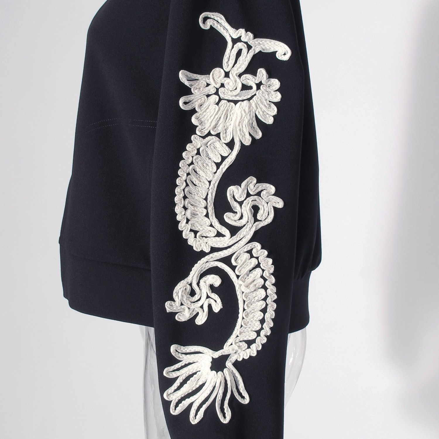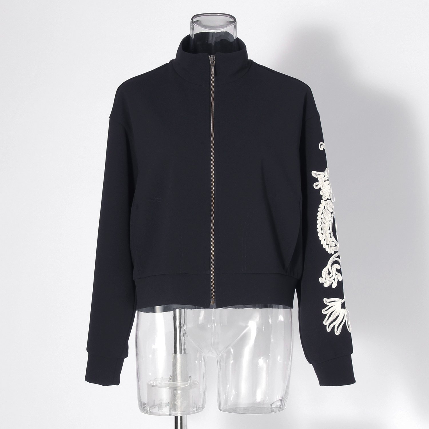 凹凸感のある上品なジャージ素材を使用したジップアップブルゾン。左袖にはチュールテープでドラゴンを刺繍し、華やかなアクセントを効かせました。スポーティーさとモード感を兼ね備えた、スタイリングの主役として活躍するデザインです。コンパクトな着丈なので、ワンピースとも相性良く決まります。