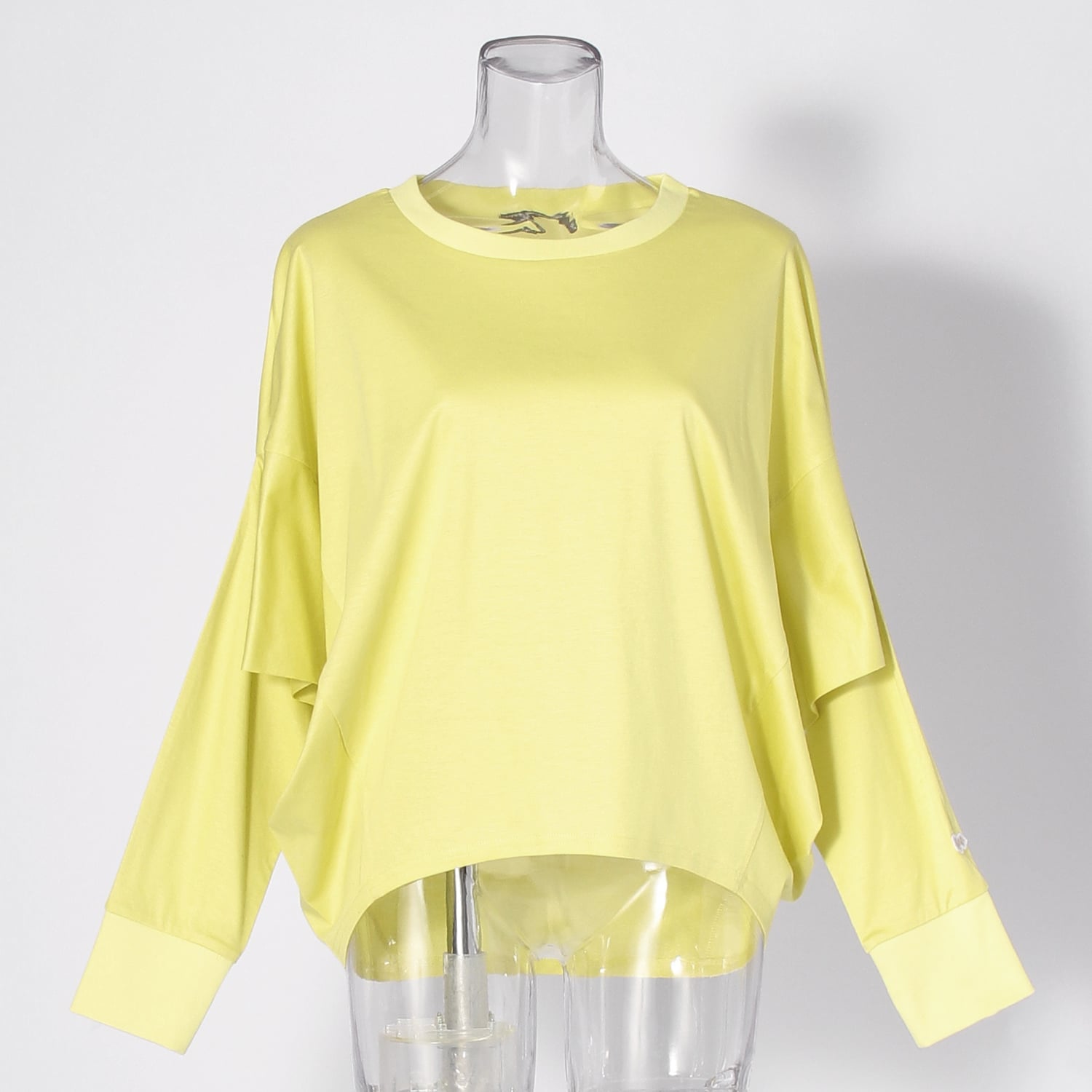 ハイゲージリヨセルスムース素材を使ったカットソー。しっとりとした風合いと滑らかな肌触りが特徴です。バンザイスリーブかつ抜け感のあるコクーンシルエットで、1枚でサマになるのも魅力的。接触冷感と紫外線防止機能を備え、実用性にもしっかりフォーカスしております。