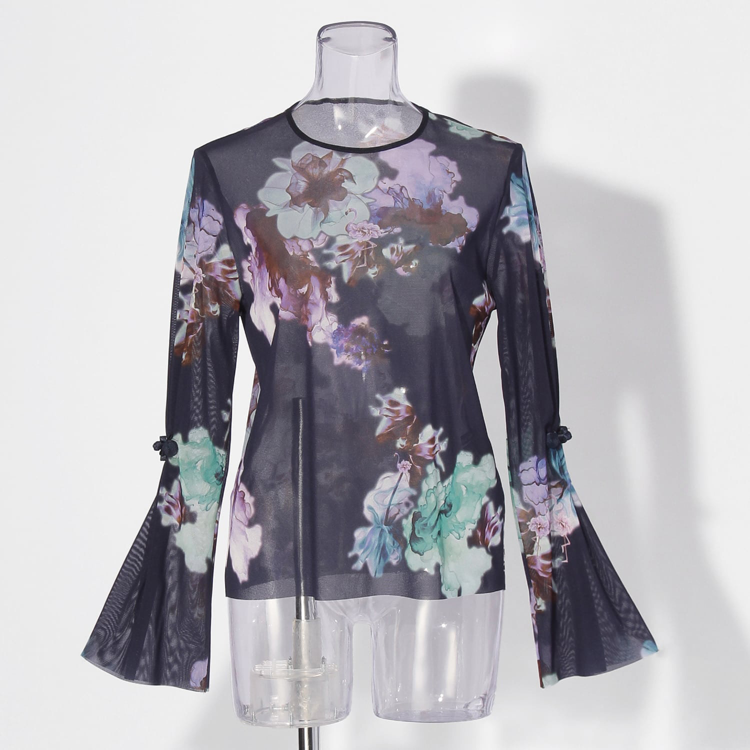 千紫万紅を花とフラミンゴで表現したプリントのブラウス。チャイナボタンがポイントのフレアスリーブは、ボタンの掛け外しにより2WAYでご着用いただけます。ほど良いサイズ感の身頃で、カジュアルにもエレガンスにもコーディネートが可能です。