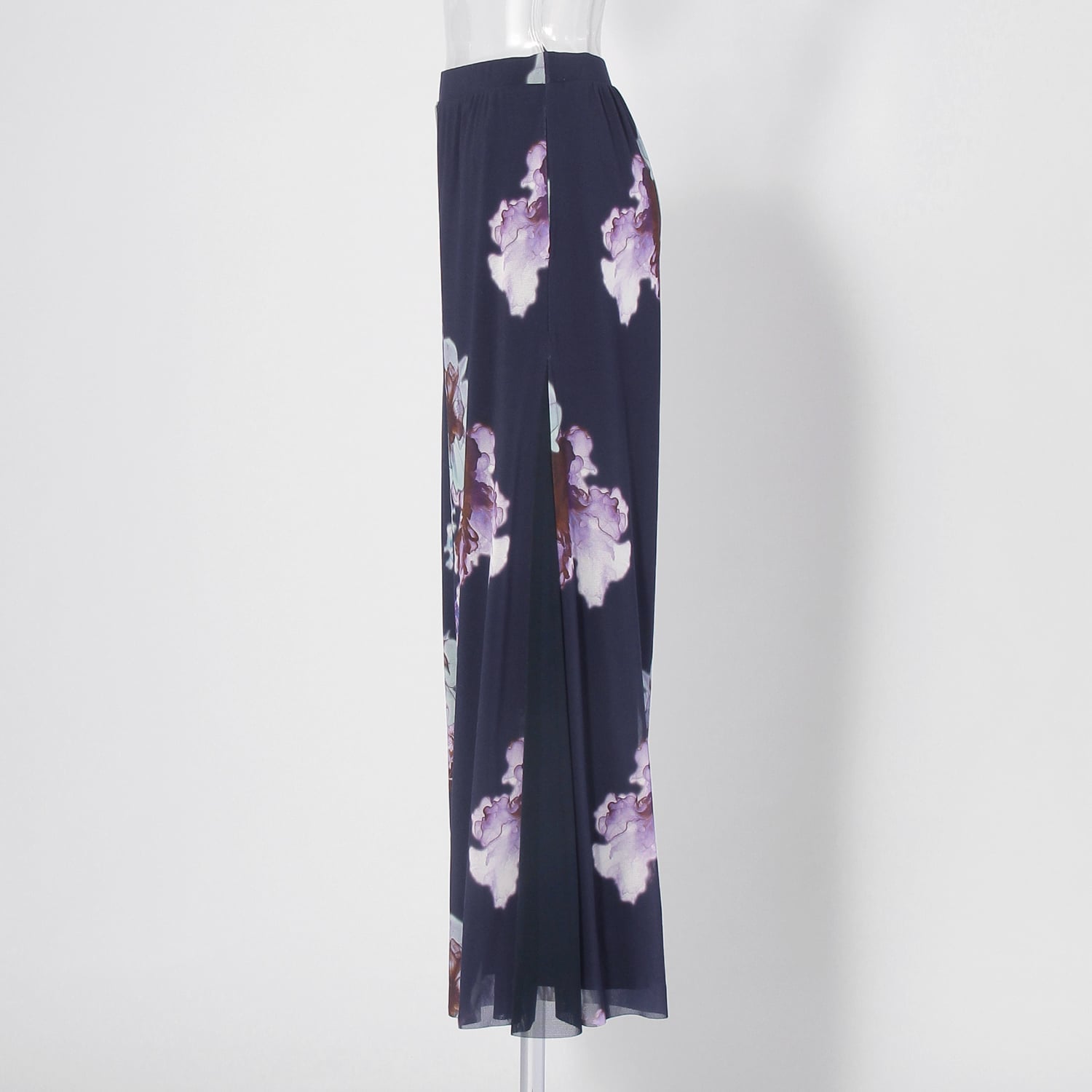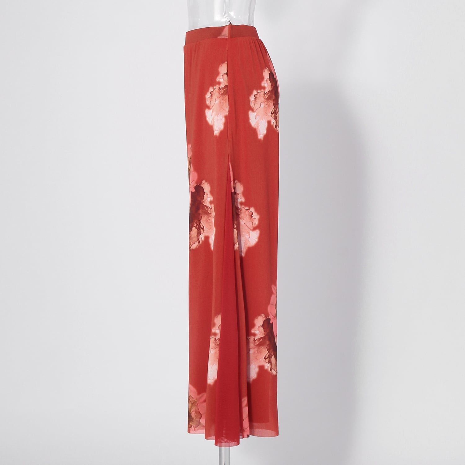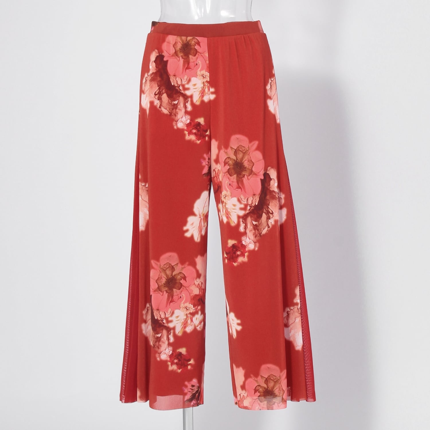 千紫万紅をテーマにした、鮮やかな花々とフラミンゴのオリジナルプリントが目を引くパンツ。両サイドは無地で切り替えを施し、VIVIENNE TAMらしいエレガントな見た目に仕上げました。裾に向けて自然に広がるシルエットが、装いに洗練された印象を与えます。素材にはさらりとした肌触りのポリエステル100%を使用しており、はき心地も快適です。