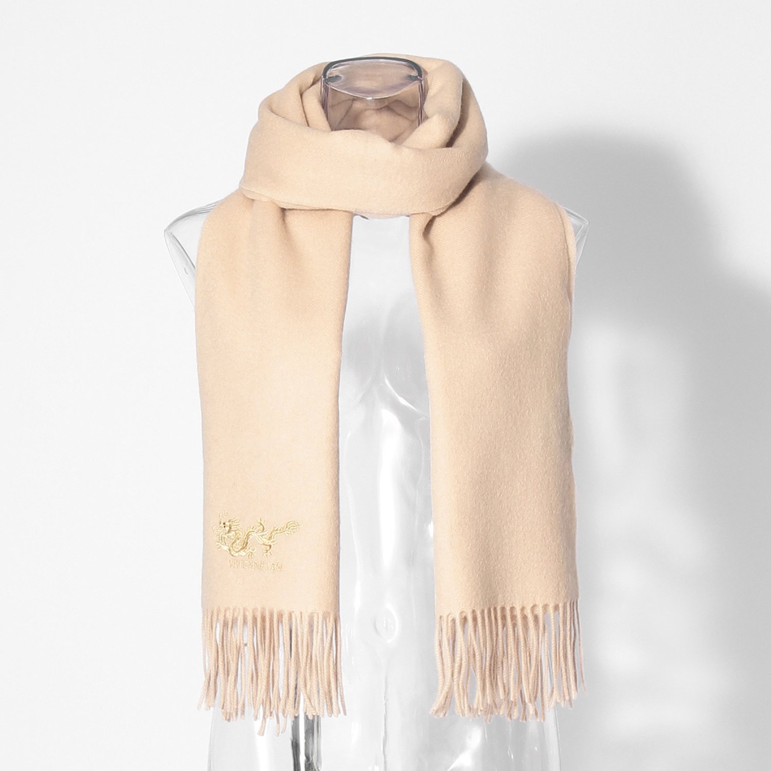 柔らかな生地で首元を包みこむストール。メタリックな輝きをもたらす糸でドラゴンを刺繍し、ラグジュアリーなアクセントをプラスしました。コーディネートに取り入れやすいシンプルなデザインなので、オンオフを問わずお使いいただけます。