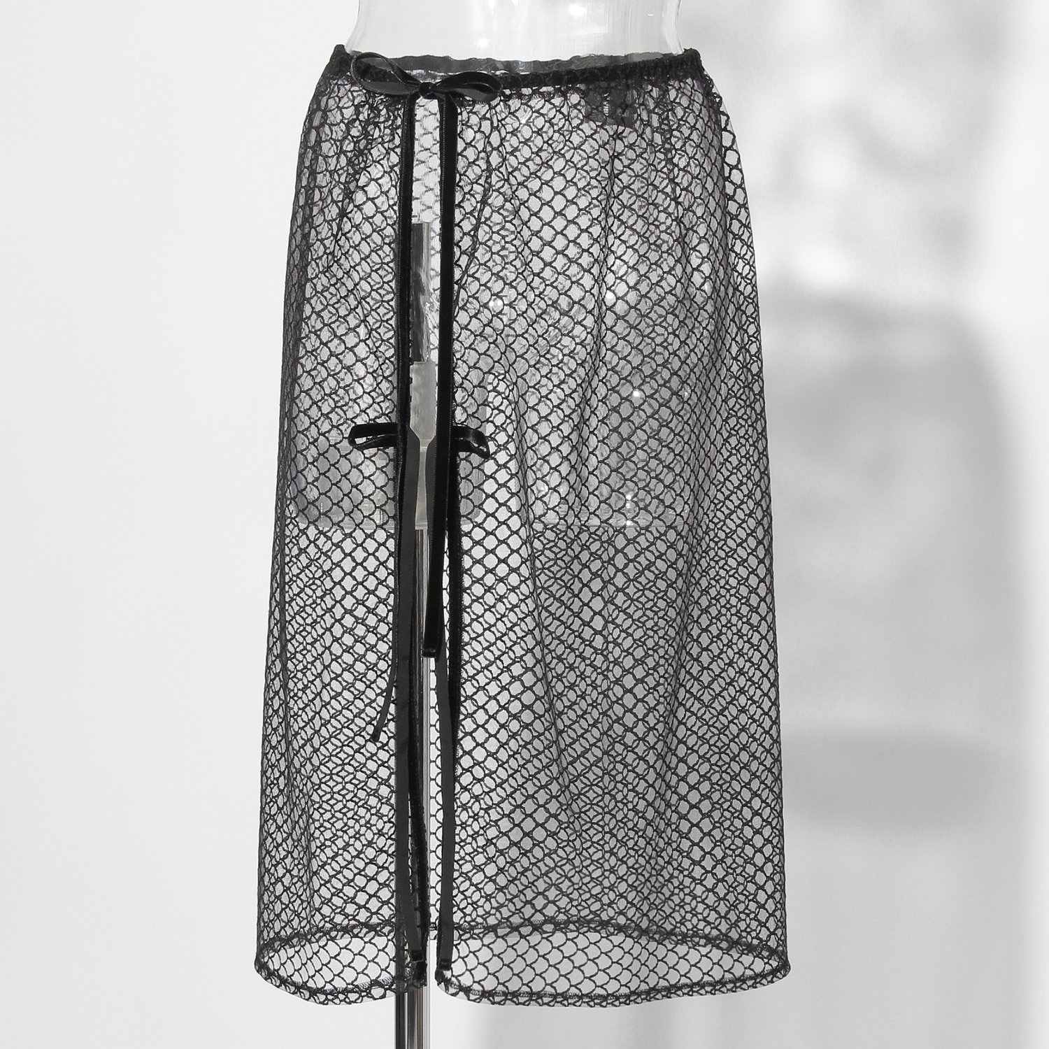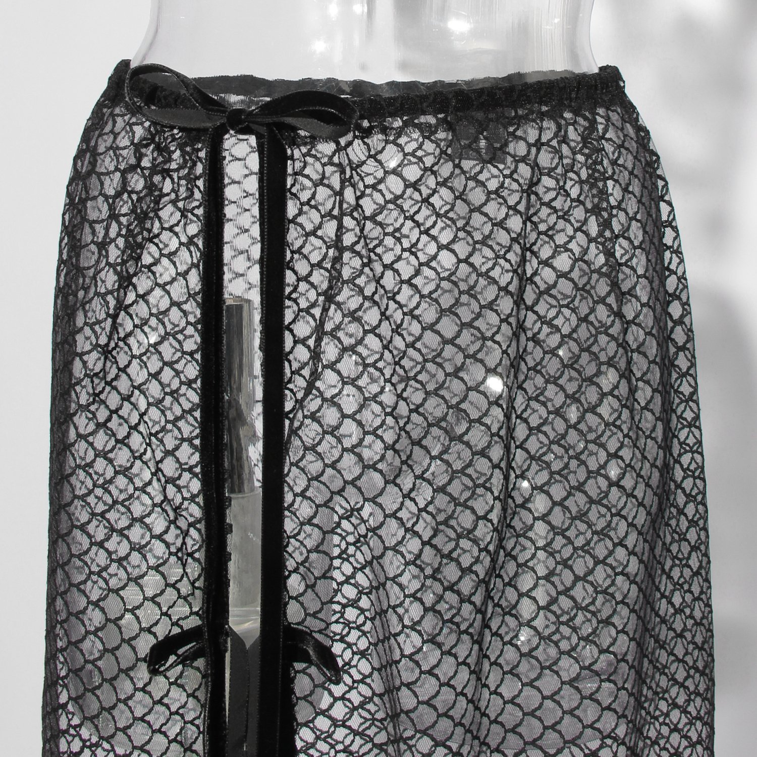 うろこ柄のチュール素材にベロアリボンを掛け合わせたレイヤードスカート。プリントスカートやパンツ、デニムなどに重ねて、遊びのあるコーディネートを楽しむことができます。ほんのりチャイナ風のディテールでブランドらしさも忘れず、デイリーから少し特別な日まで幅広く活躍してくれます。