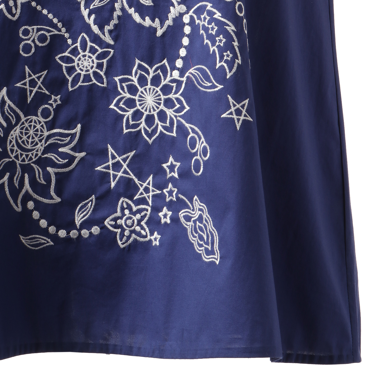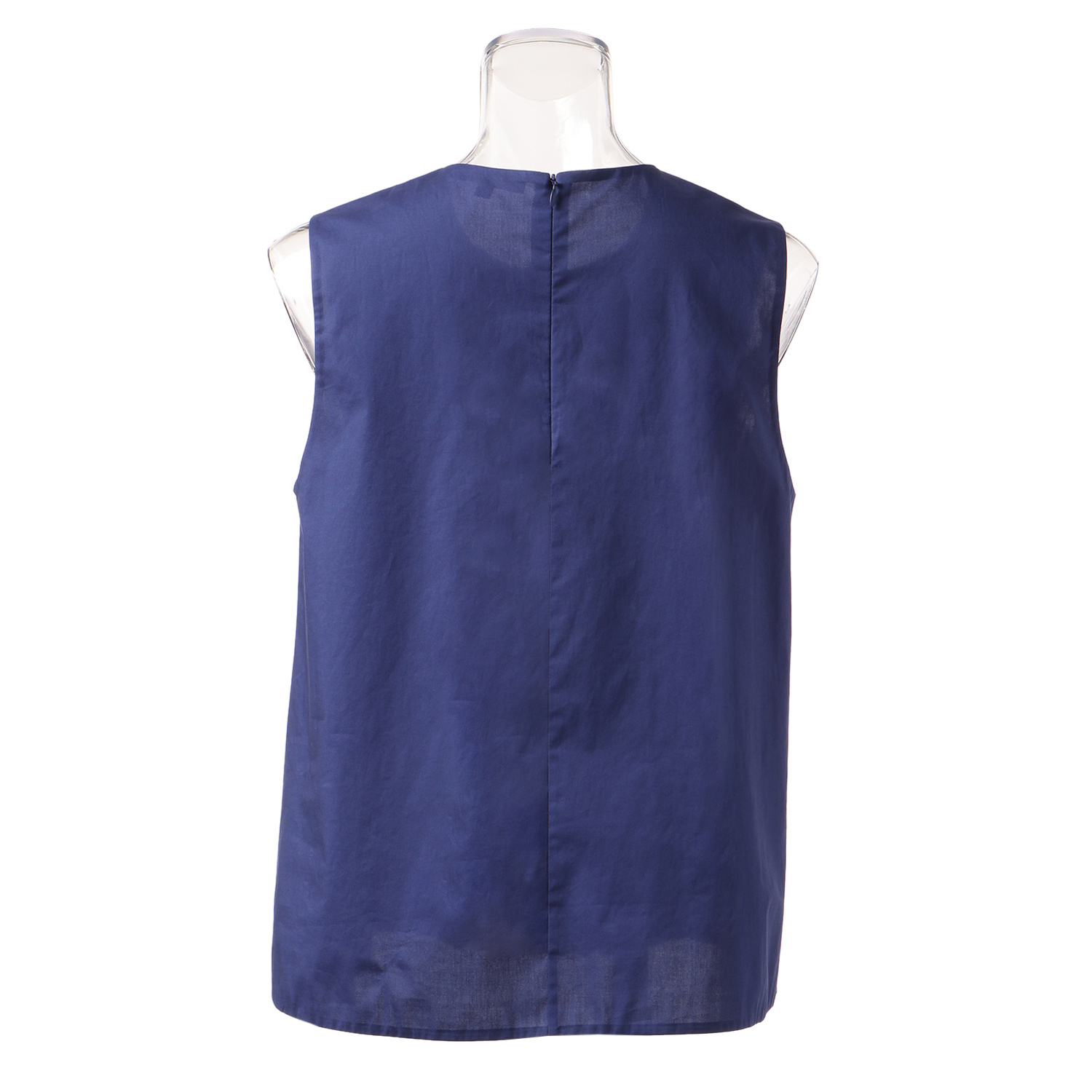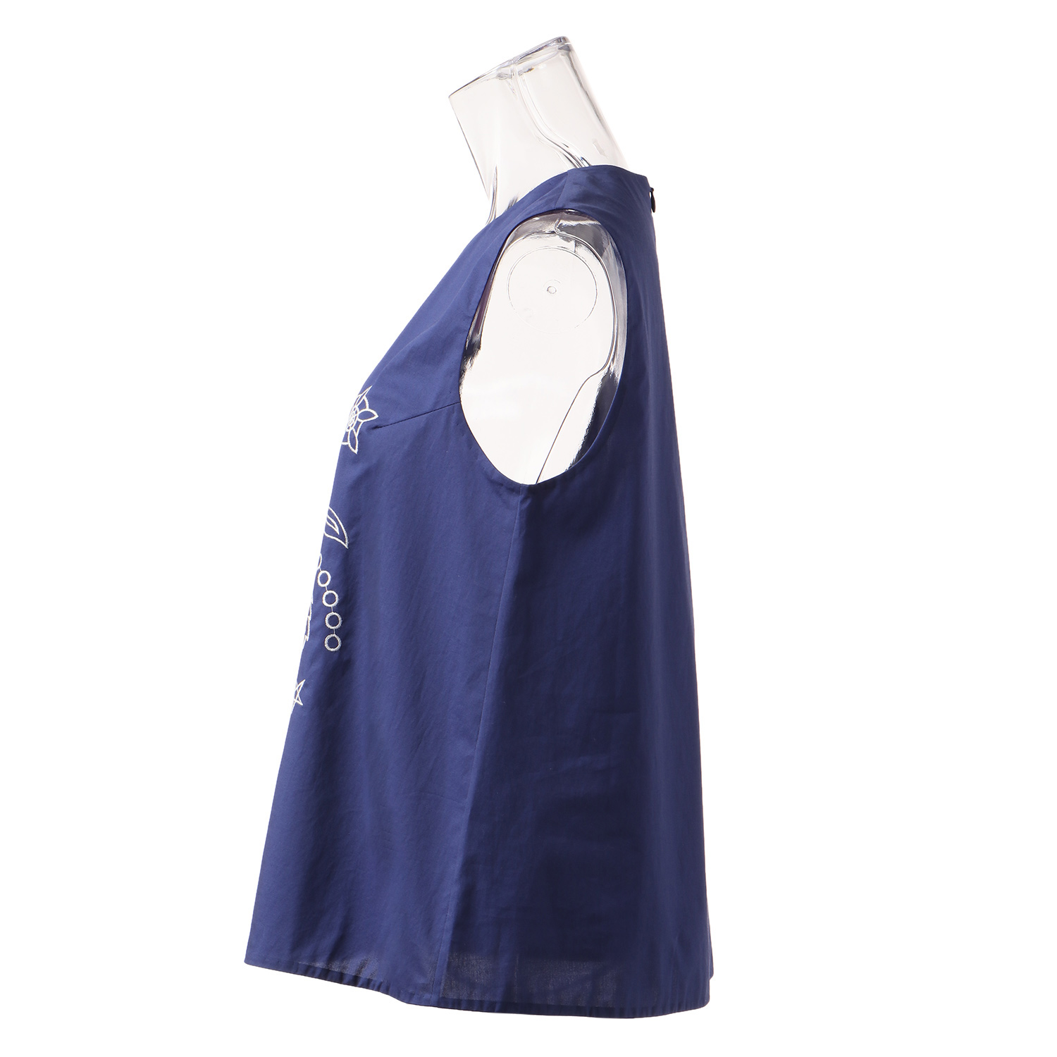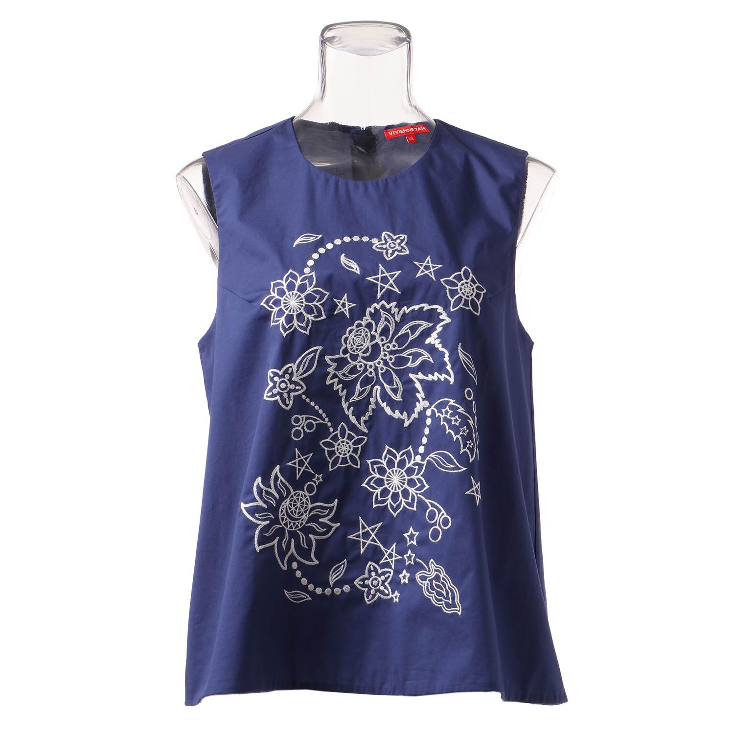 オリエンタルな花柄の刺繍がアクセントを添えるノースリーブブラウス。裾に向かって広がる直線的なシルエットで、すっきりとした印象をプラス。ワイドパンツやロングスカートを合わせれば、旬のスタイリングが完成します。
