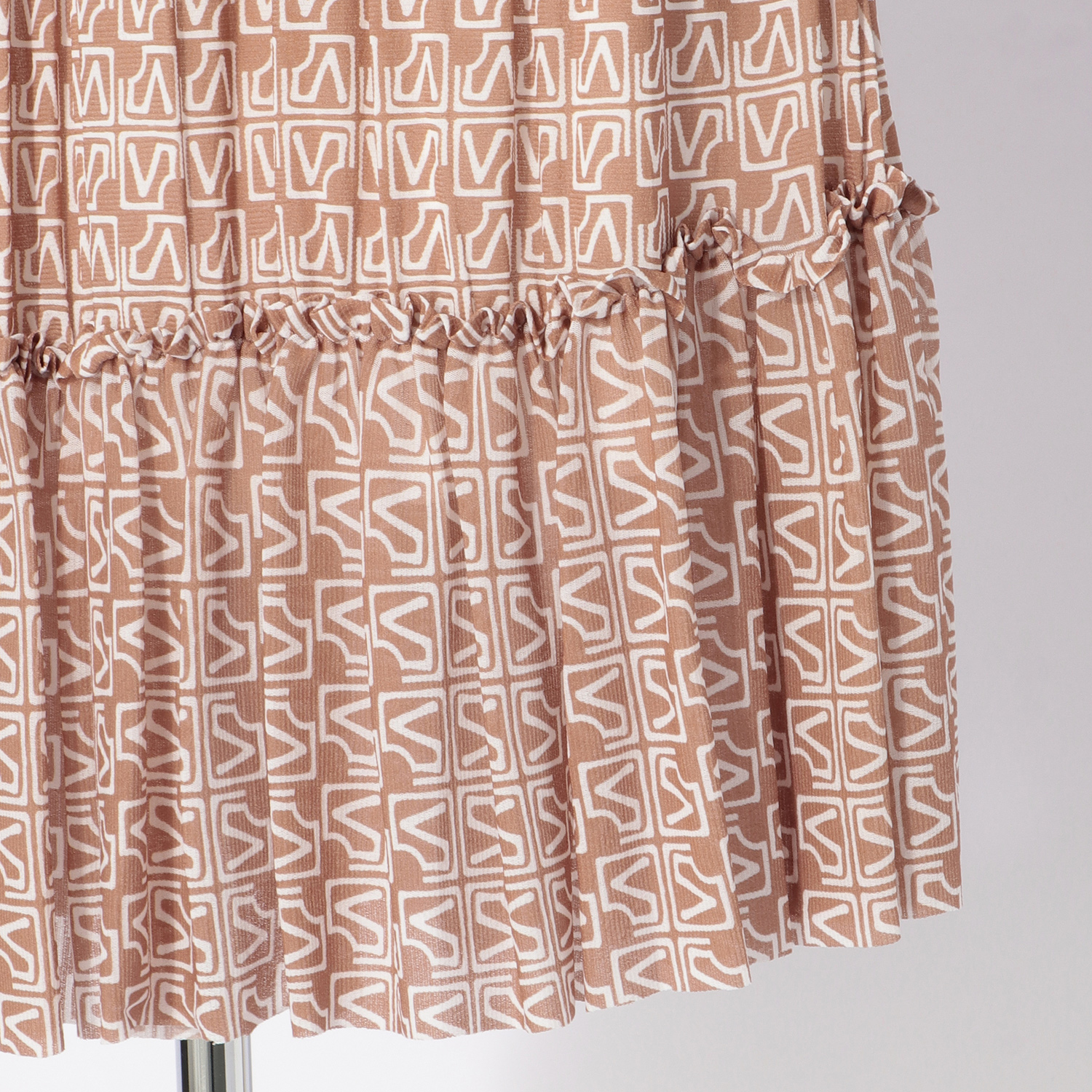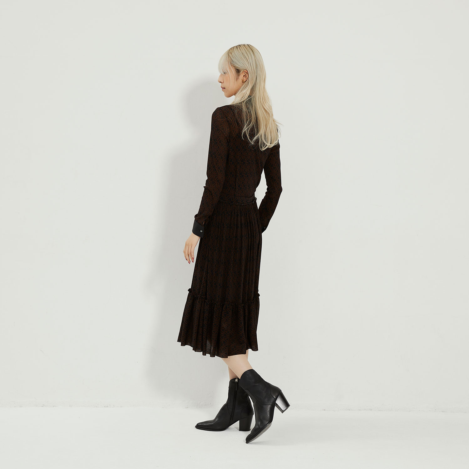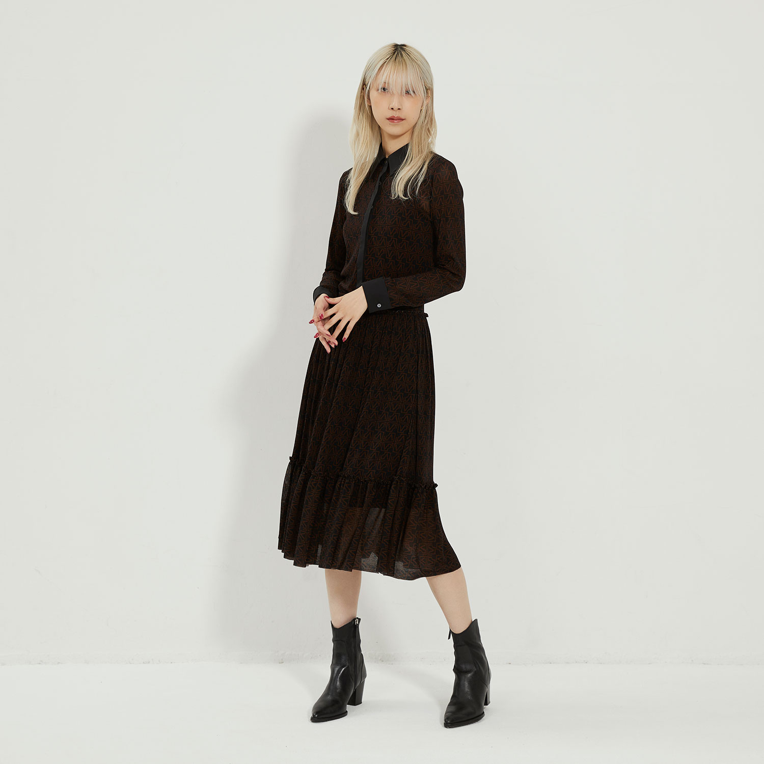 スタイリッシュな柄でモダンに仕上げたAラインスカート。動くたびフリンジのように揺れるヘムがおしゃれな雰囲気を高めます。ネット素材の特性により、ウエストからヒップは美しくフィットするアイテム。シャツ合わせのきれいめな装いにも、ニットとのカジュアルコーディネートにも馴染む汎用性の高いアイテムです。