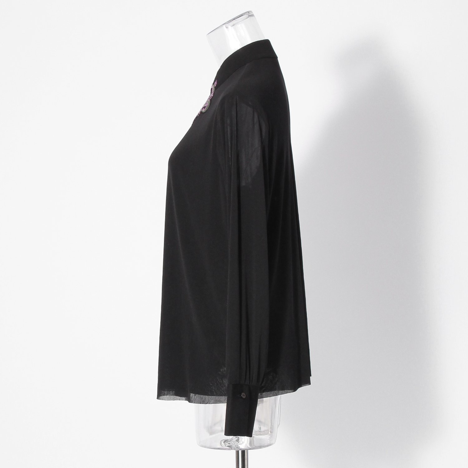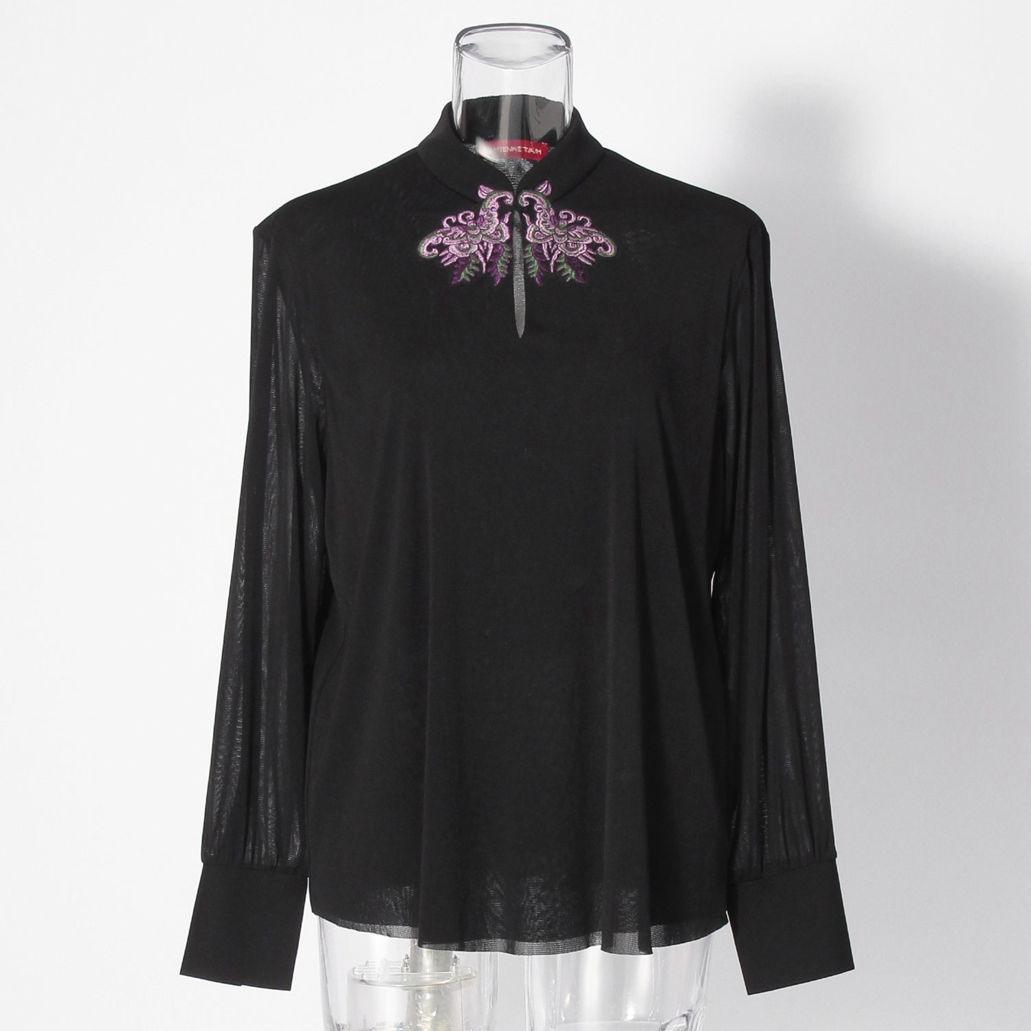 華やかなバタフライ刺繍のディテールが視線を集めるブラウス。ブランドらしいチャイナカラーを採用し、モダンな雰囲気を醸し出す1着です。ふんわりと空気を含んだようなパフスリーブがエレガントなエッセンスをプラスします。
