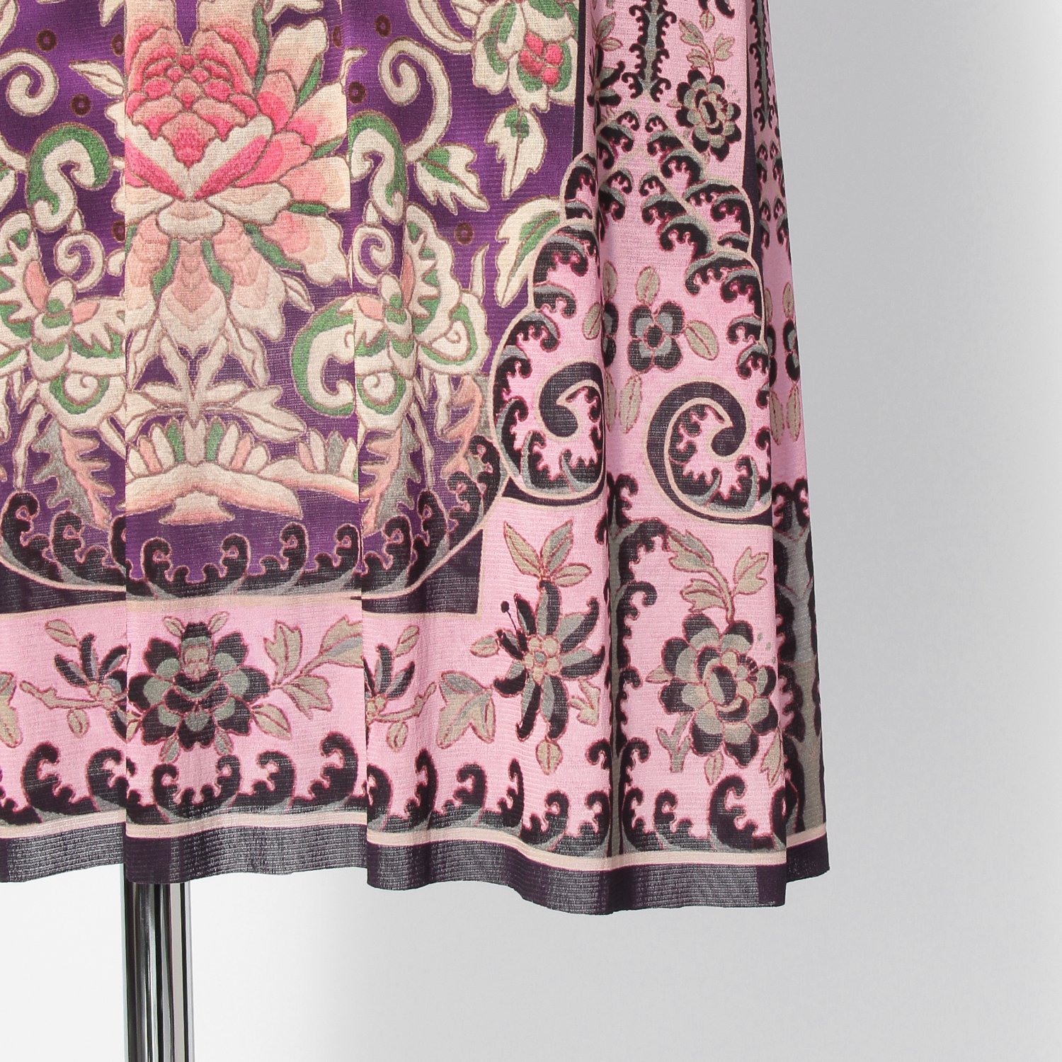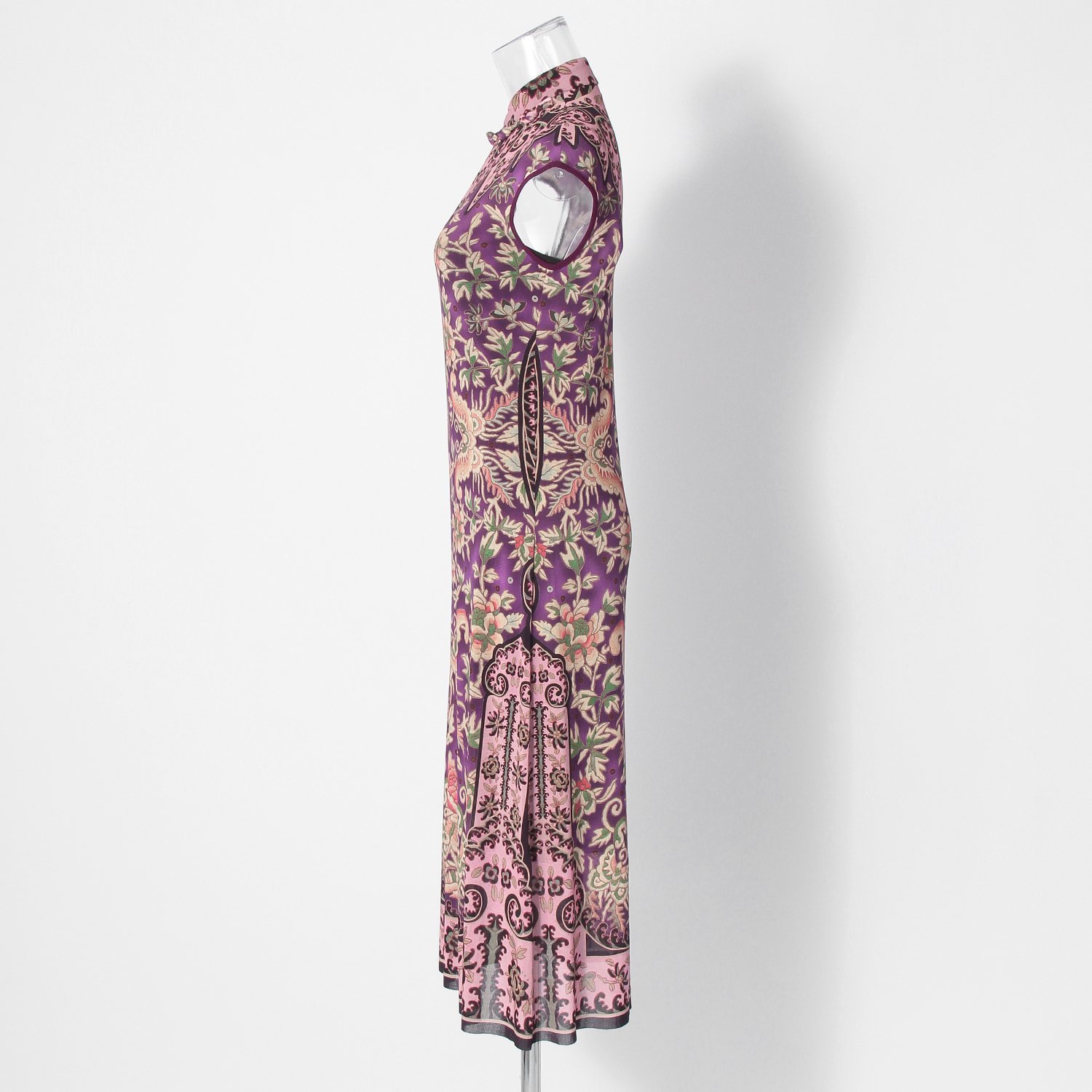 ピオニーバタフライのプリントを全体にあしらったチャイナドレス。華やかな色彩が品よく映え、洗練されたスタイリングに仕上げます。すっきりと身体に添うシルエットが、美しいボディラインを際立たせます。
